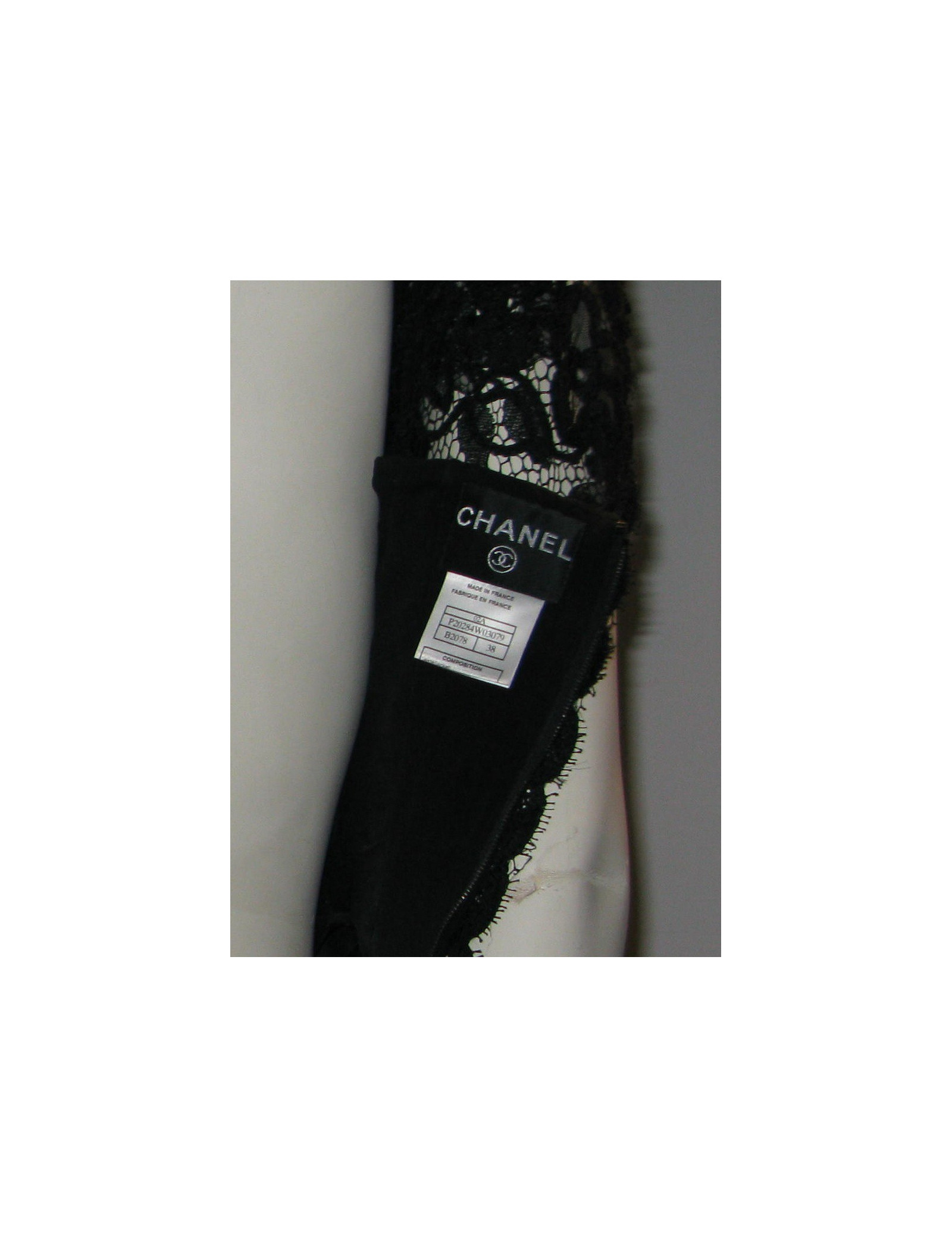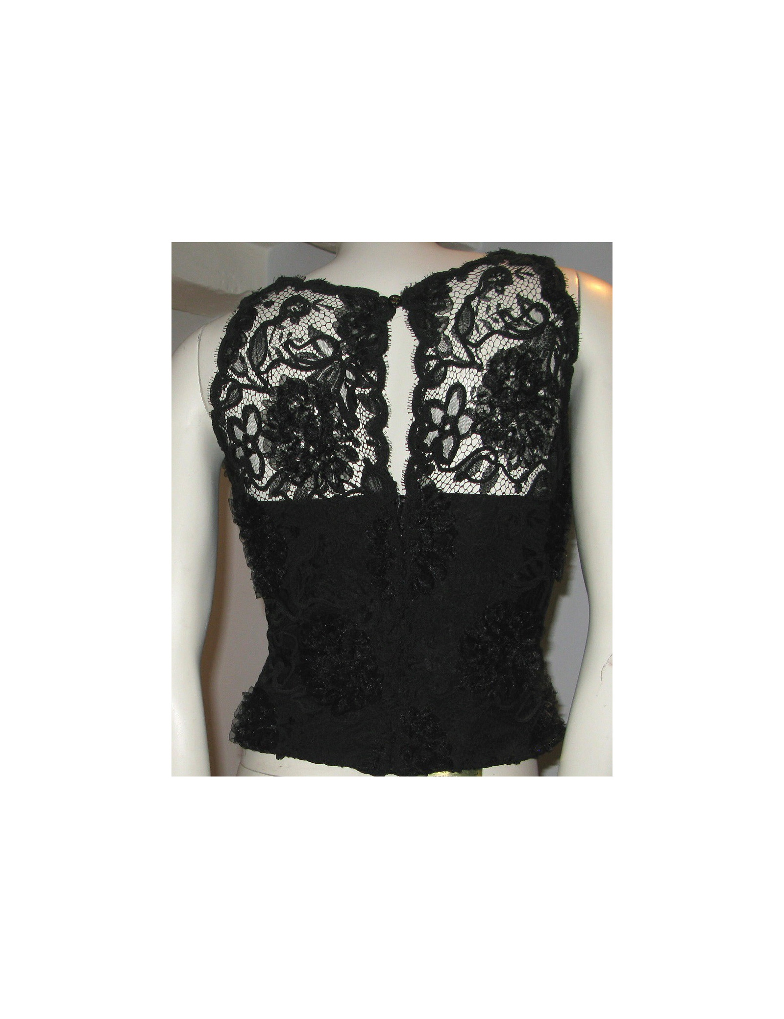 Chemisier CHANEL T 38 sans manches en broderie de dentelle noire Lesage