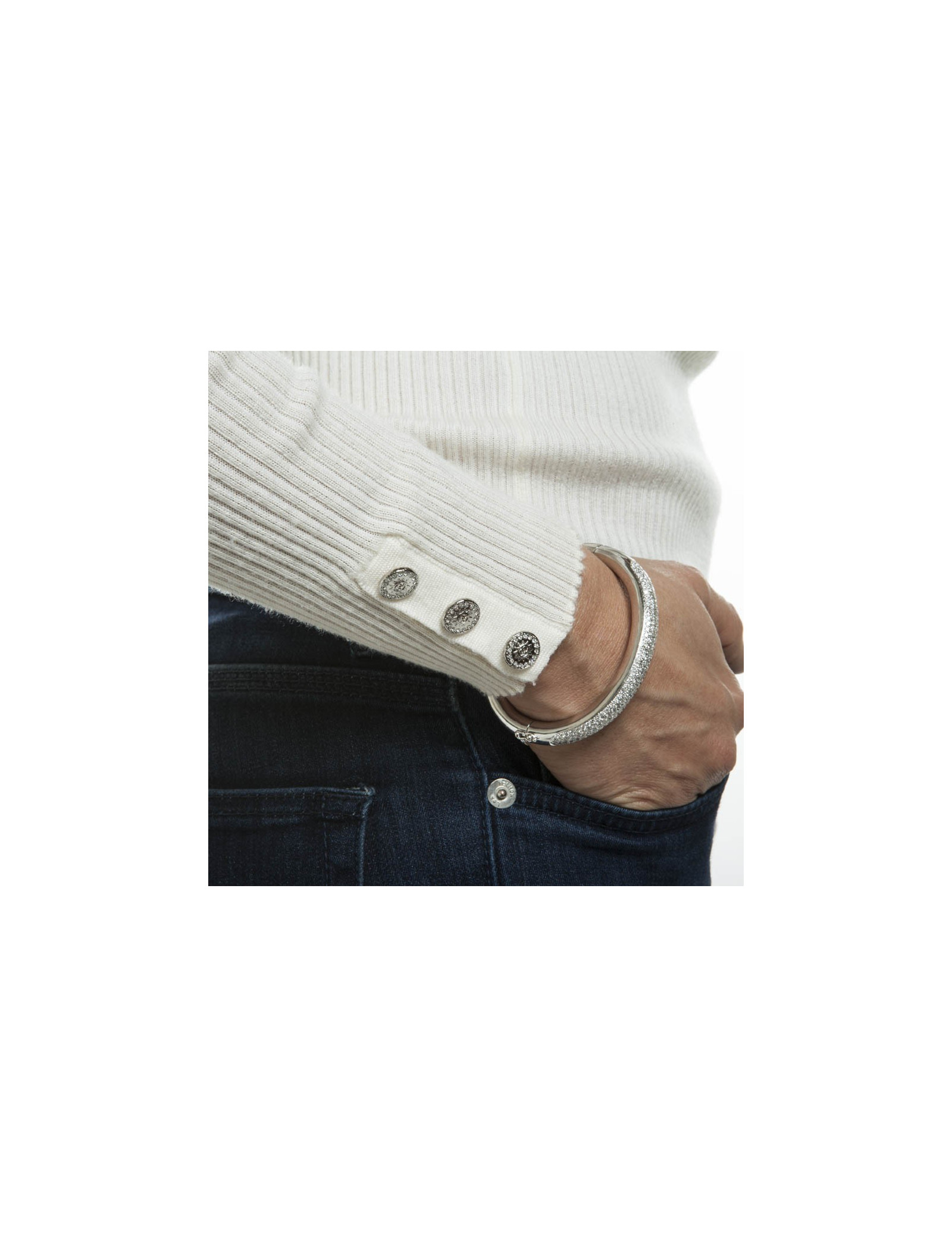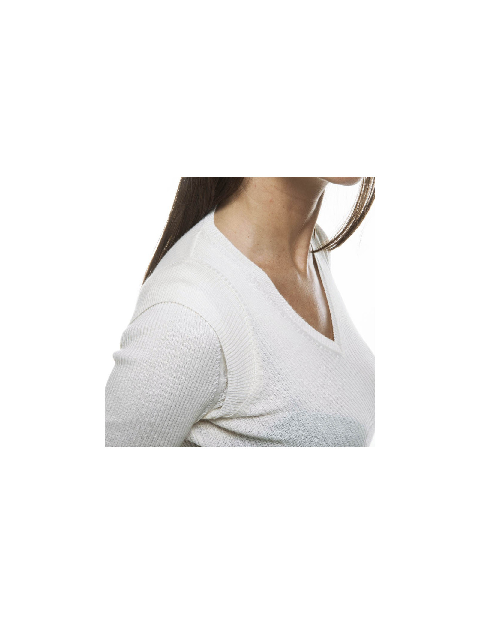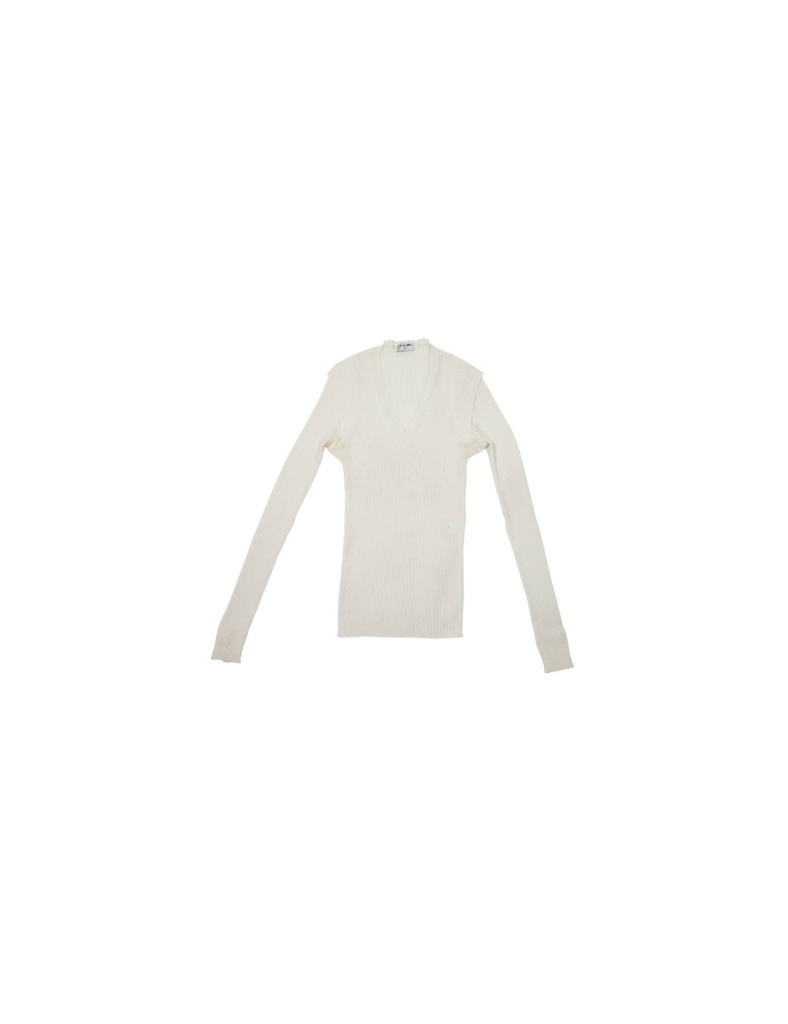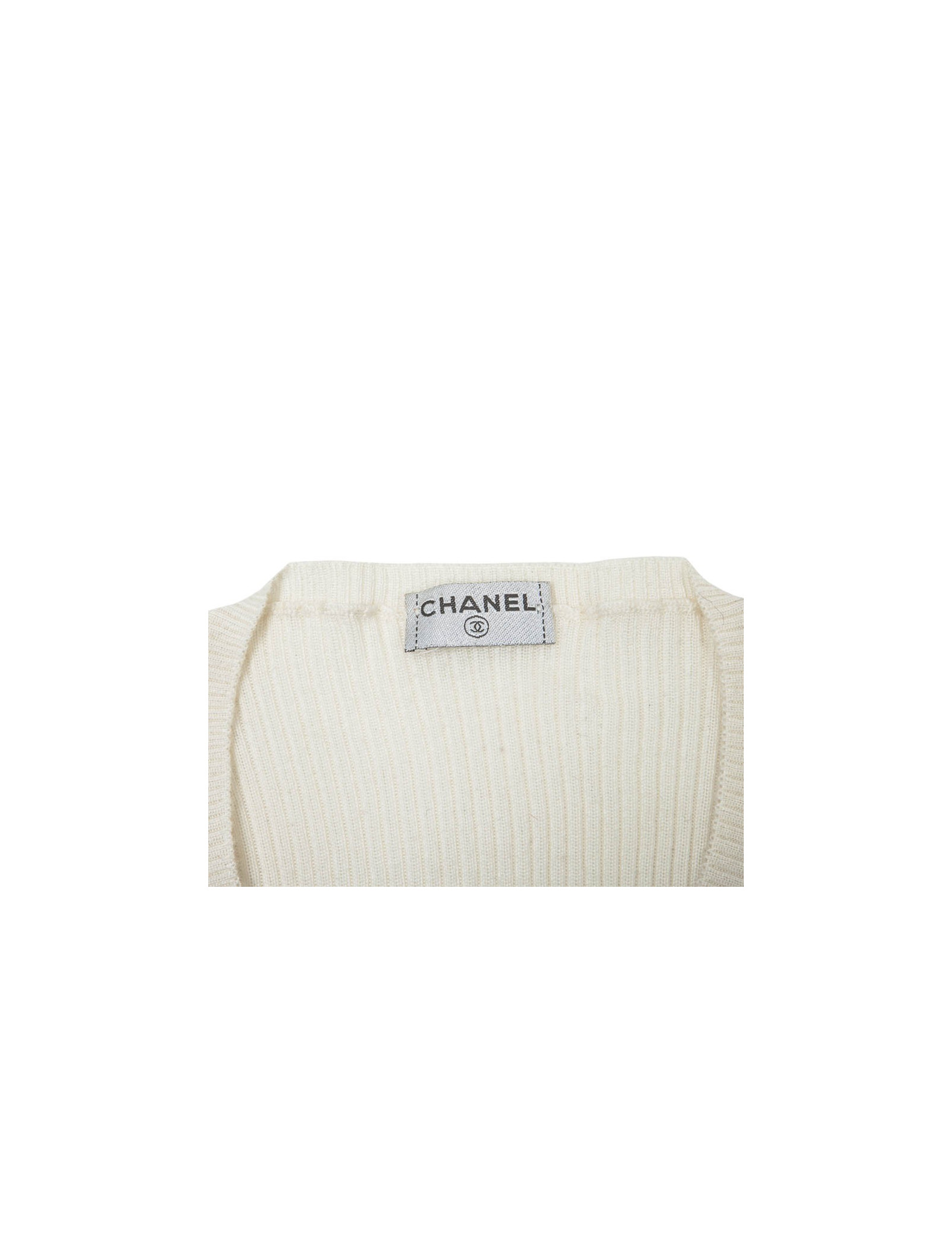 Pull en cachemire et soie écrue de la Maison Chanel. Pas d'étiquette de taille, équivaut à un 36/38. Col V.