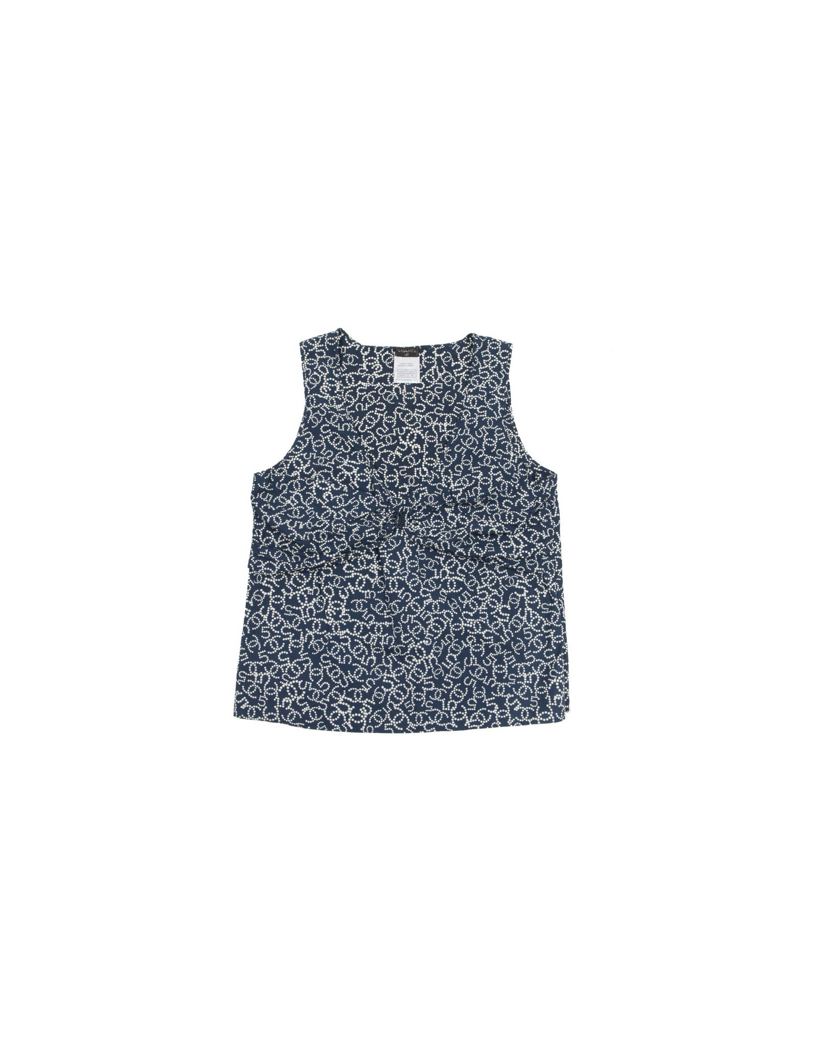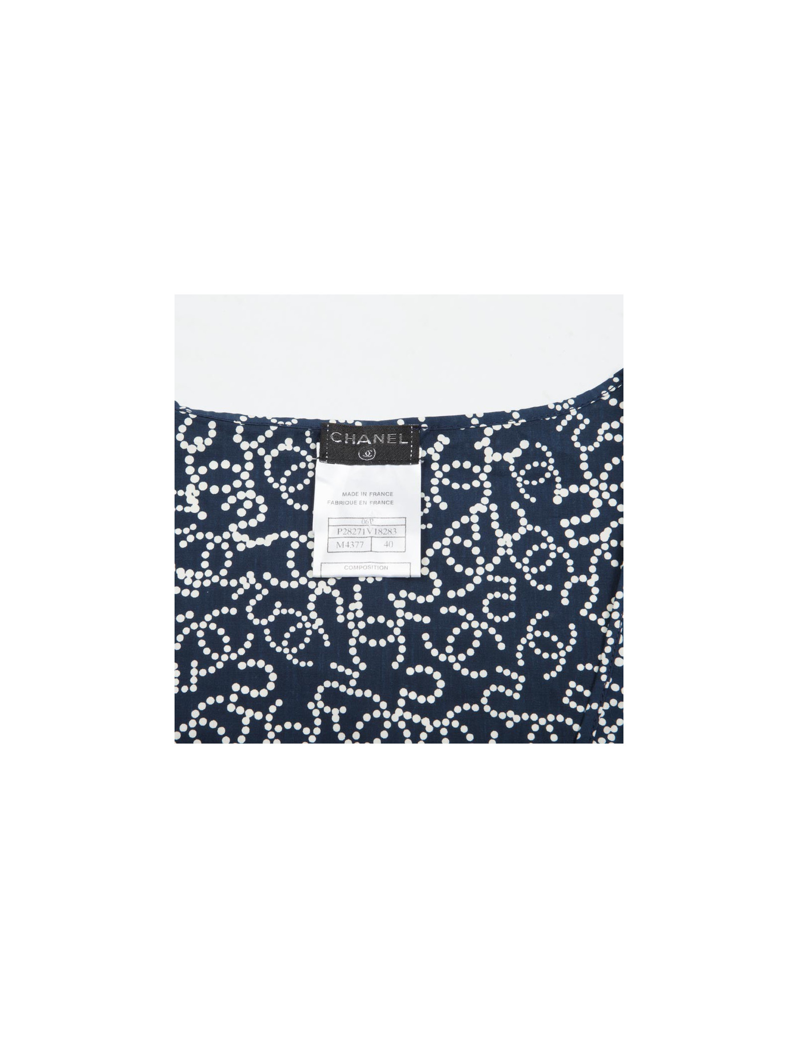 Blouse sans manches Chanel bleu marine et blanc T 40 en coton monogram. Collection Printemps 2006.