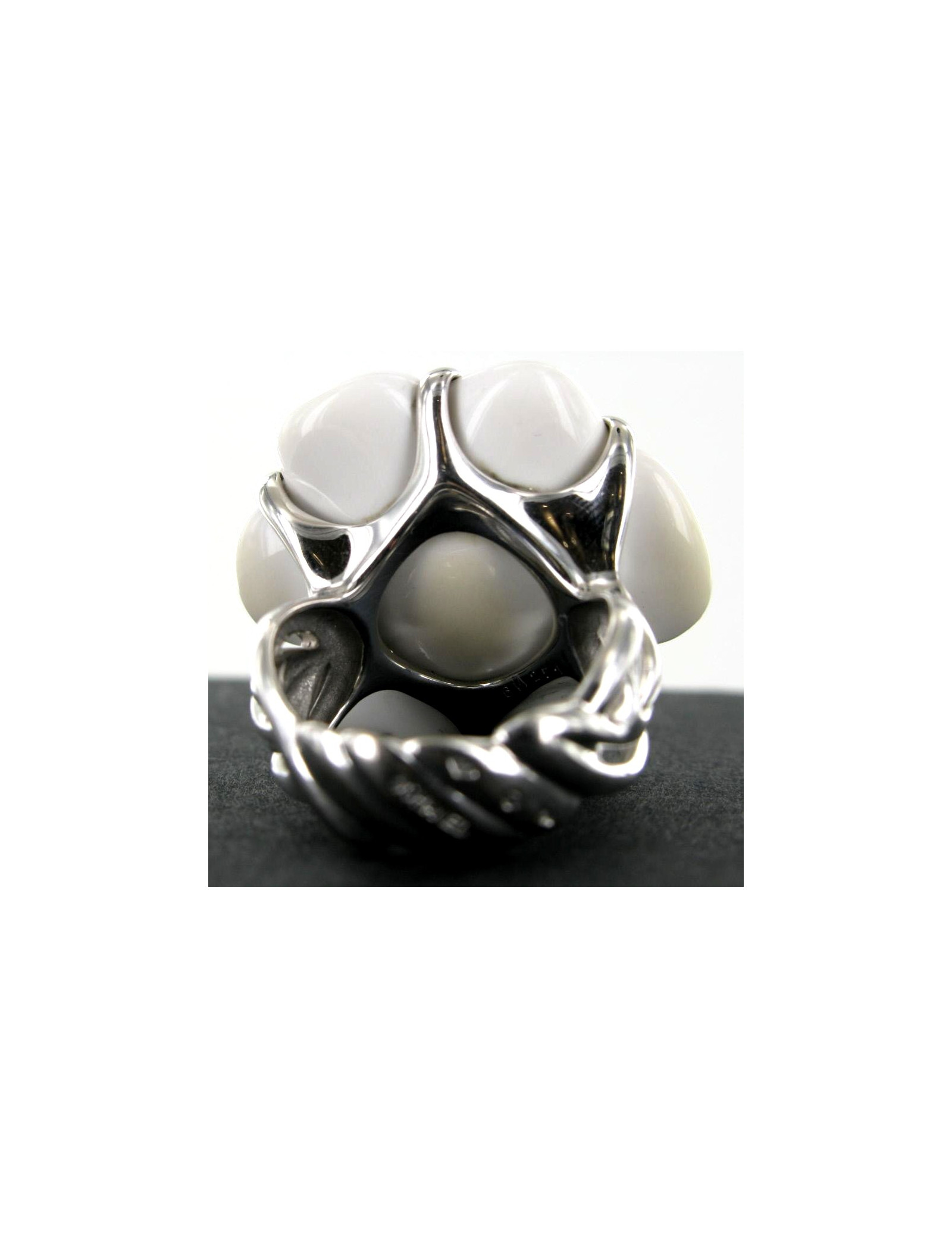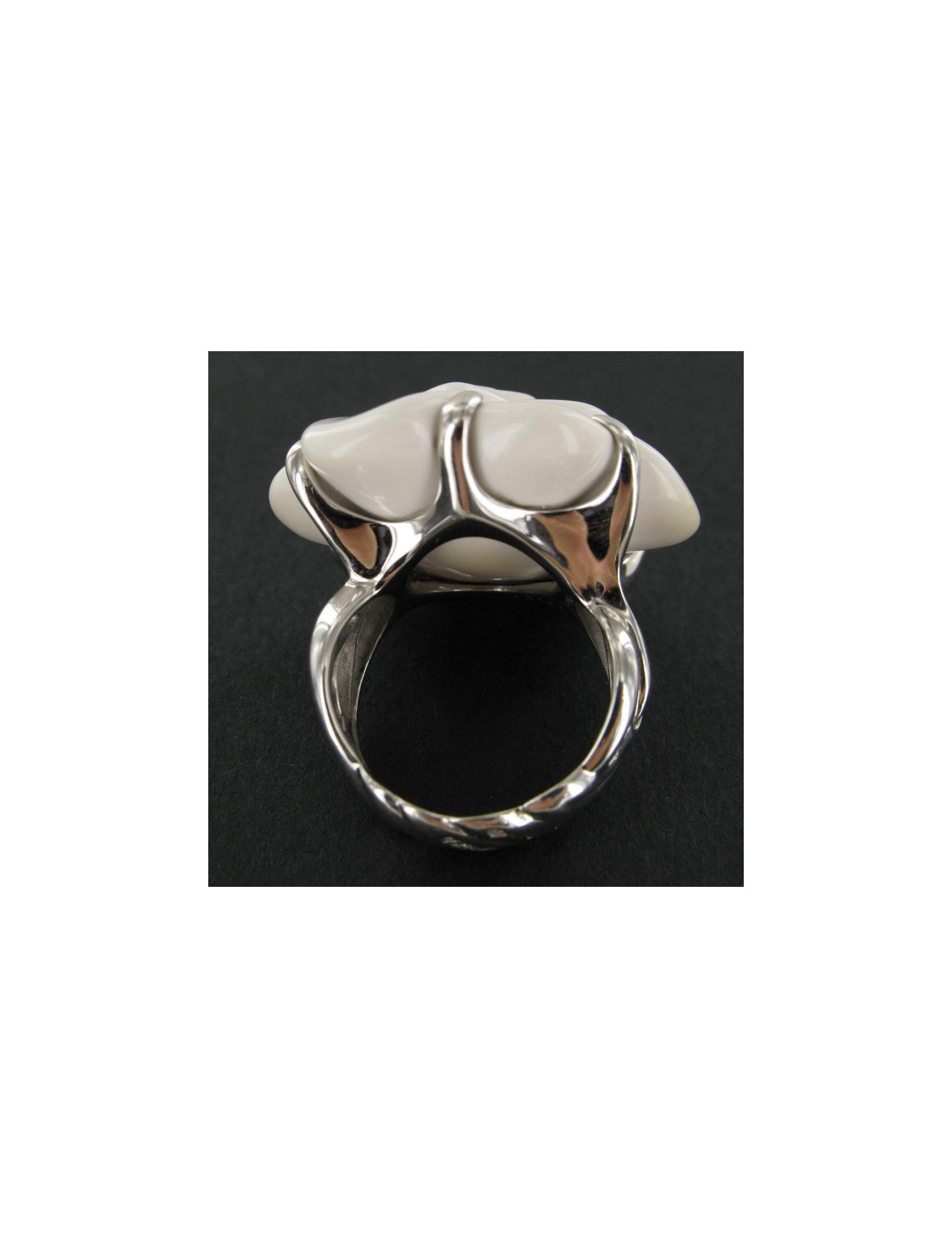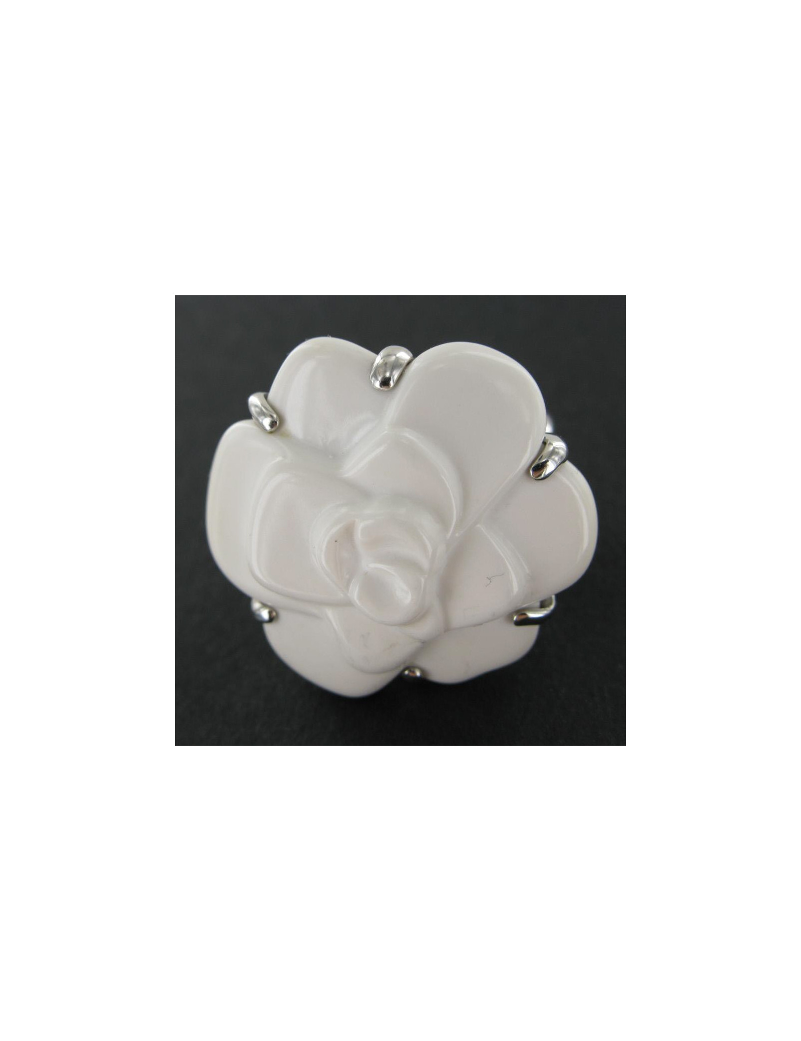 Bague CHANEL Camélia en agate blanche et or blanc