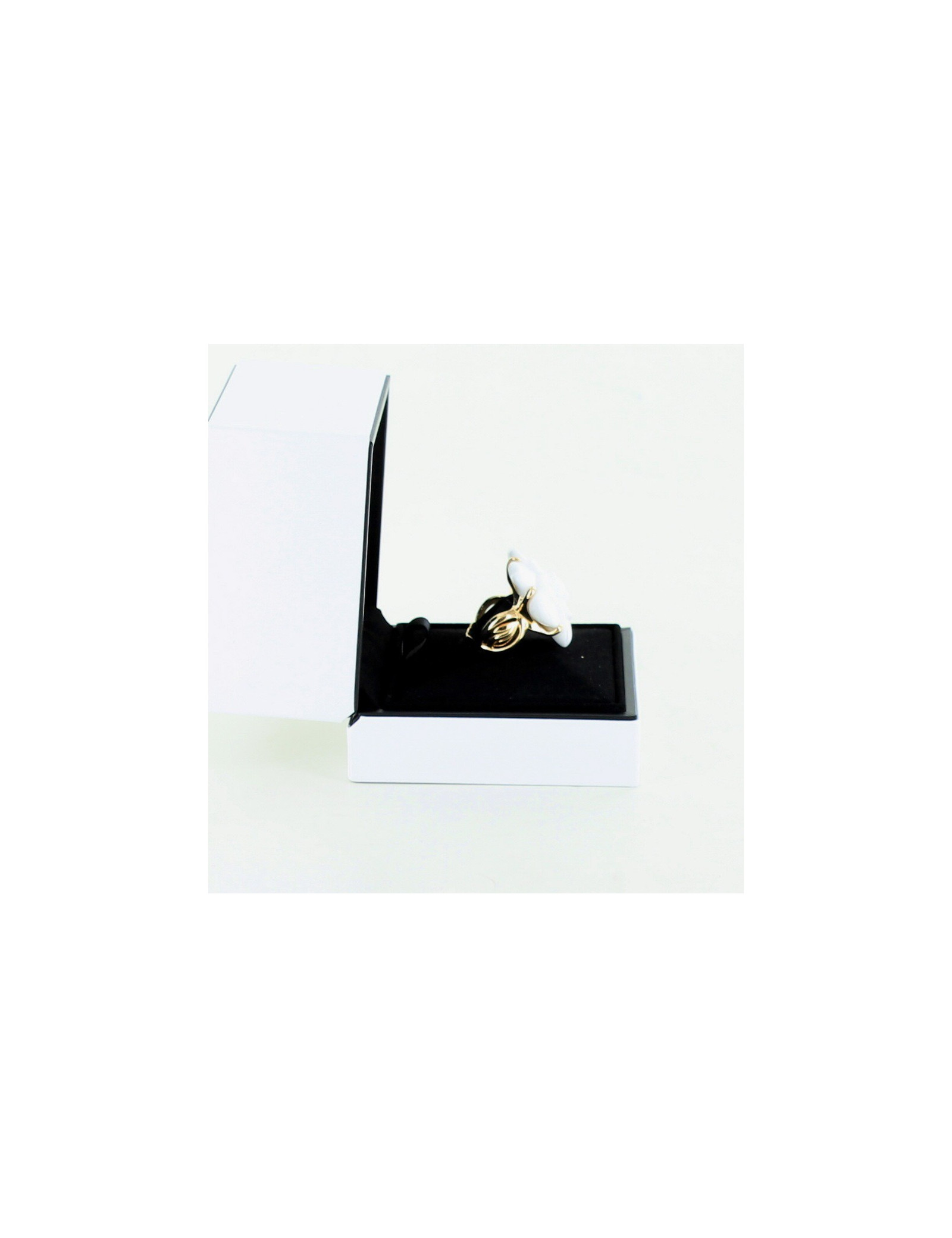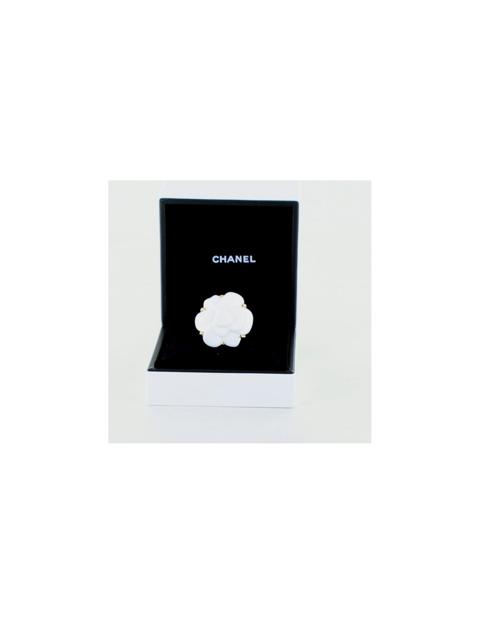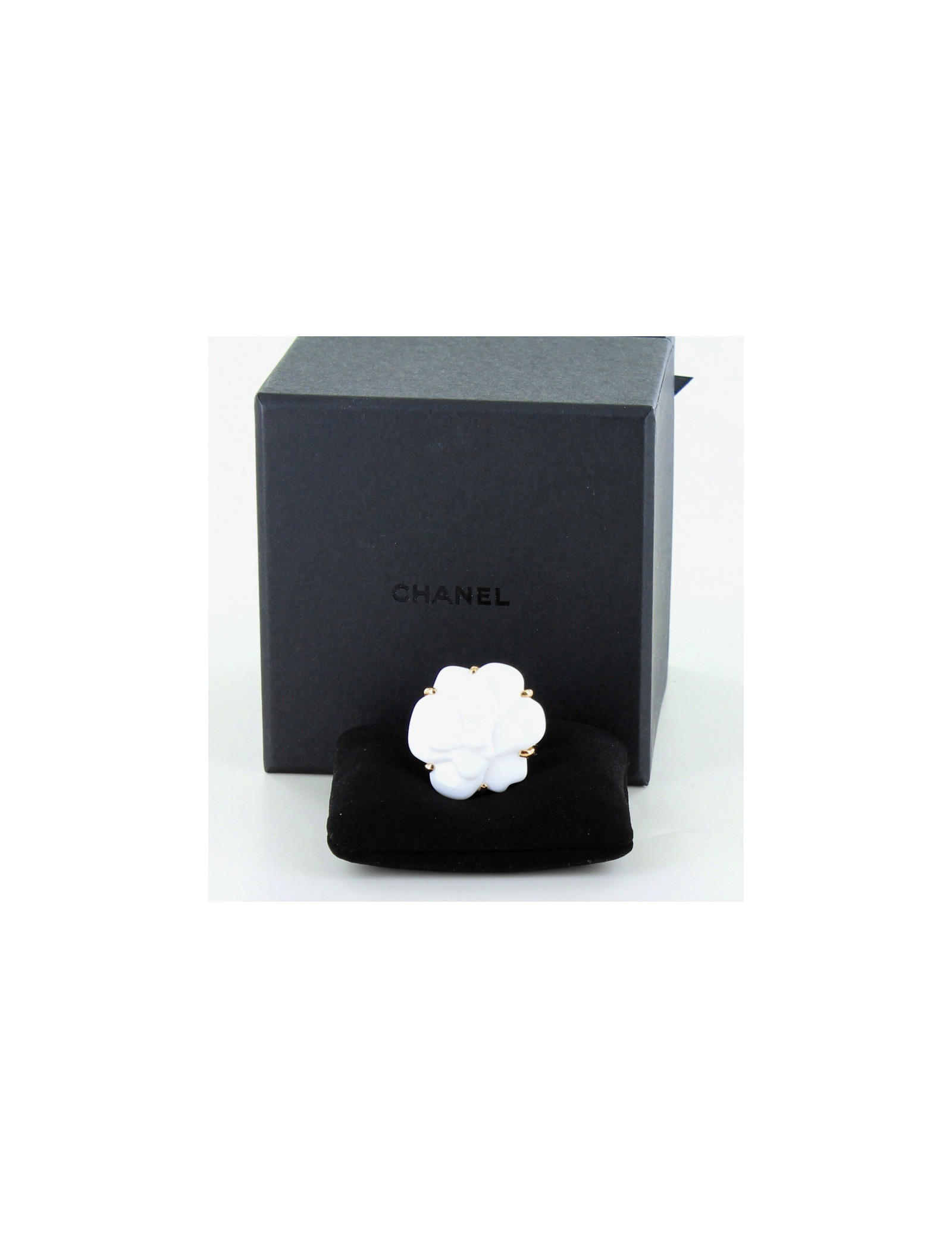 Bague camélia , iconique de la Maison Chanel, taille 55 , camélia en agate blanche, montée sur or jaune 18 carats 750/1000. Le camélia symbole de la Maison Chanel et cher à Mademoiselle Coco