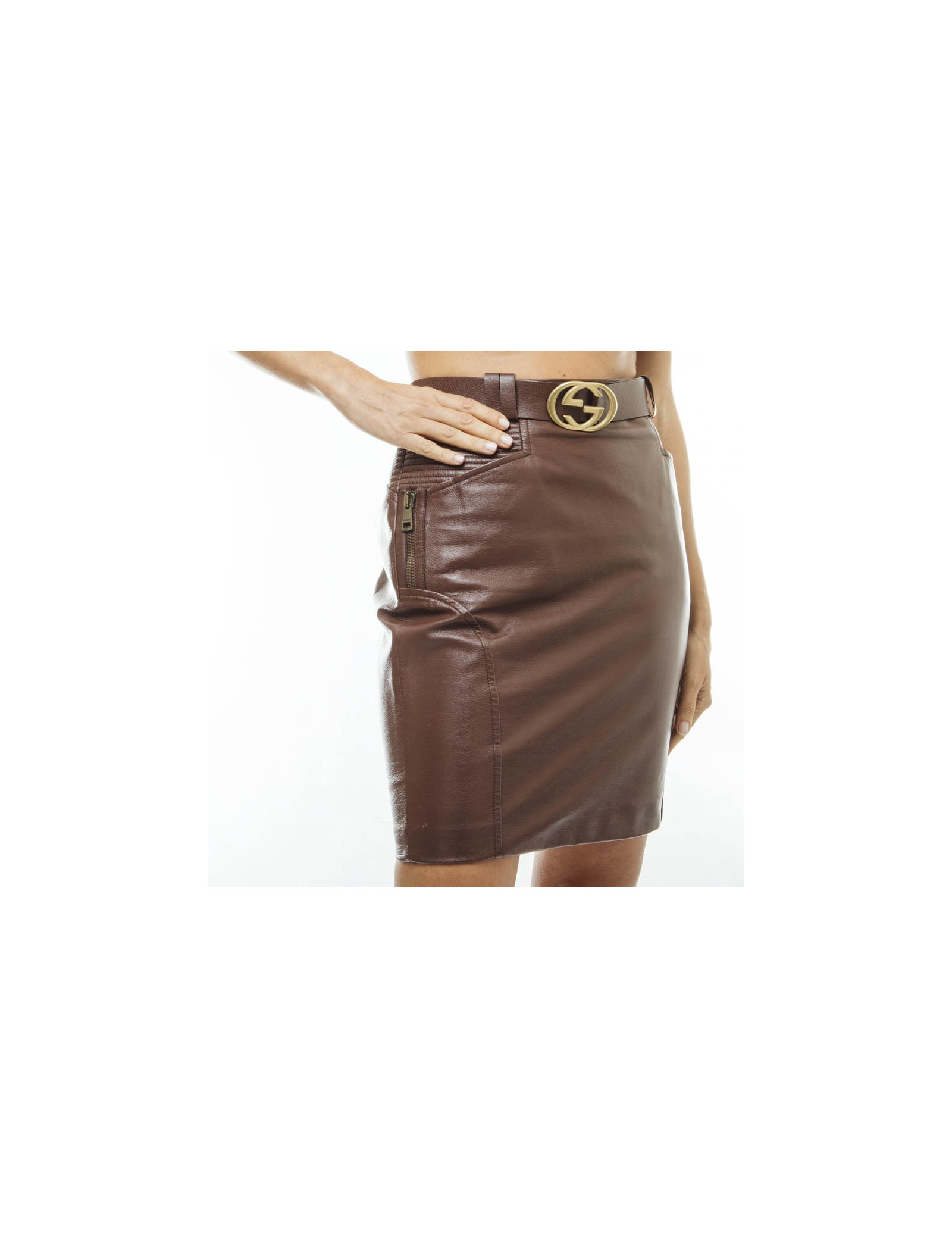 Jupe GUCCI t 42 IT/ 38 FR en cuir marron