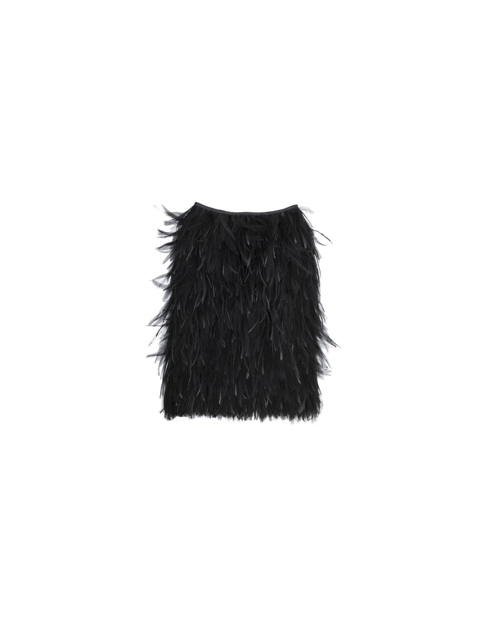 Jupe Yves Saint Laurent en plumes de cygne noires, taille 36, en bon état.