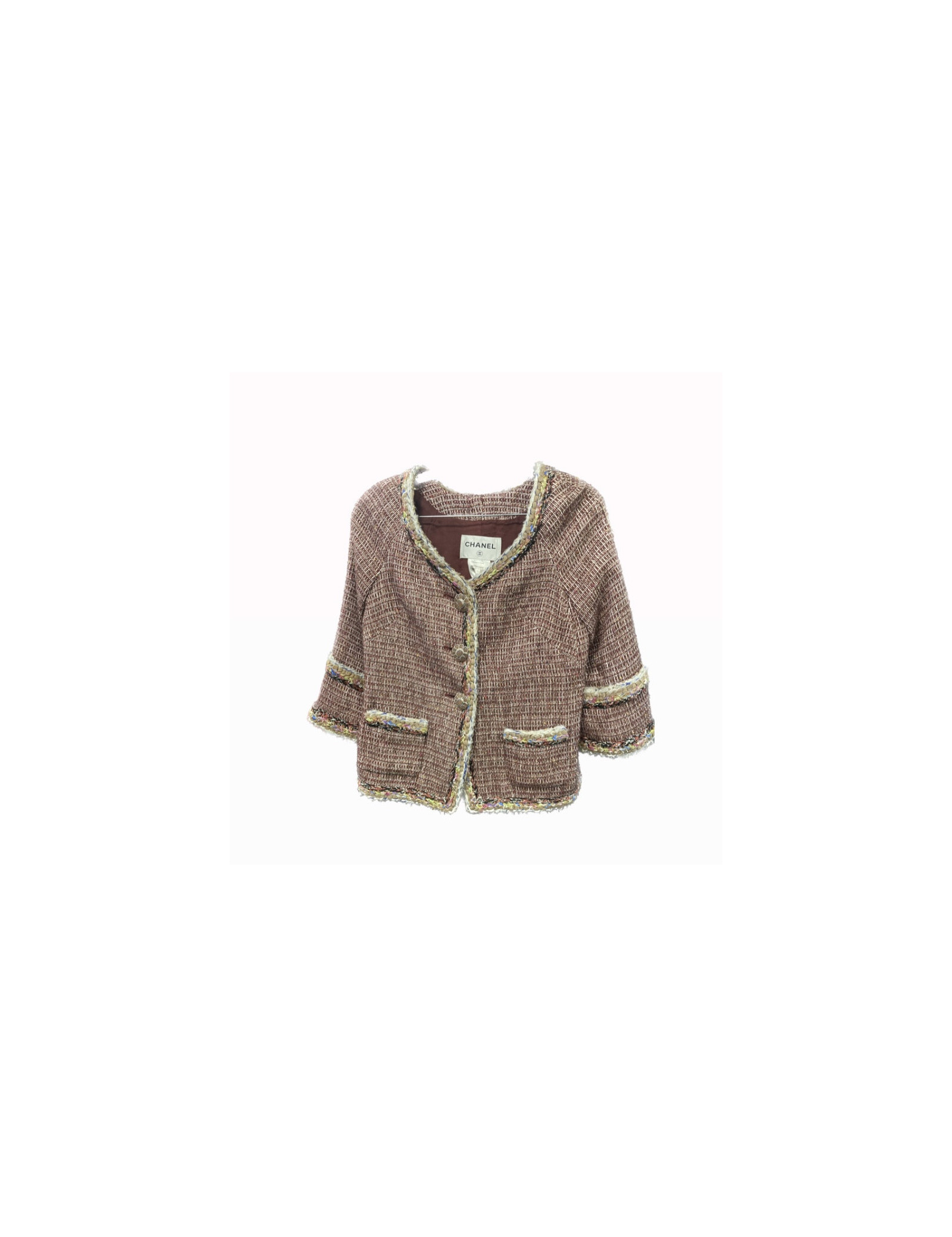 Derniers articles en stock ENSEMBLE Tailleur CHANEL noir chiné T40 CHANEL 32484 3 100,00 € Tailleur CHANEL noir jupe et veste Condition : très bon étatPays de fabrication : FranceTaille : 40FRMatière : laine, soie sauvageDoublure : soieCouleur - veste : noir chiné, jupe : noireDimensions à plat Veste : épaules 40 cm, sous la poitrine 45 cm, hauteur 65 cm, longueur des manches 60 cm, tour de poignet 25 cmJupe : longueur totale 55 cmDétails :... Ajouter au panier