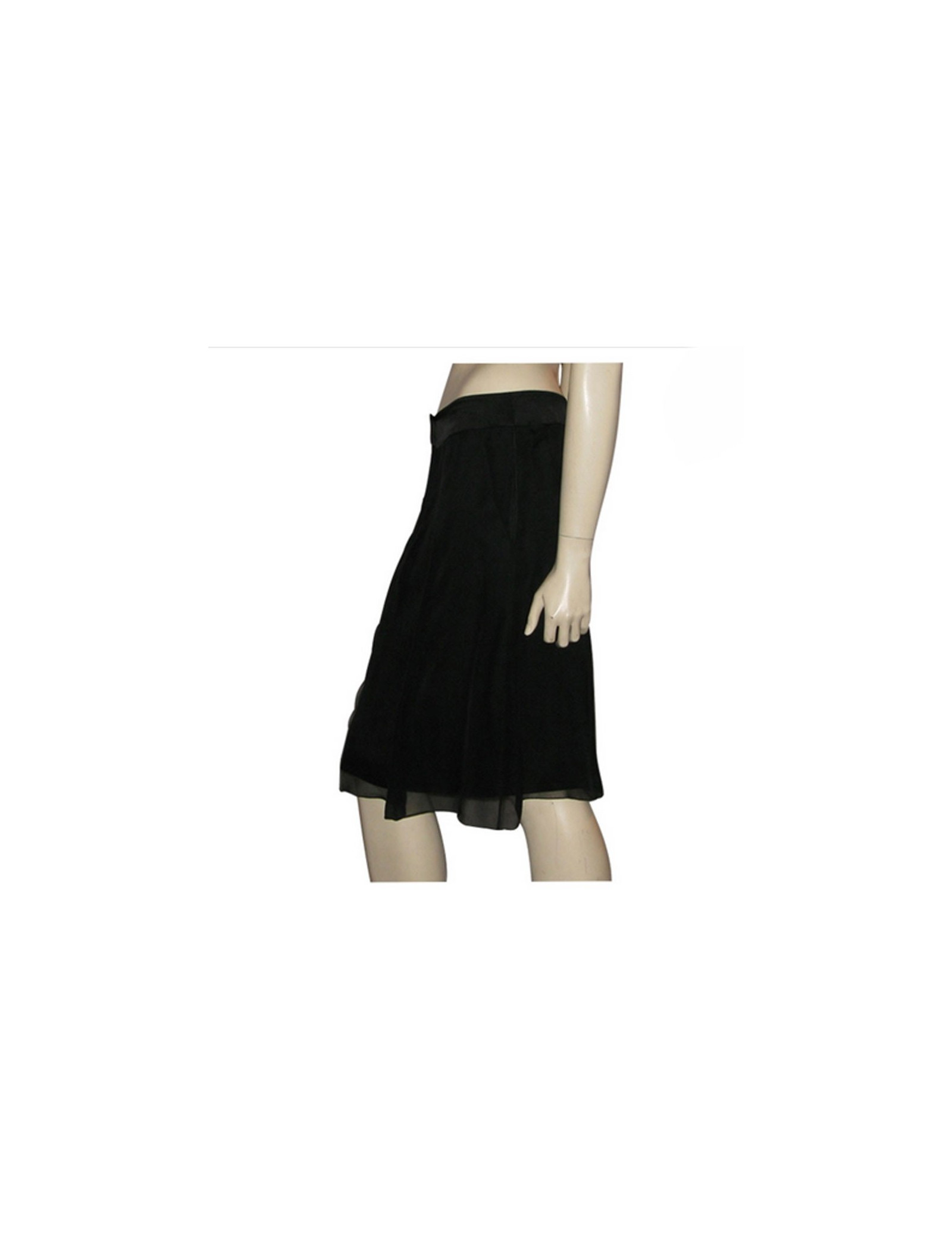 Superbe jupe en mousseline de soie noire avec fond en soie duchesse noire T38 CHANEL