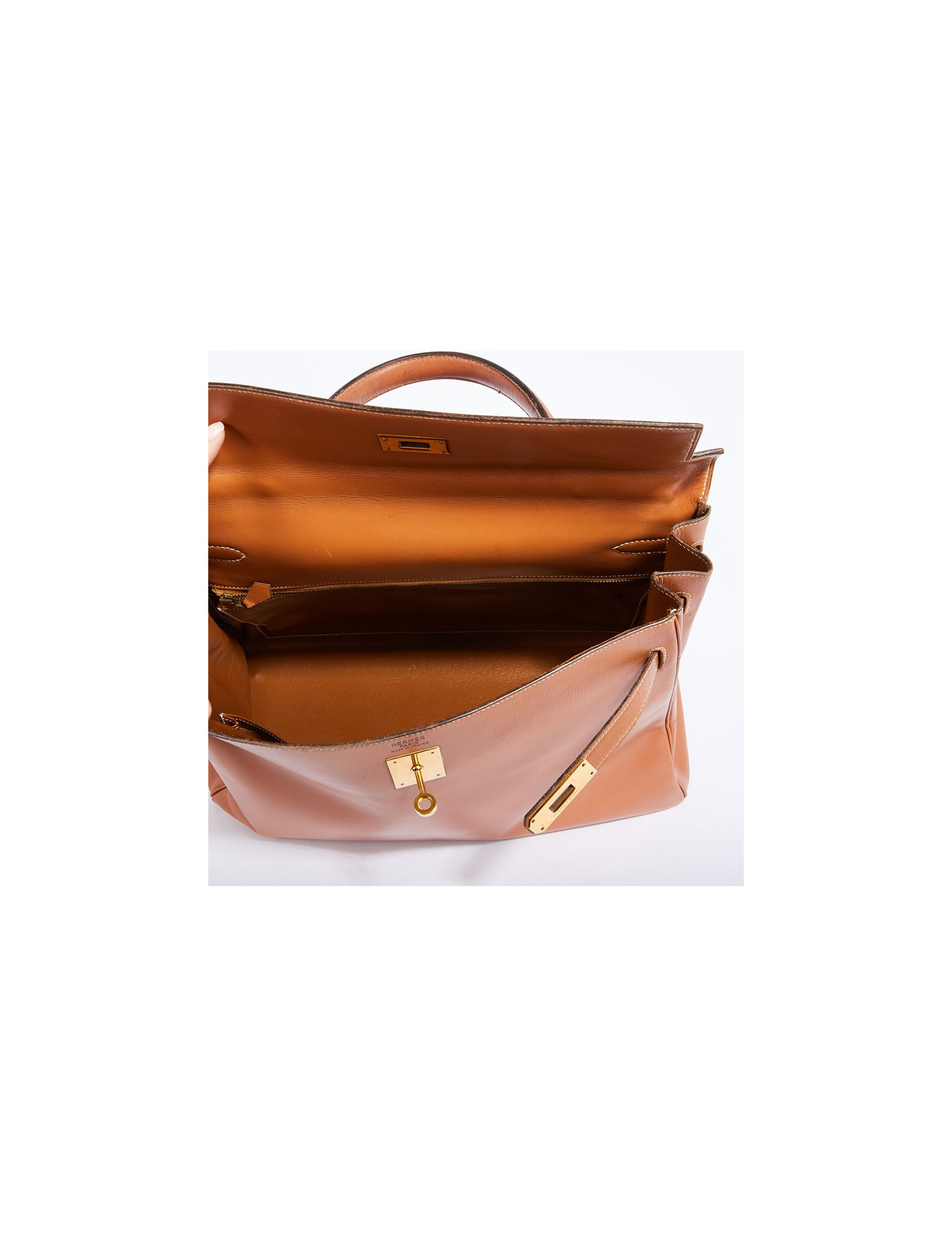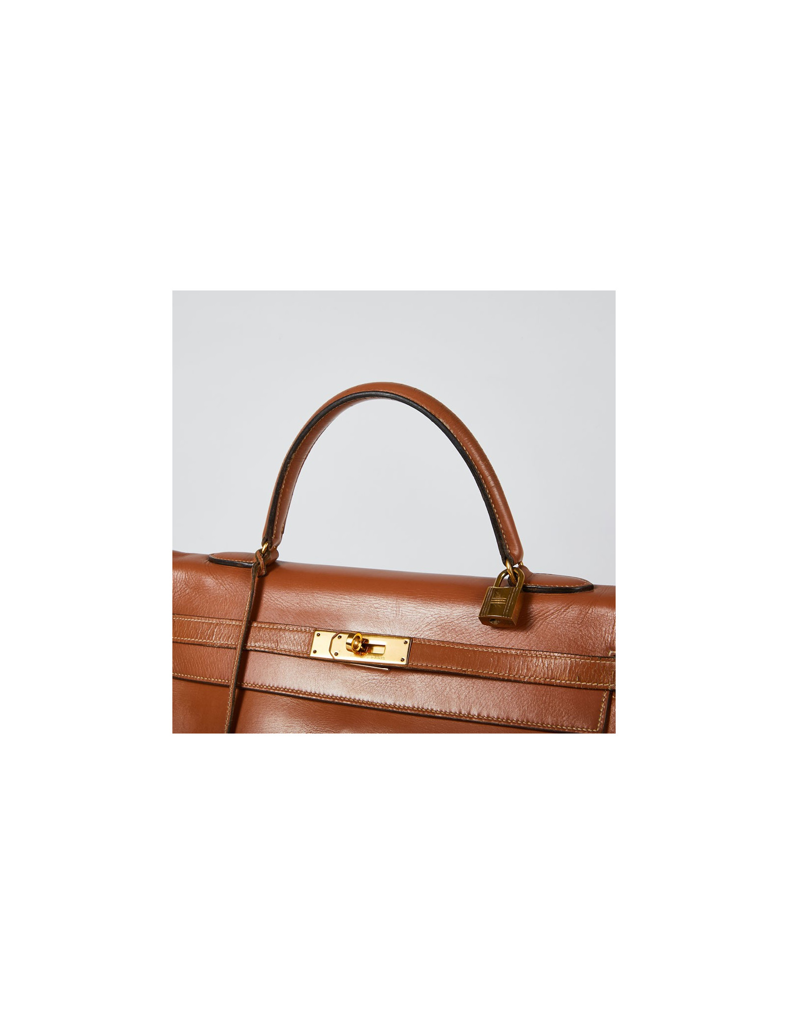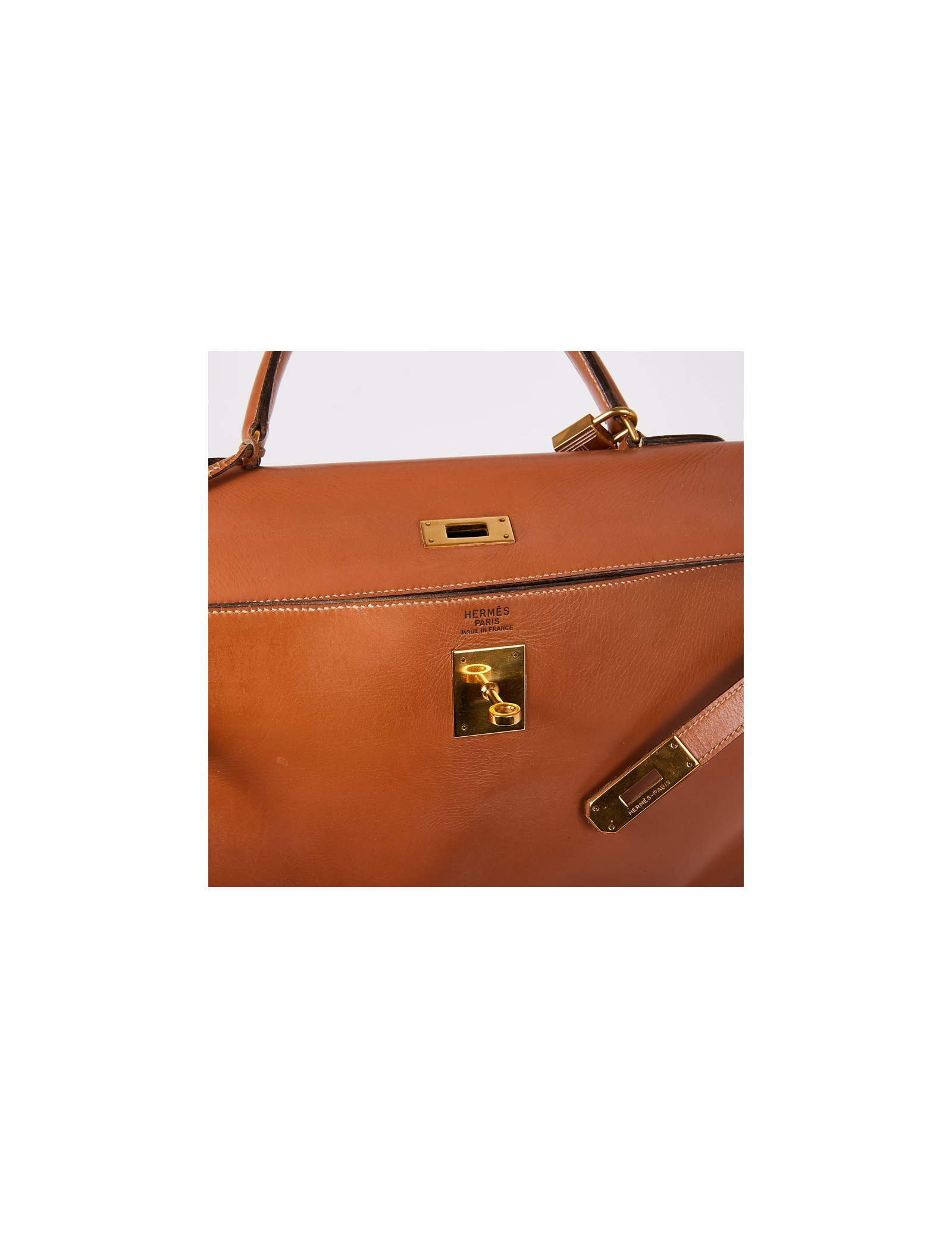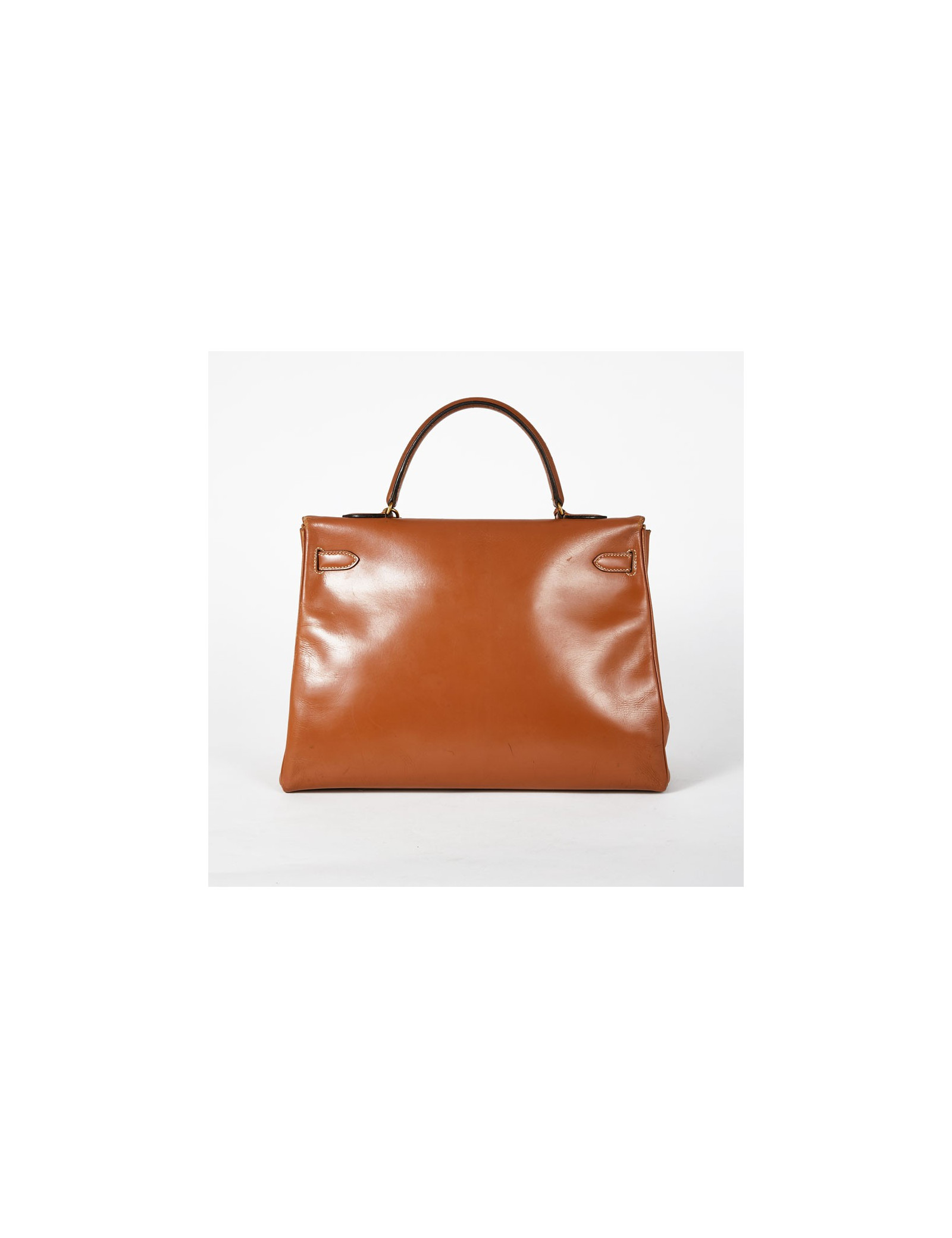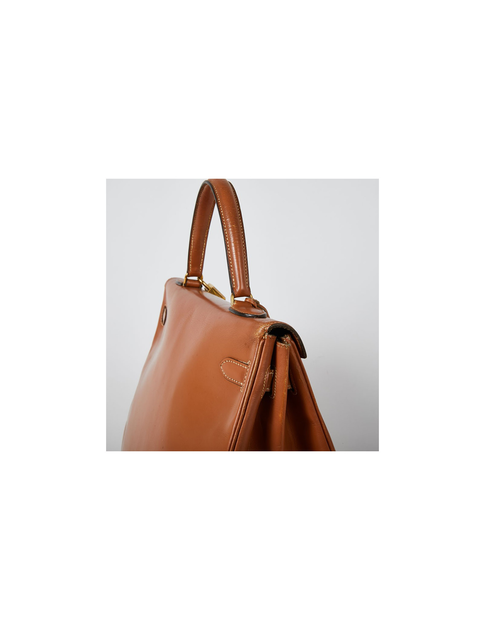 Kelly 35 HERMES caramel vintage en cuir box détails :
