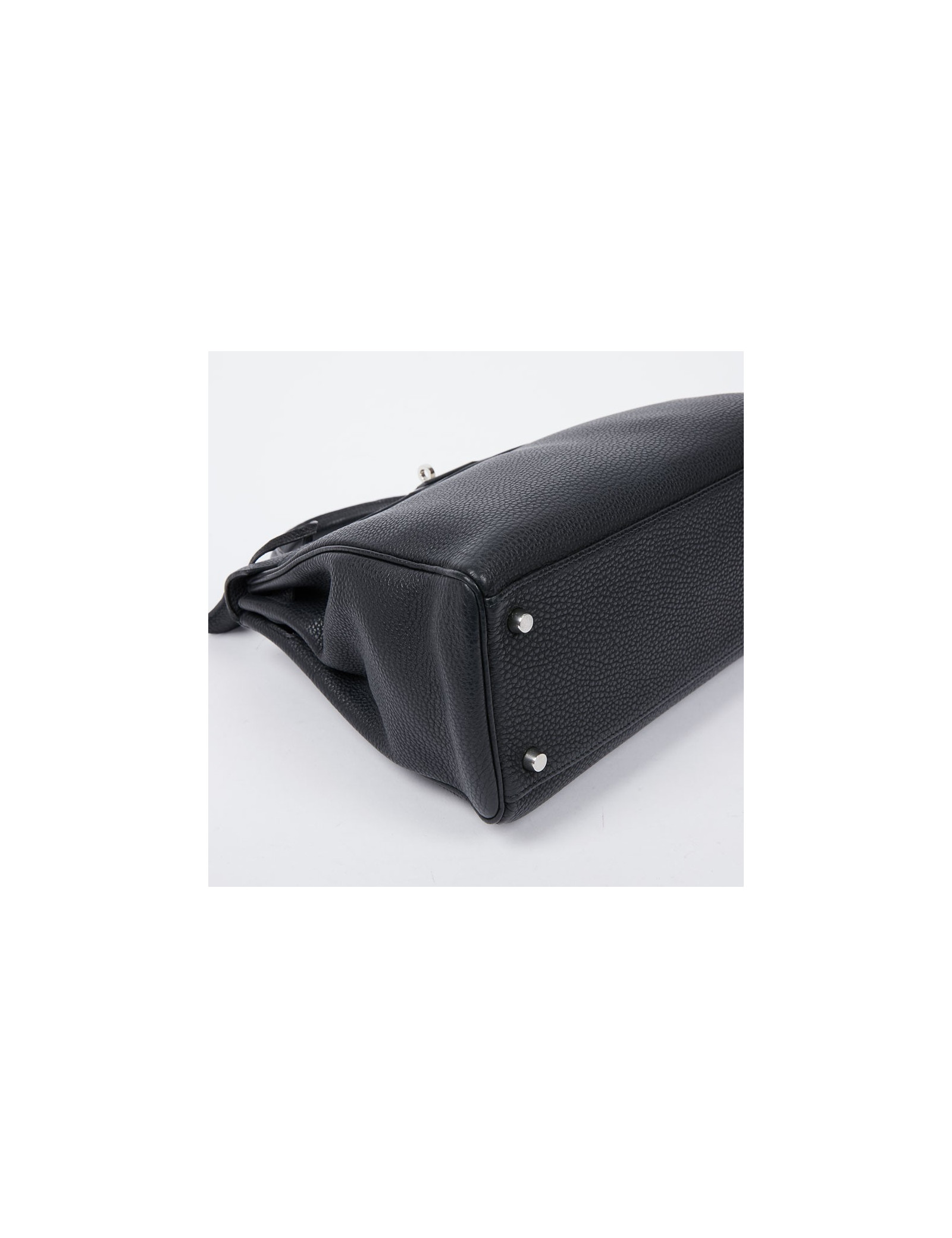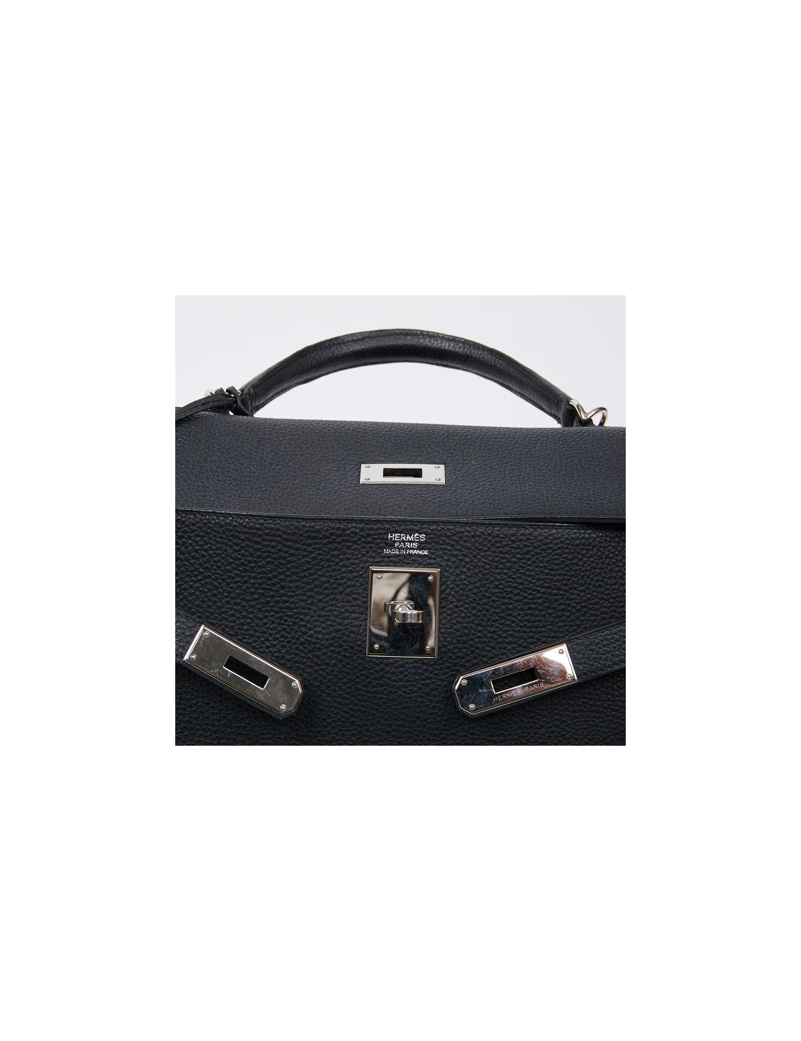 Elégant sac Kelly II de la Maison HERMES en cuir de veau Togo noir. Un must à avoir dans sa garde robe. La garniture est en métal argent palladié. Il peut se porter à la main ou à l'aide d'une bandoulière amovible à l'épaule. Fermeture par rabat.
