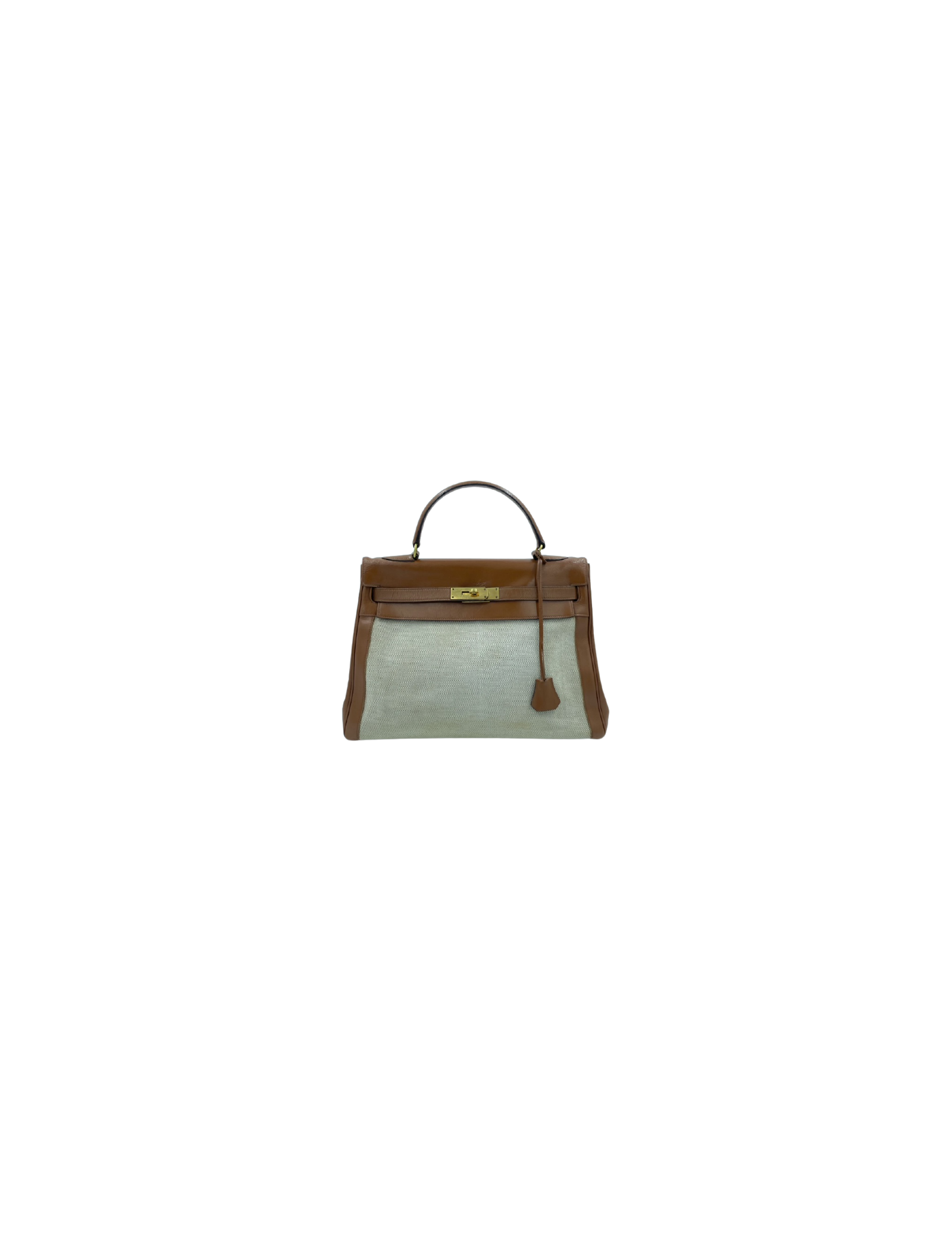 Kelly 32 HERMES toile et cuir beige Vintage Condition : très bon état