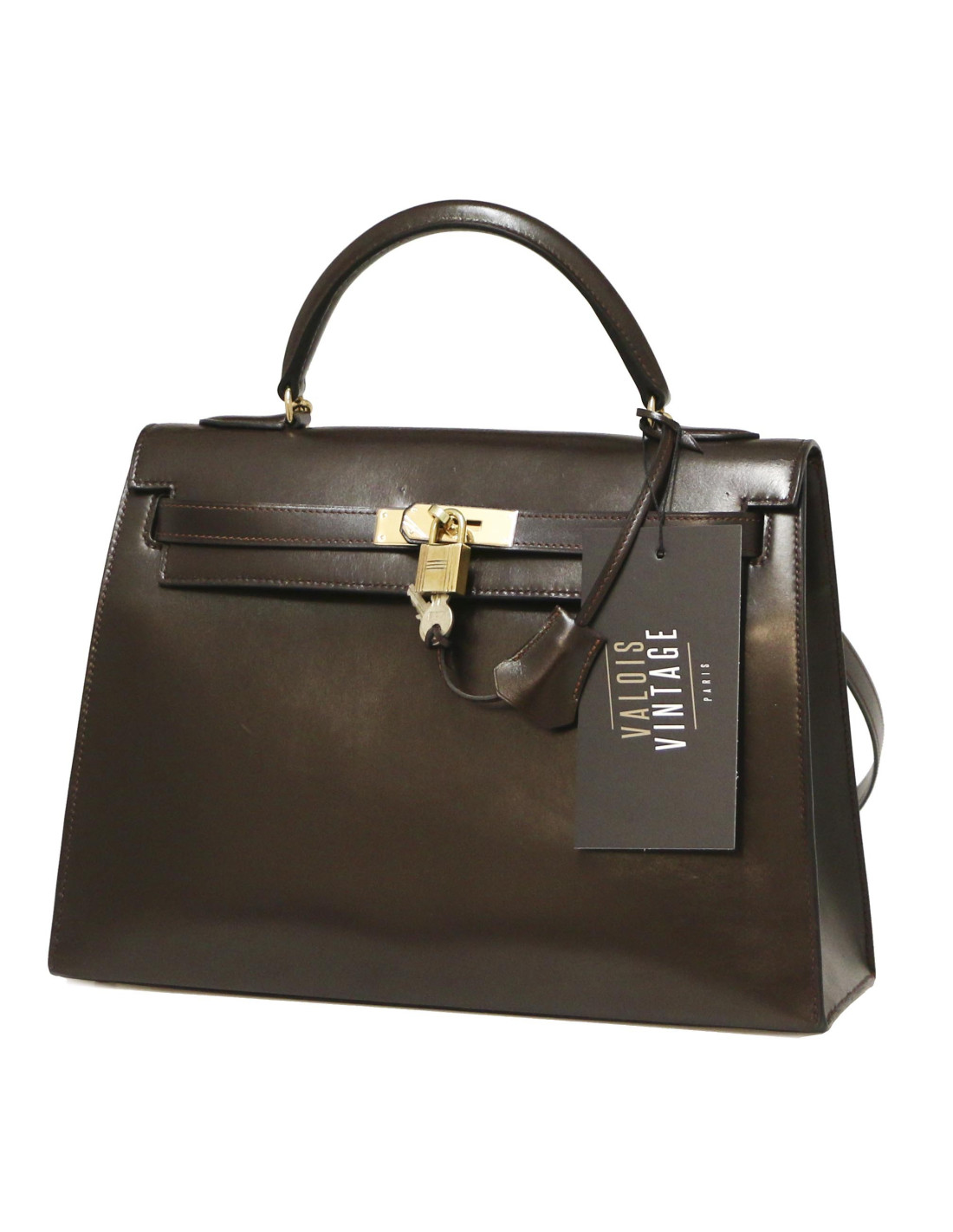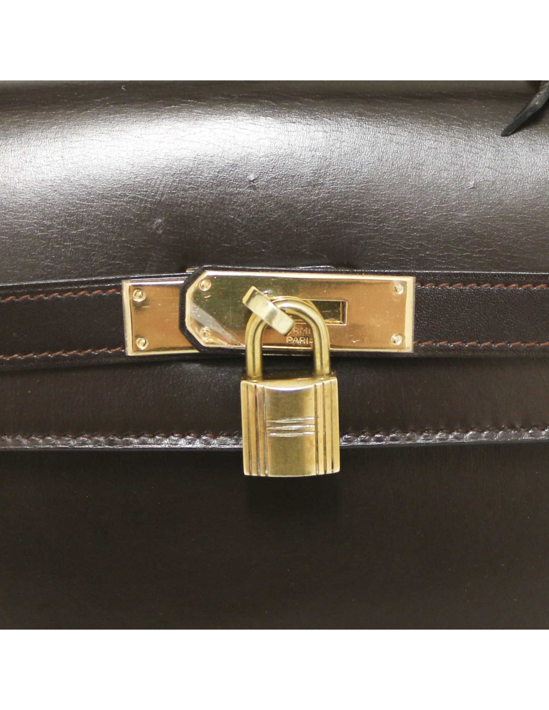 Kelly 32 HERMES Sellier box marron, avec bandoulière
