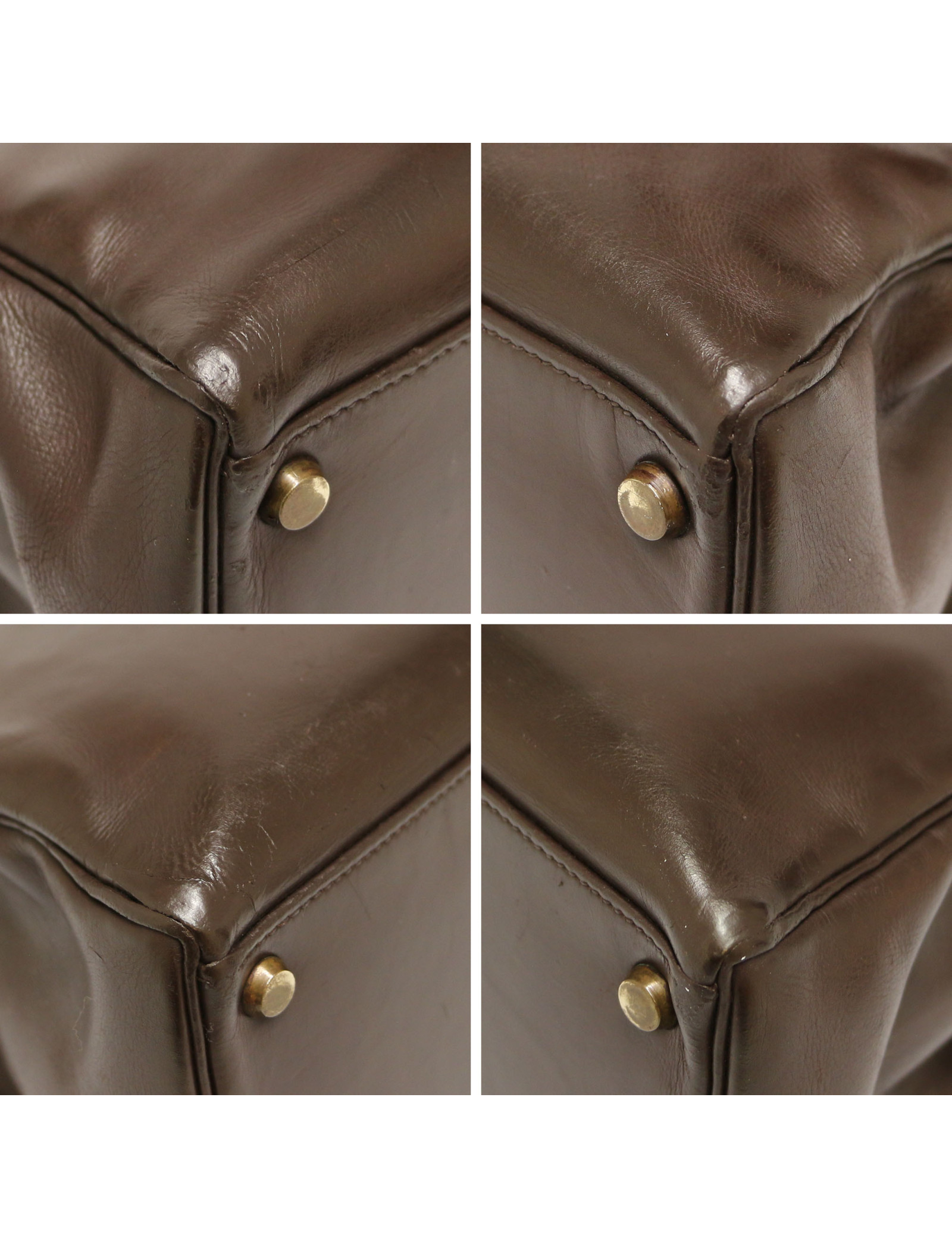 Détails : tirette, clochette, cadenas et clés (2). Rayures minimes en particulier sur le haut du sac.