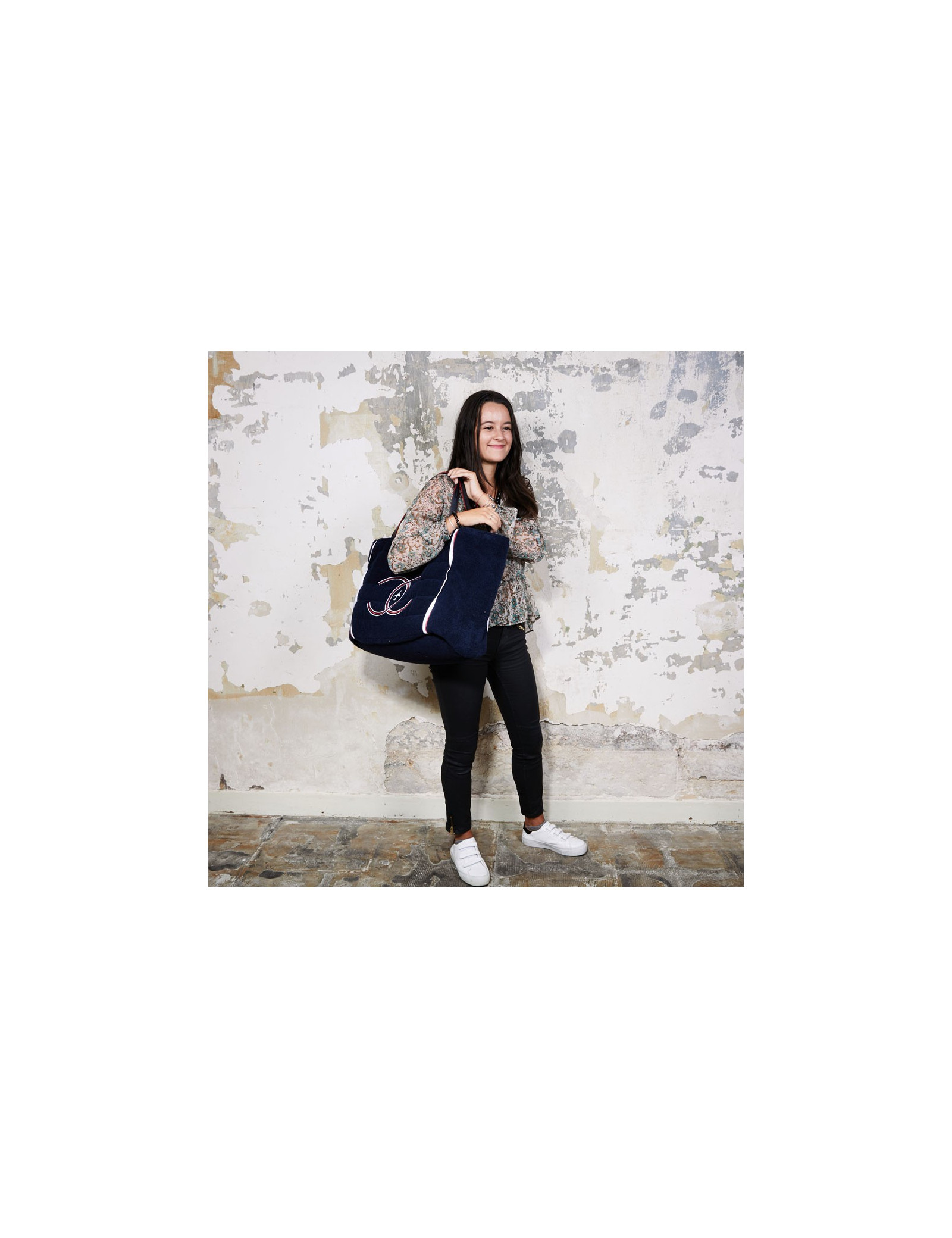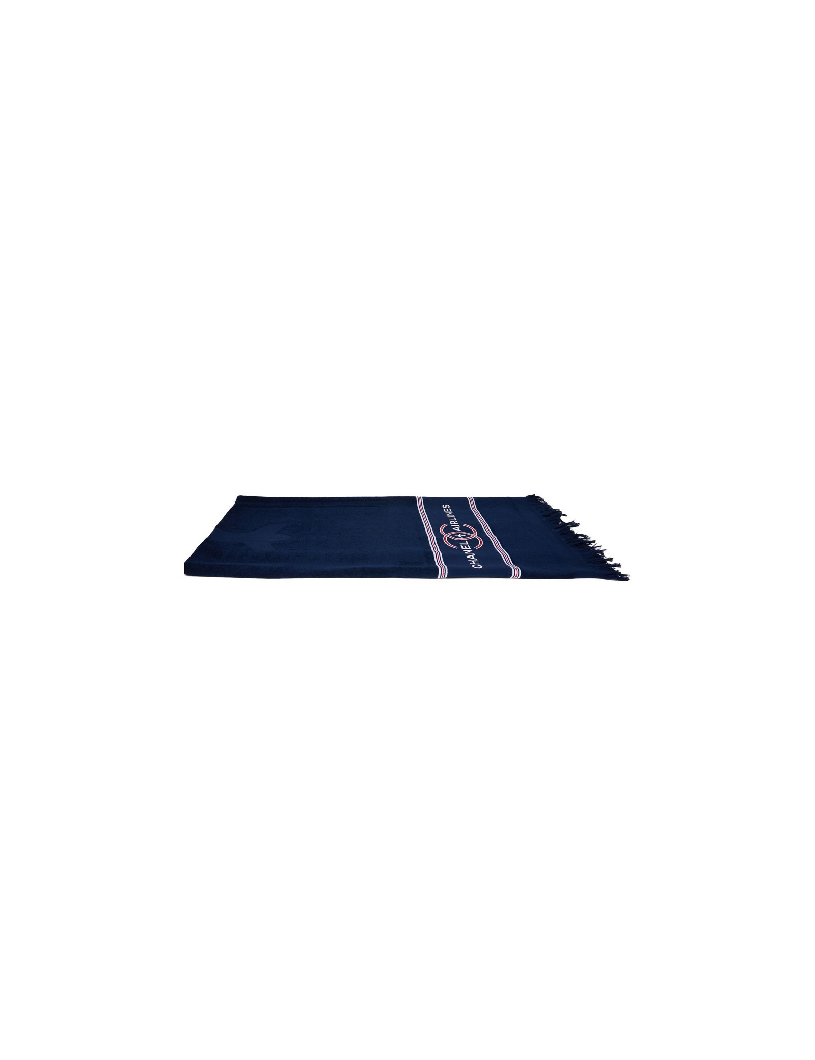 Contenu : une serviette de plage en tissu éponge bleu marine