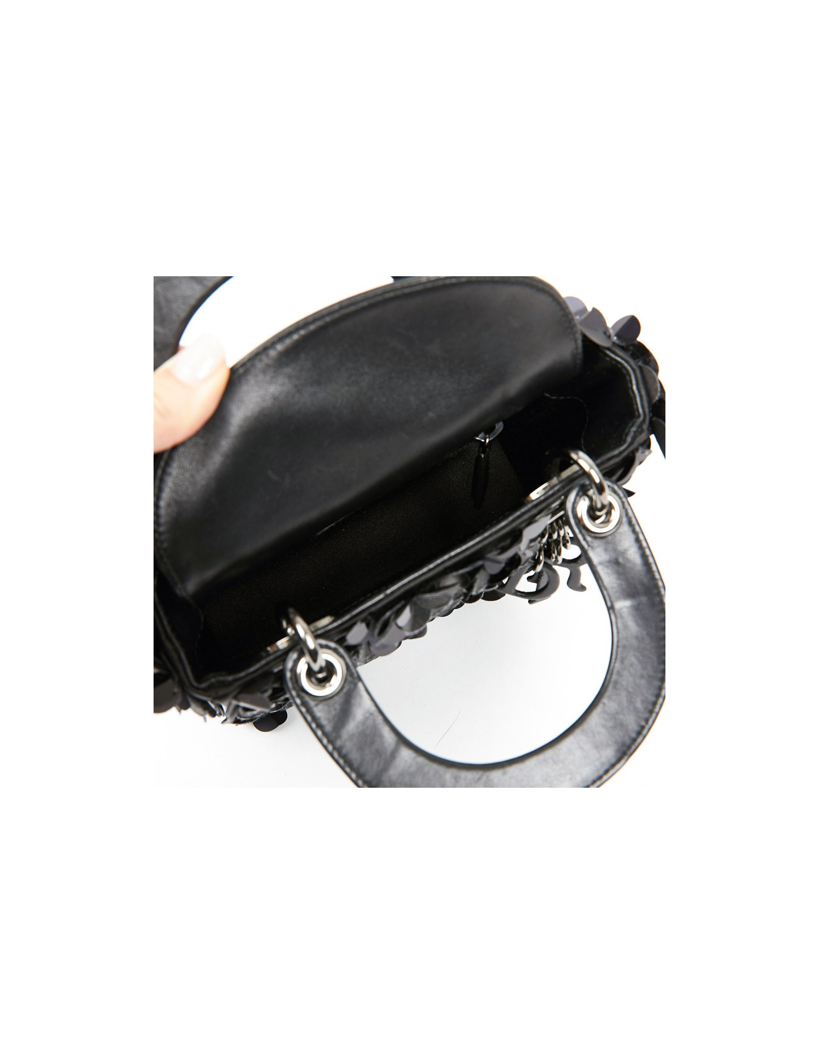 Sac Lady D DIOR à fleurs en cuir noir