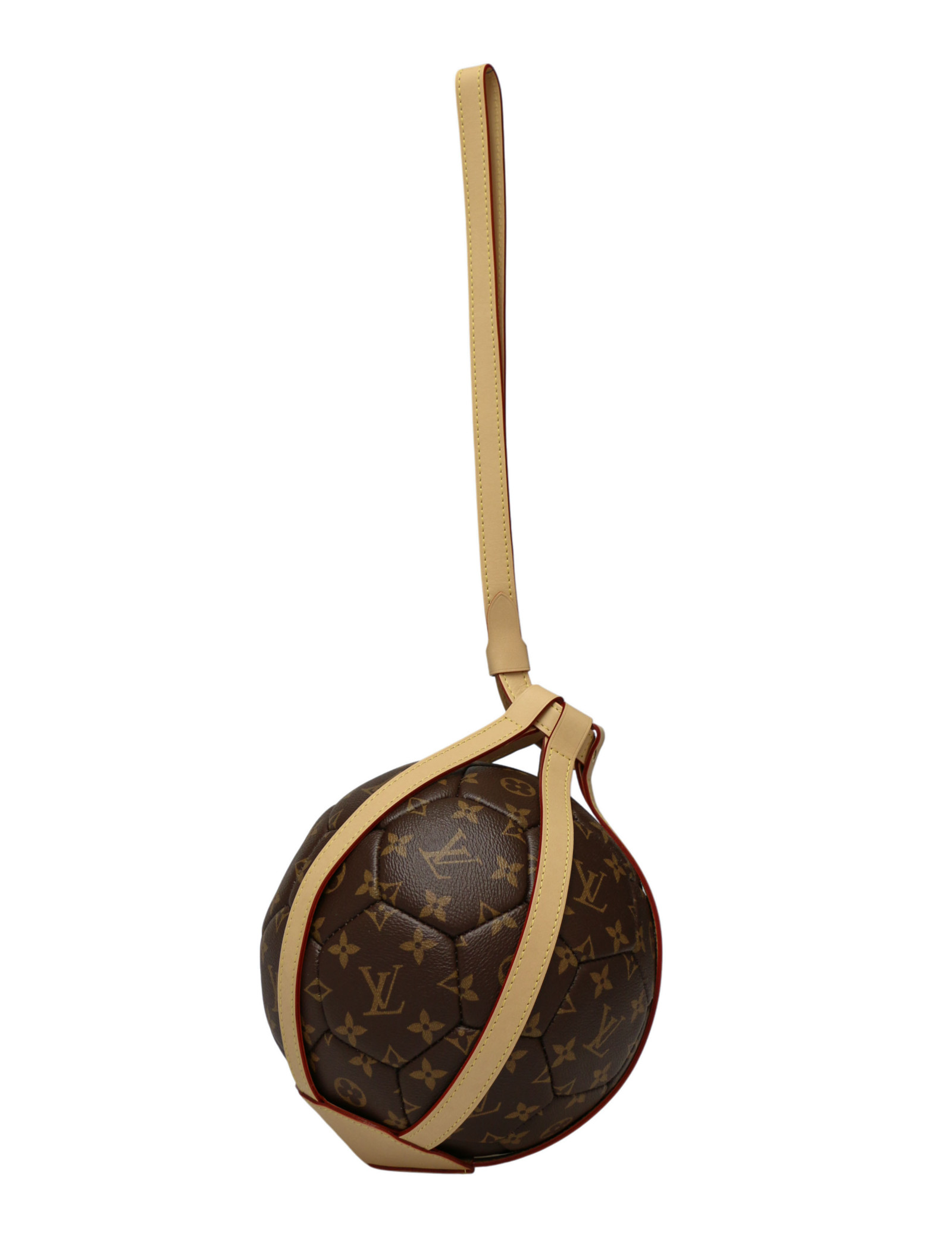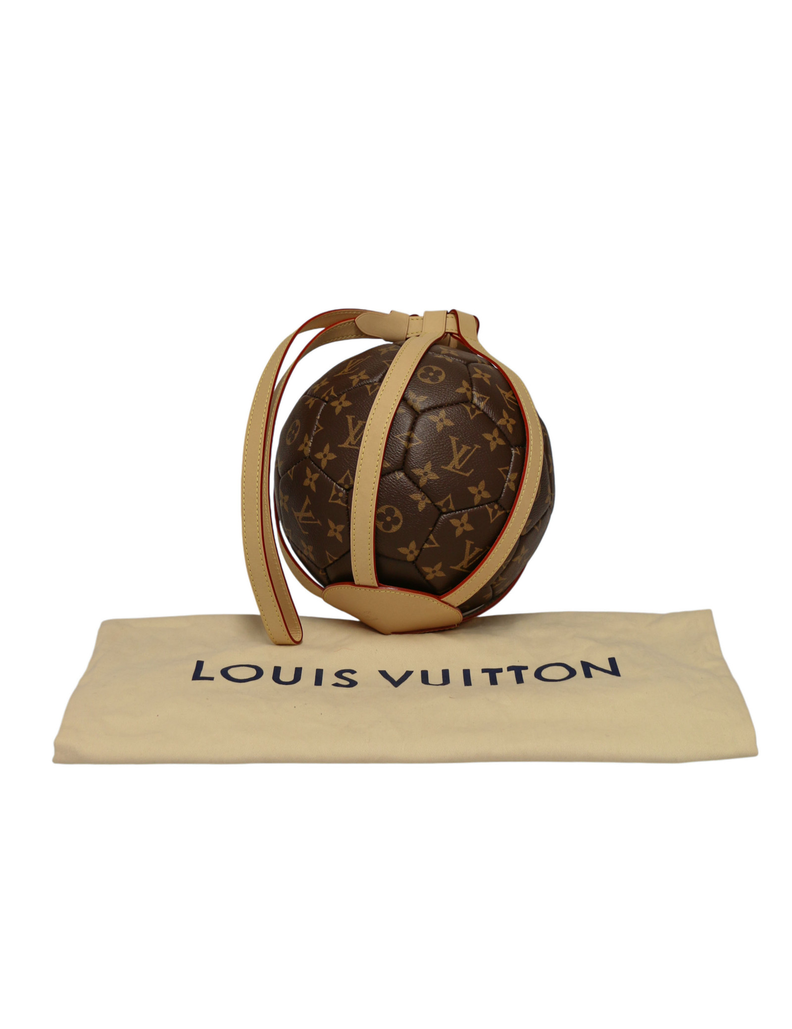 Ballon de Football Louis Vuitton en Toile Monogram, Édition Cadeau VIP 2024 avec Harnais en Cuir Naturel