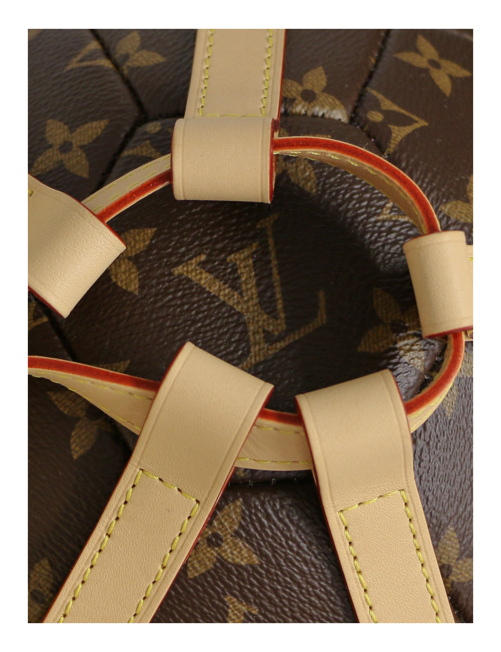 Fabriqué à partir de la toile Monogram emblématique, cet objet unique est sublimé par un harnais en cuir de vachette naturel (Vachetta) méticuleusement conçu, témoignant du savoir-faire inégalé et du souci du détail de Louis Vuitton.