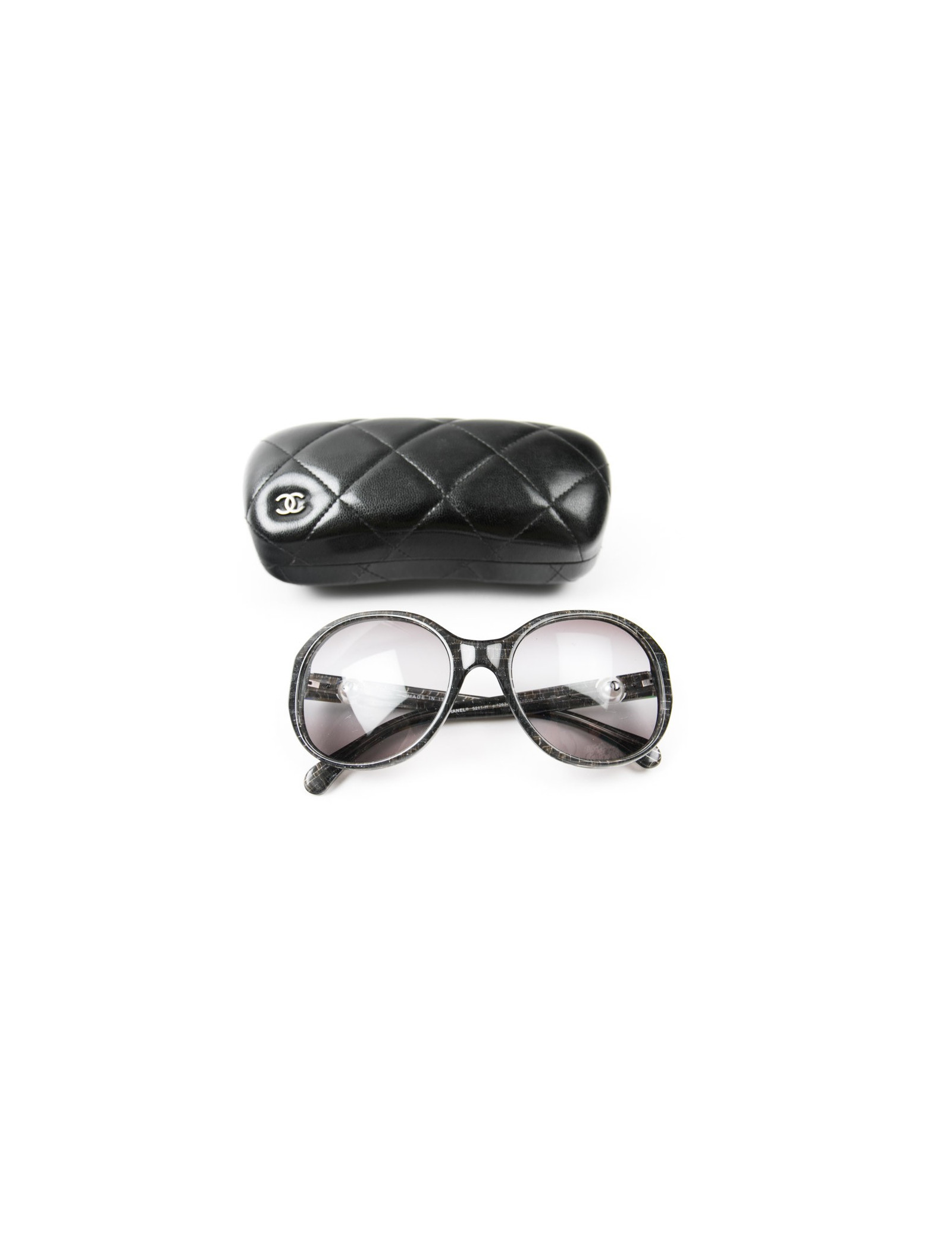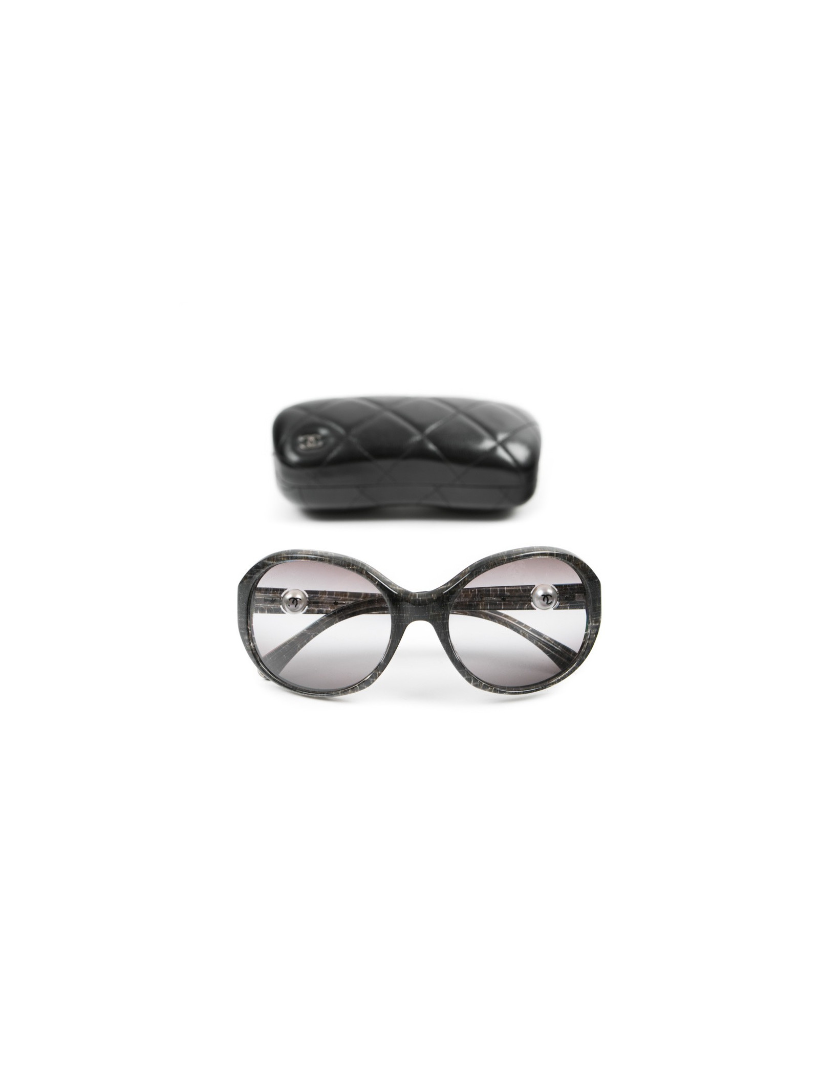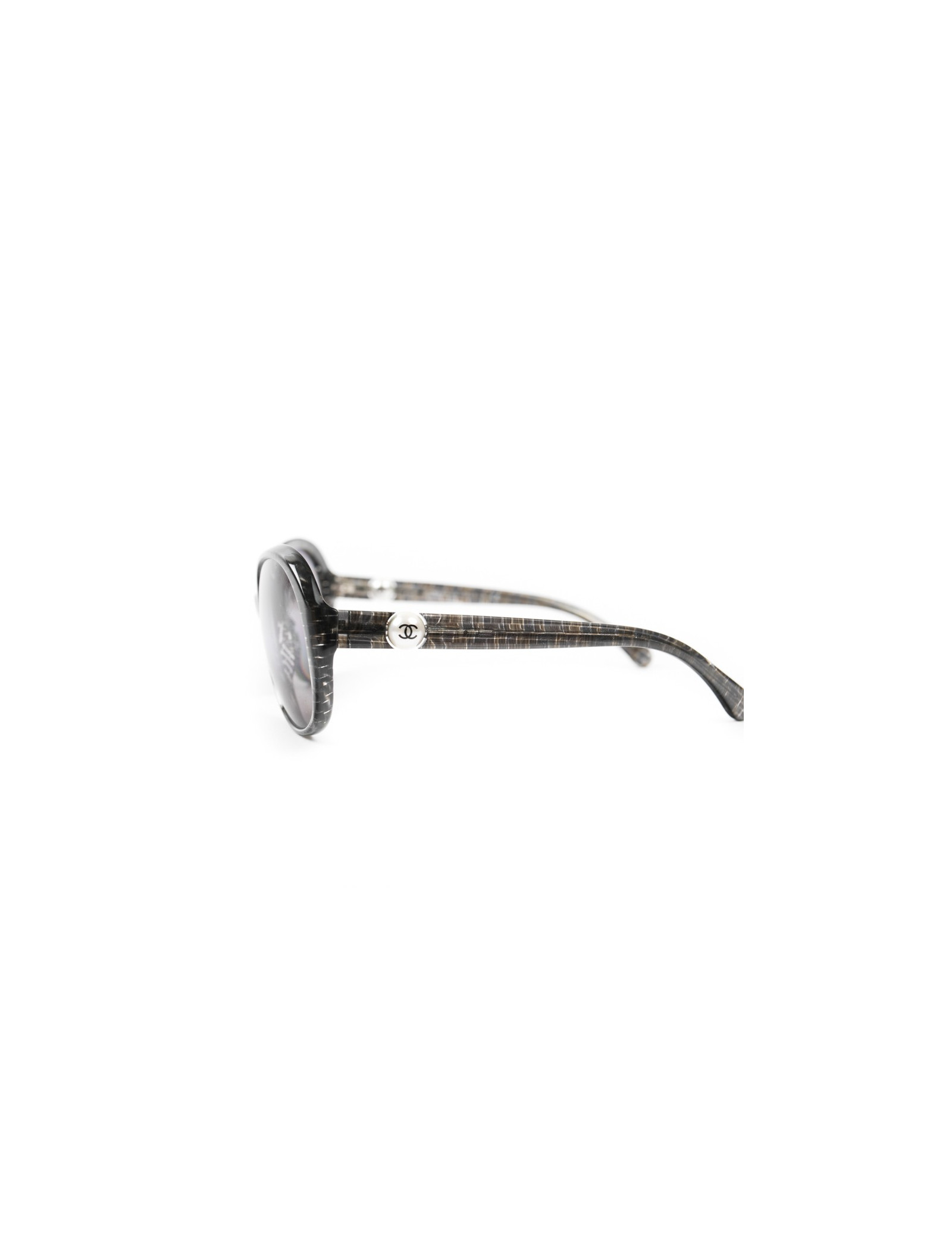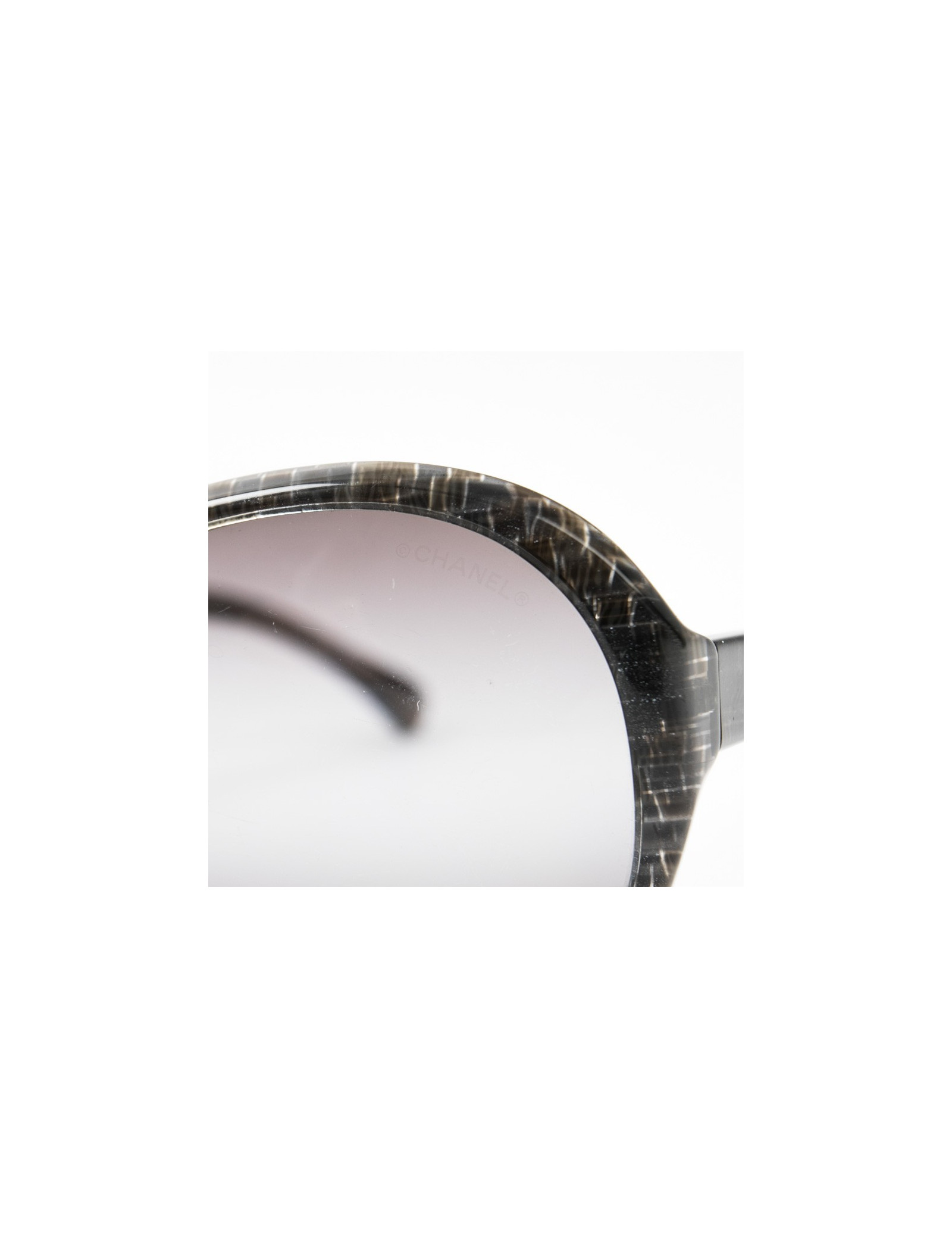 Lunettes de soleil Chanel en plexi pailleté gris.