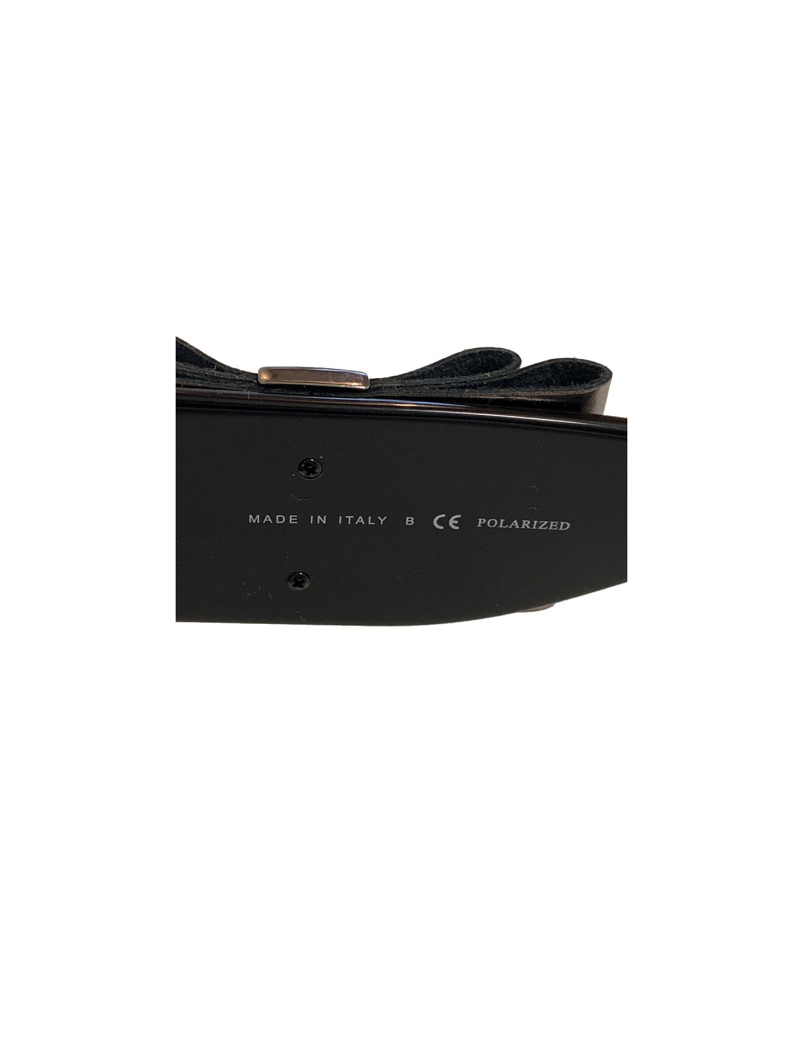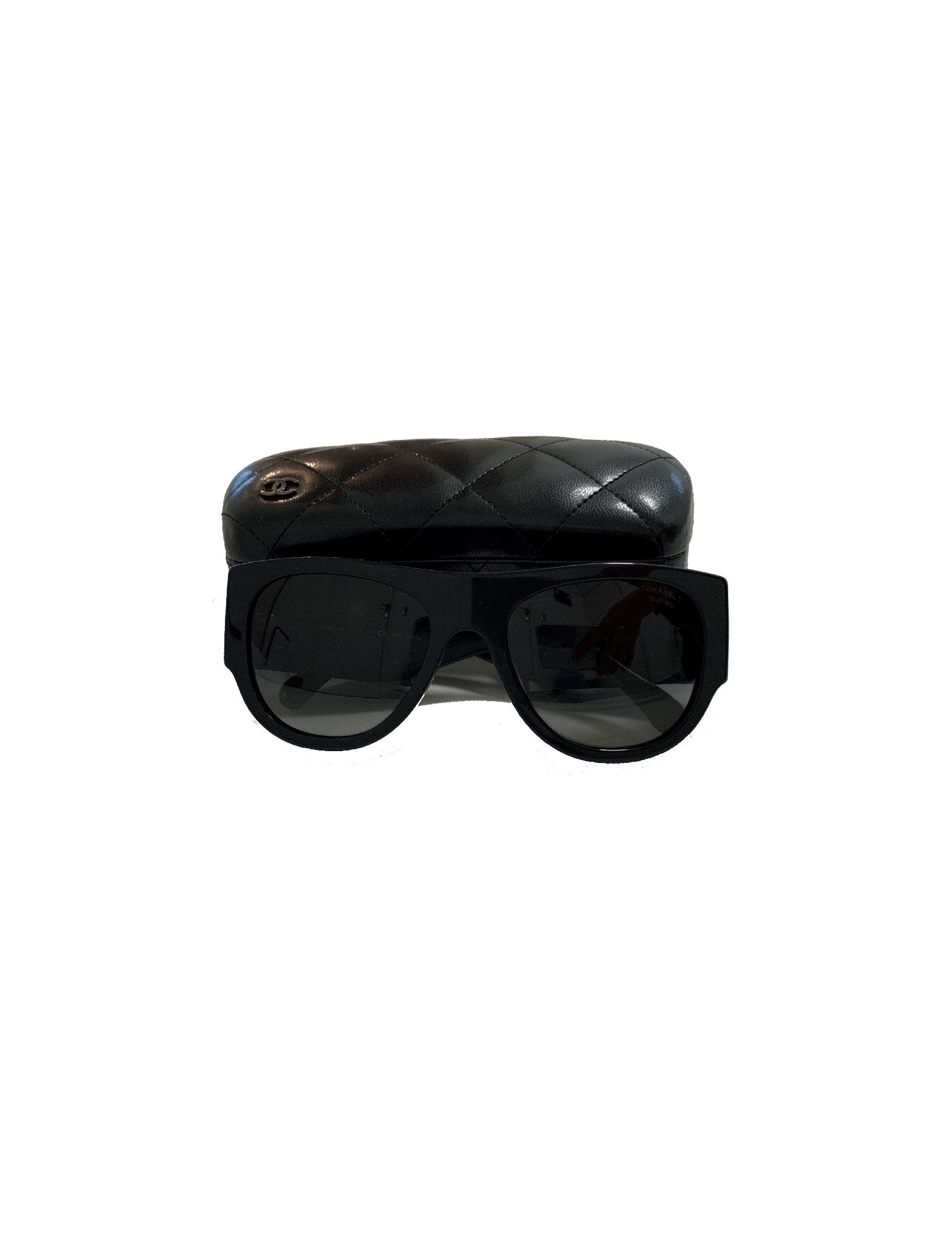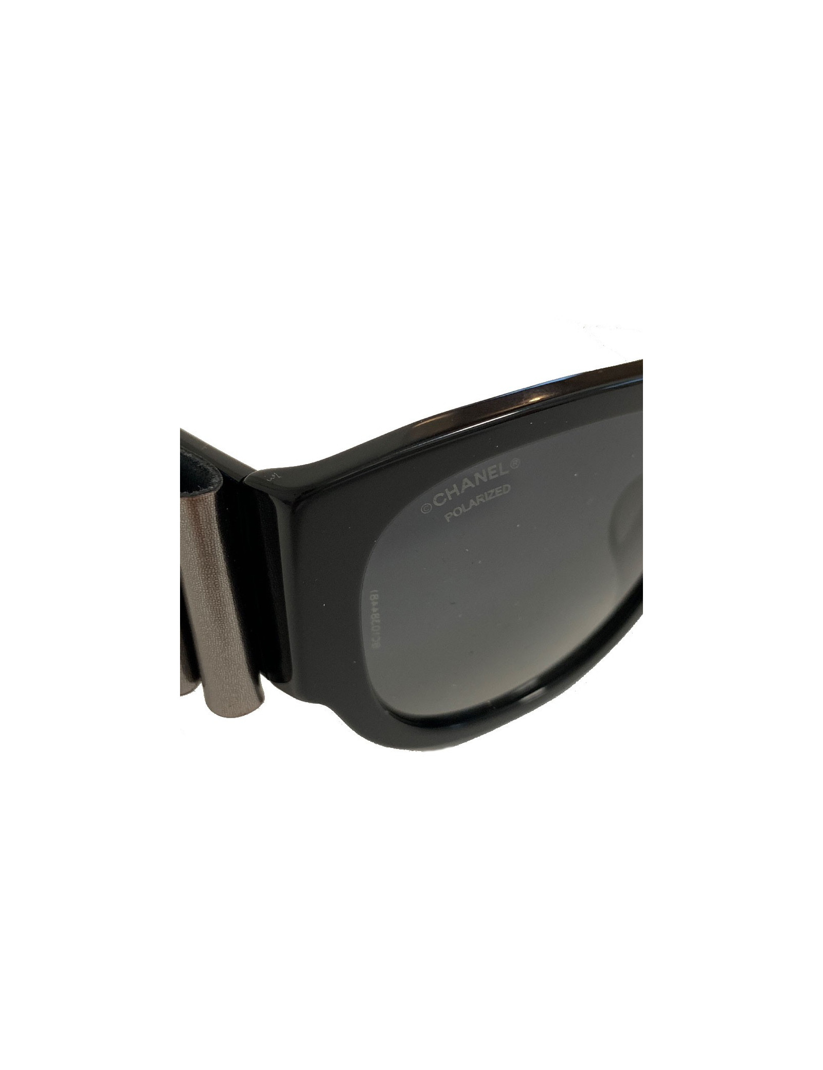 Protégez vos yeux avec cette paire de lunettes de soleil CHANEL dont les verres foncés sont polarisés pour plus de confort. L'originalité réside dans le pliage de pièces vinyls gris métallisé sur les branches.