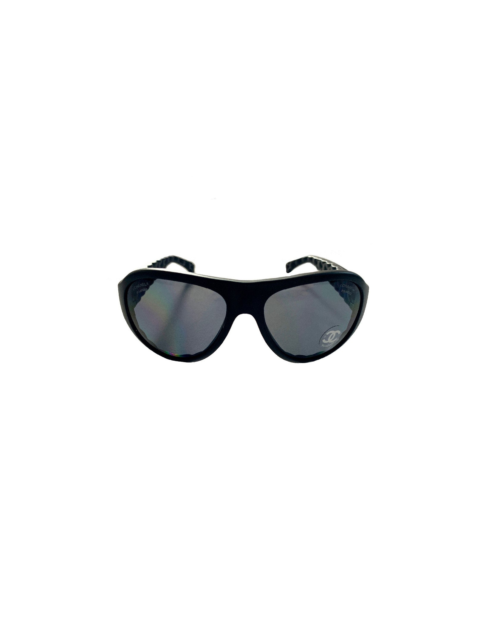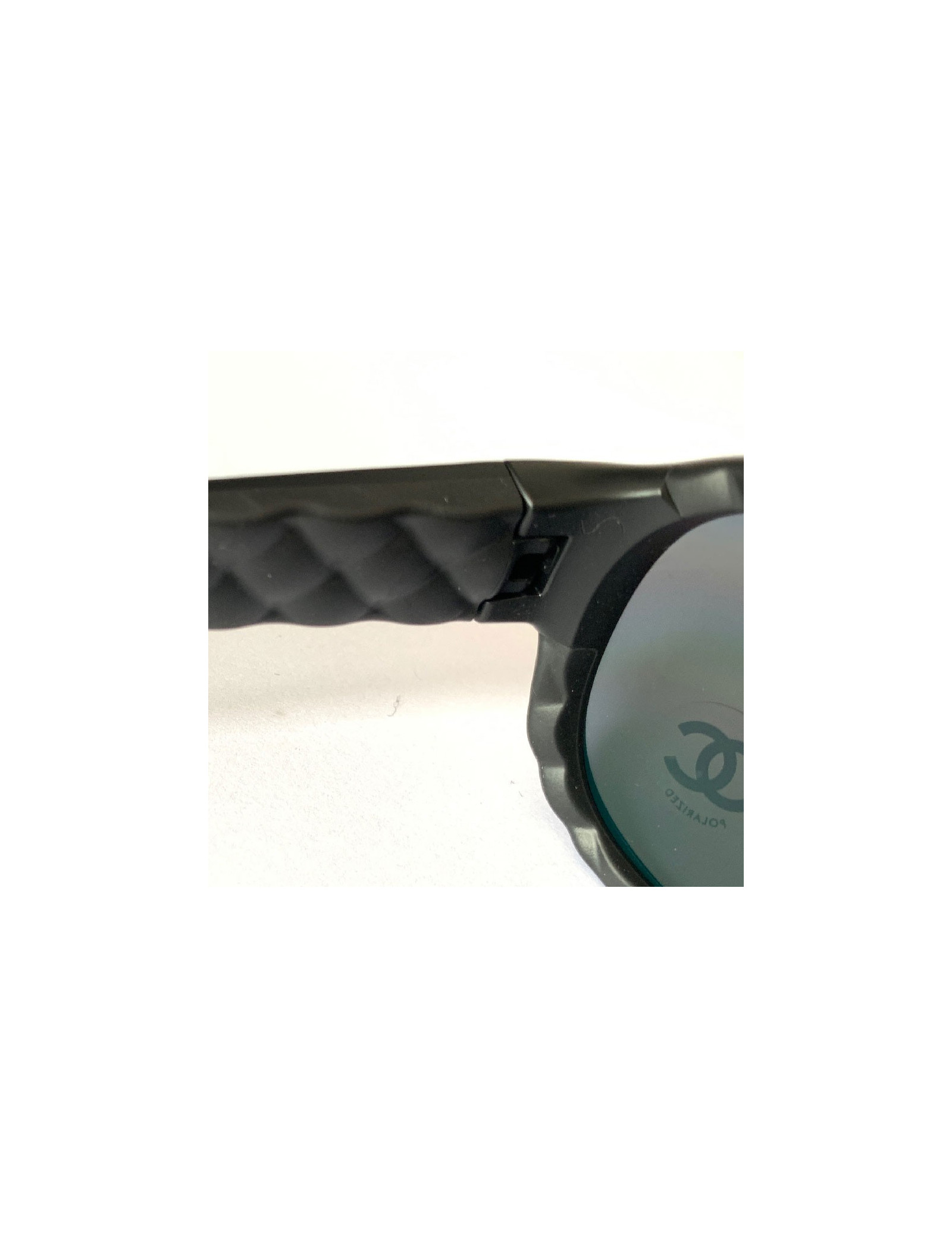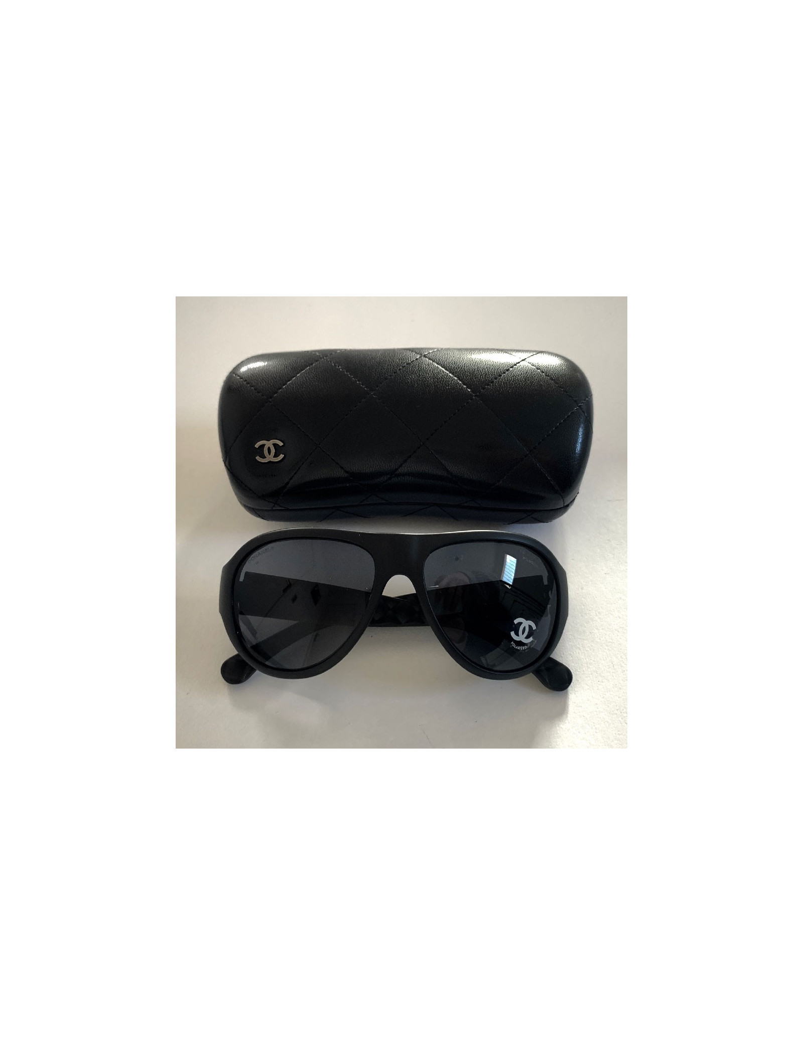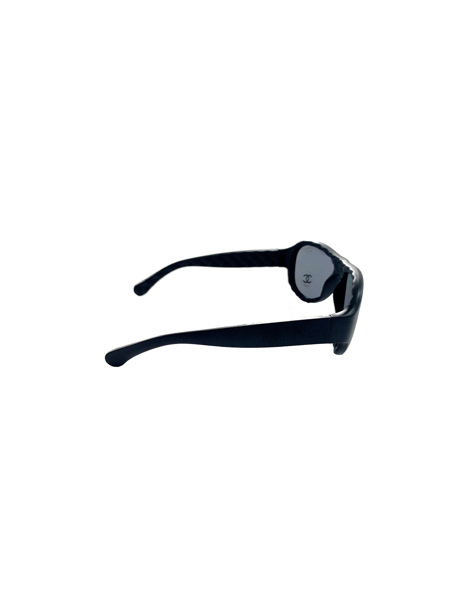 Modèle aviateur pour ces lunettes de soleil CHANEL, en plexi noir mat. Lisse à l'extérieur et un bel effet matelassé à l'intérieur.