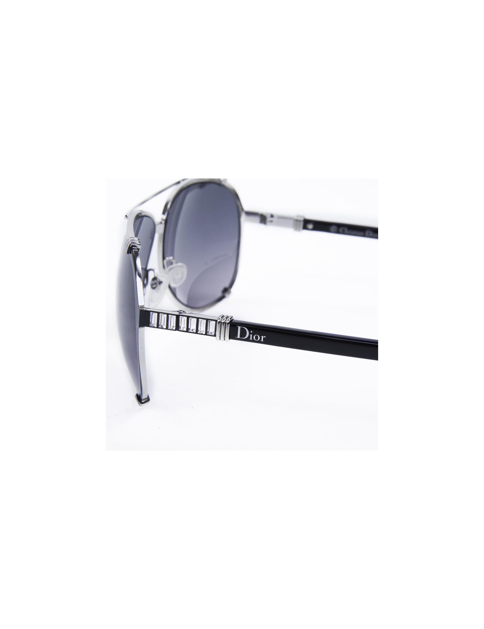 Lunettes de soleil Dior style aviateur, fumées. Les branches sont serties de brillants argentés.