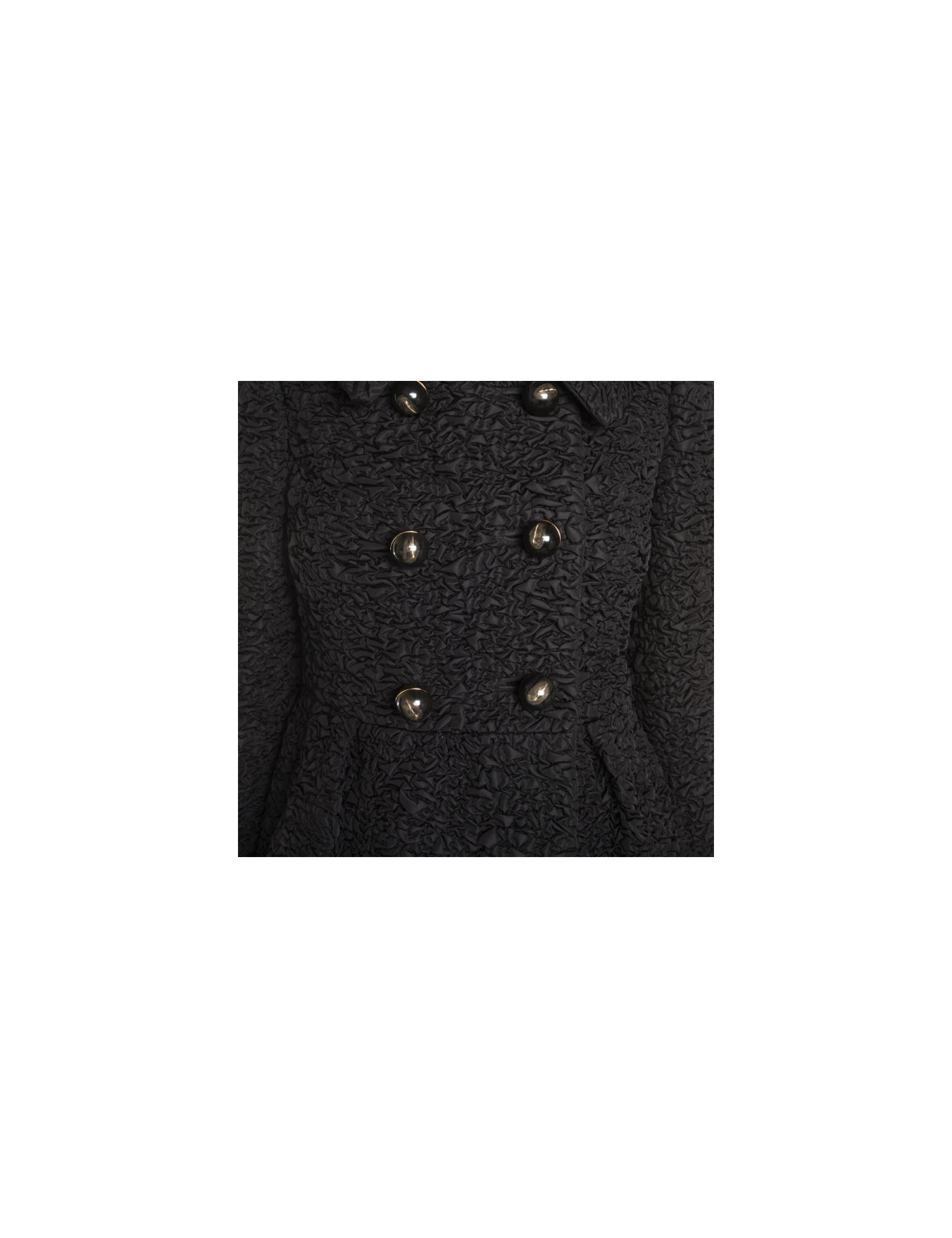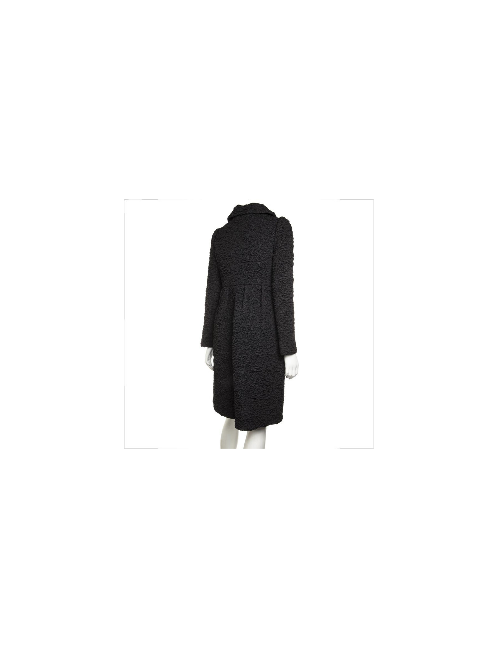 Très élégant manteau Prada en matière cloquée noire (étiquette de taille et de matière), taille haute à double boutonnage et 2 poches sur les cotés.