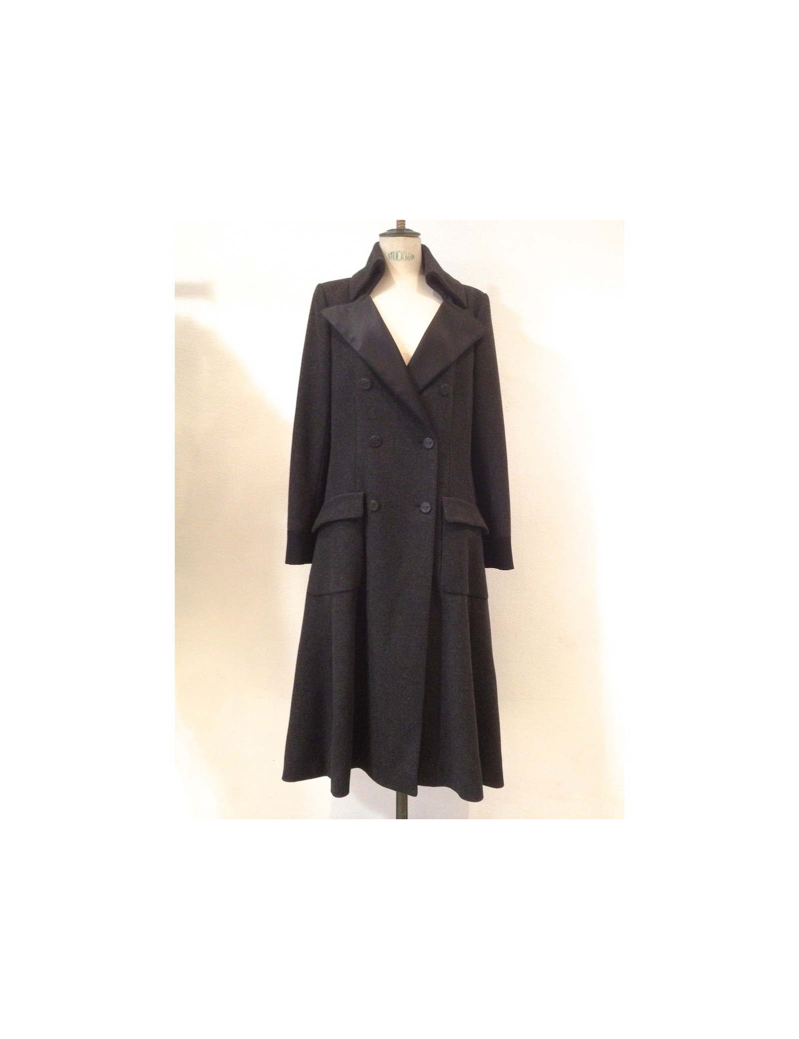 Très élégant et intemporel manteau long en laine et doublé de 100 % soie, taille 42 Chanel