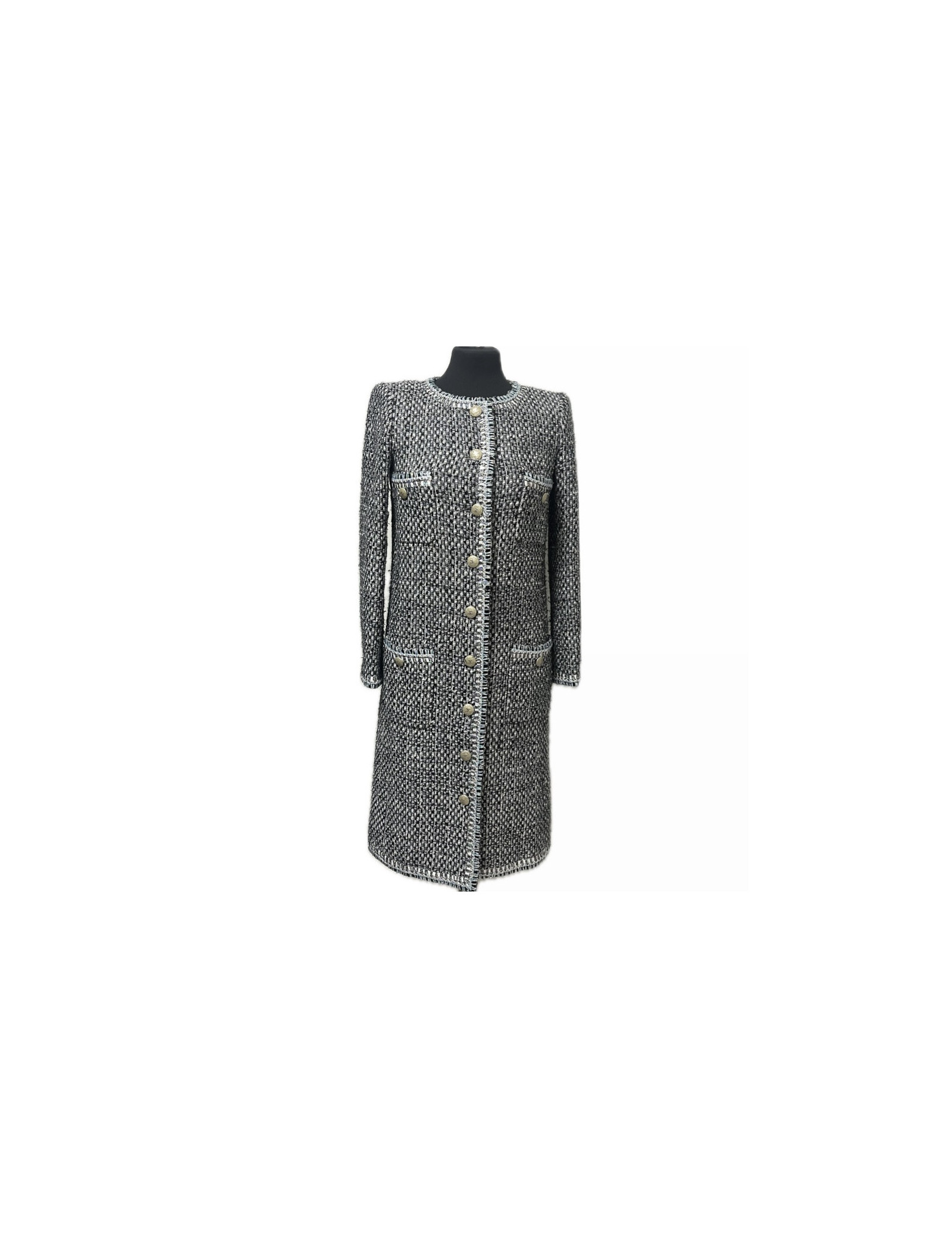 Derniers articles en stock MANTEAUX-TRENCHS Manteau CHANEL tweed blanc et noir CHANEL 35311 5 300,00 € Manteau long CHANEL cuir et tweed Condition : très bon étatPays de fabrication : ItalieTaille : 40Matière : 46% laine, 29% polyamide, 25% alpaga. Incrustations en cuir de veauDoublure : 64% coton, 36% soieCouleur : noir, blancDimensions à plat: épaules : 48 cm, sous la poitrine : 49 cm, hauteur : 130 cm, longueur des manches : 56 cm, tour de poignet : 34... Ajouter au panier