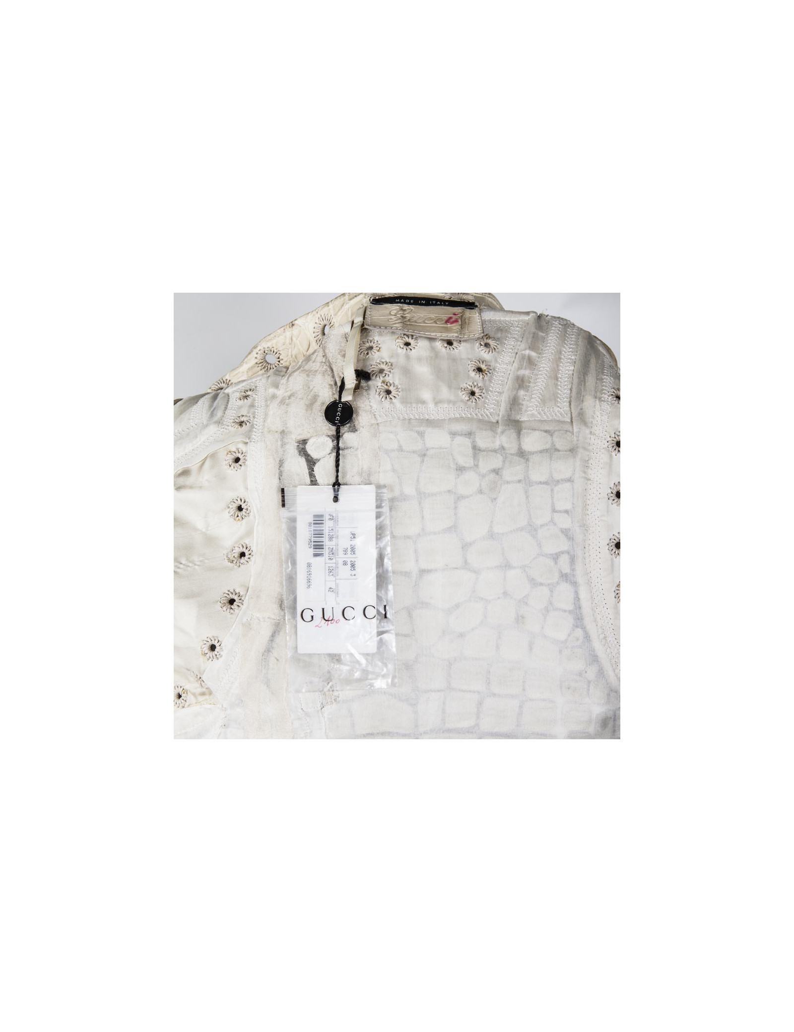 Fermeture par agrafes dorées, croisée au niveau de la taille, doublure en soie et voile de soie (réparation à l'intérieur - voir photo)