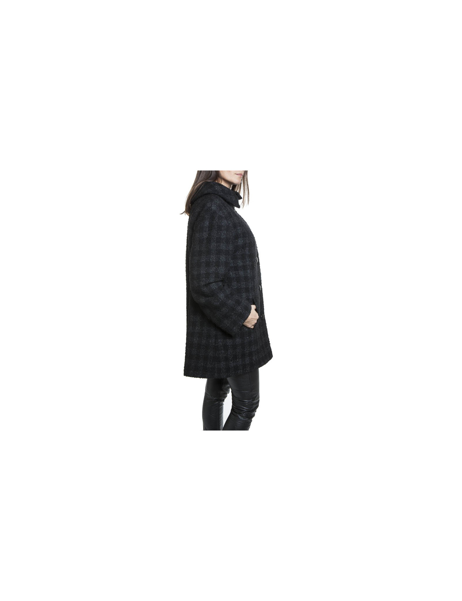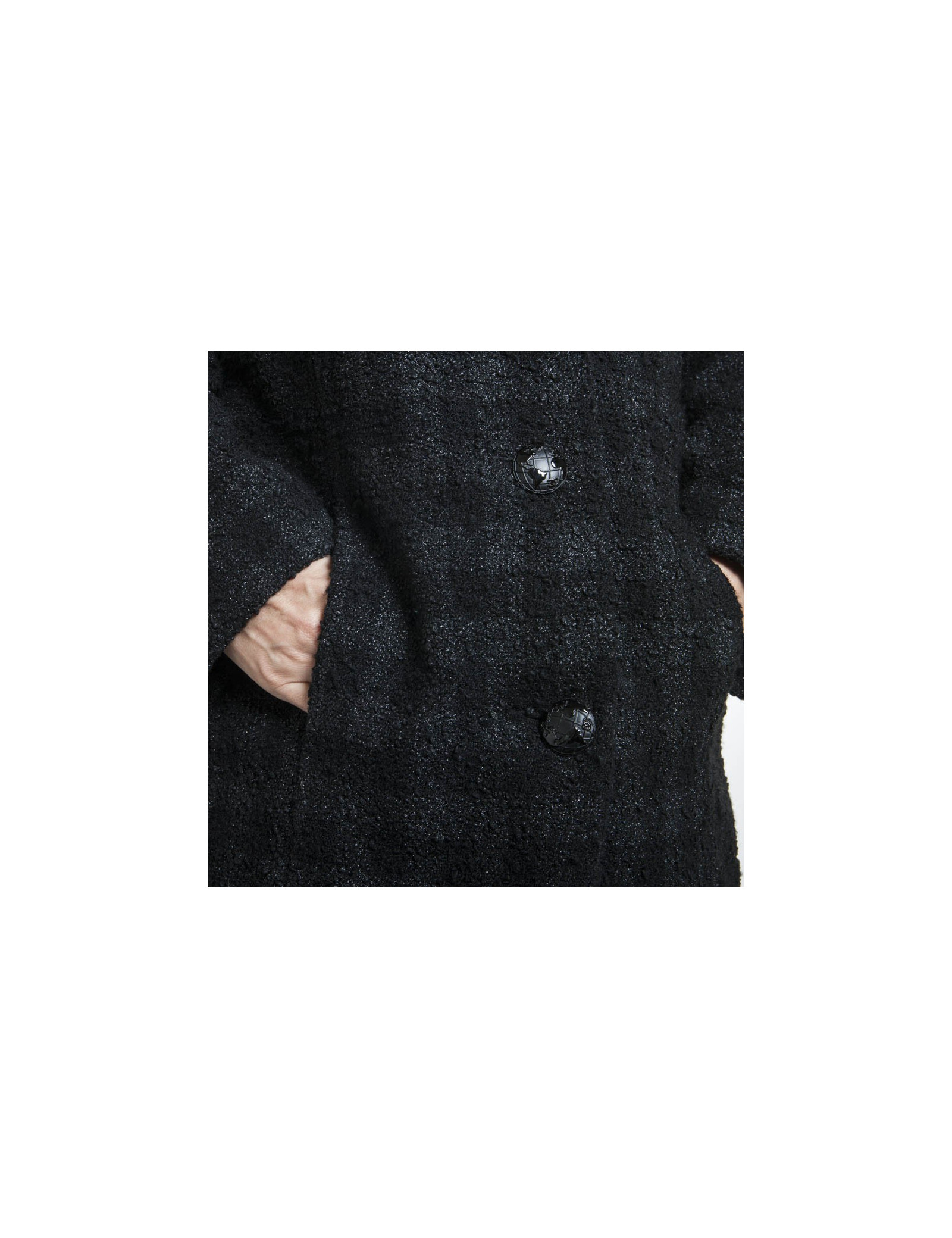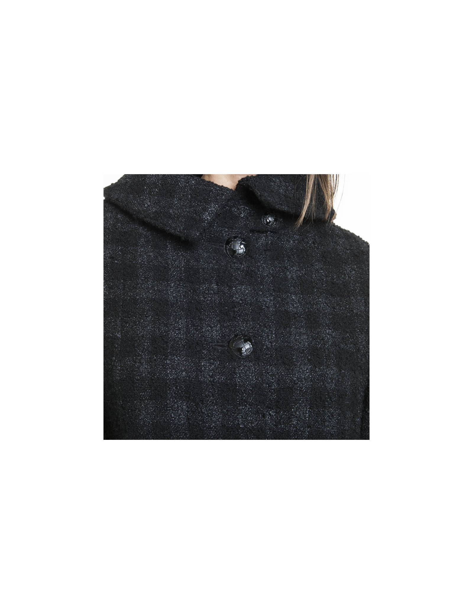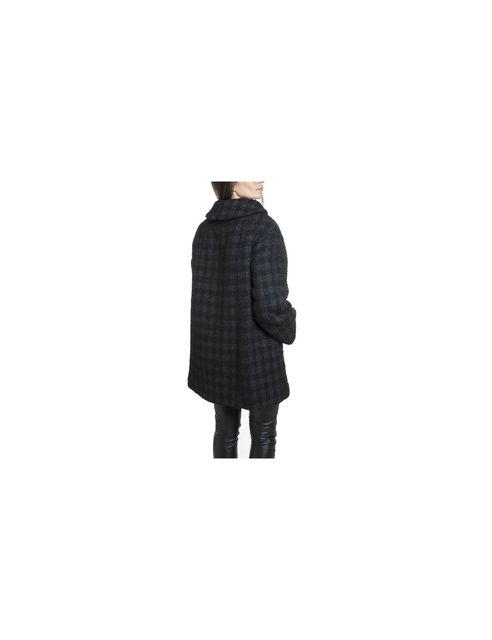 Superbe manteau CHANEL en tweed de laine noir lamé avec un très beau col.