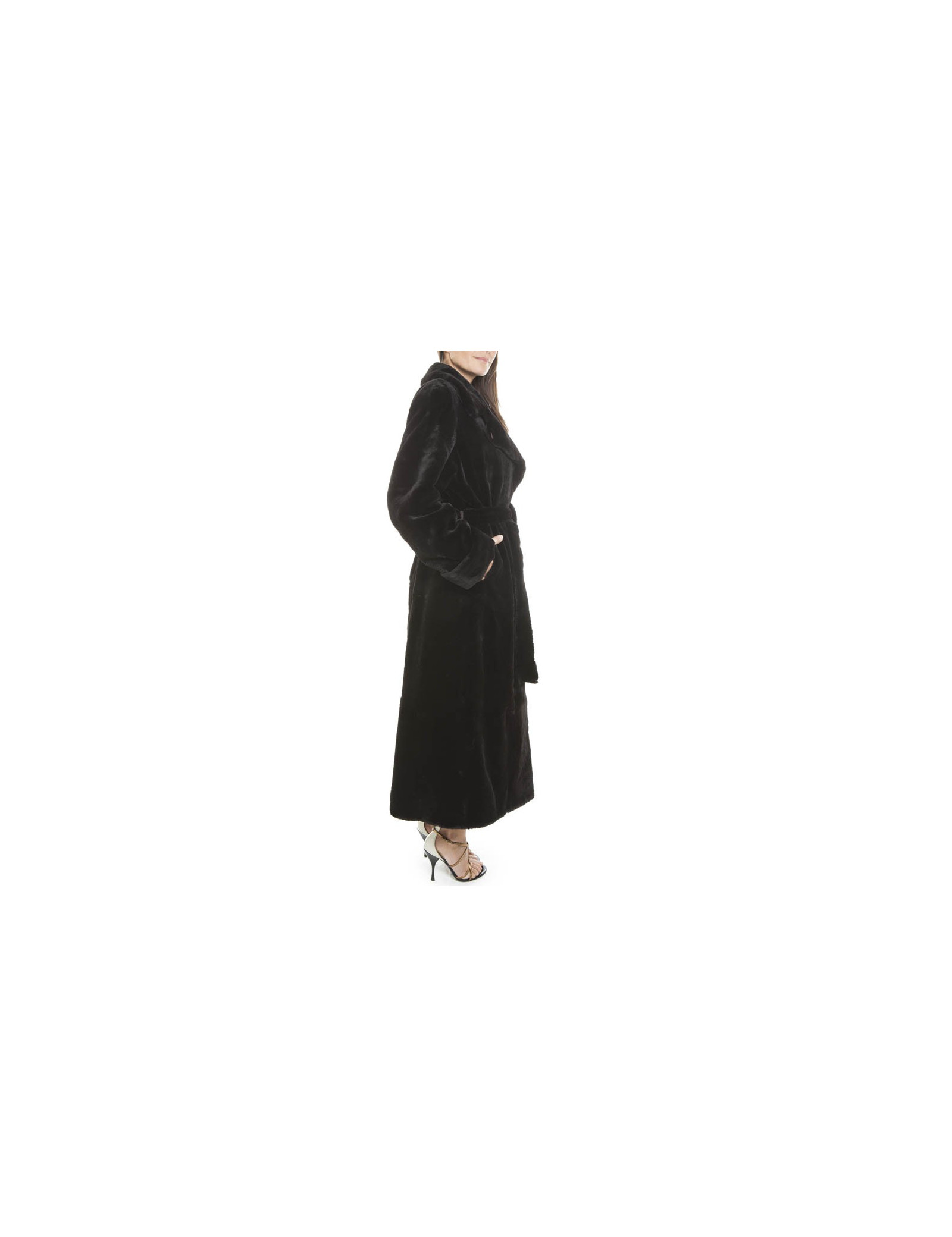 Long manteau en vison rasé sans marque. Pas d'étiquette de matière, équivaut à une taille 40.