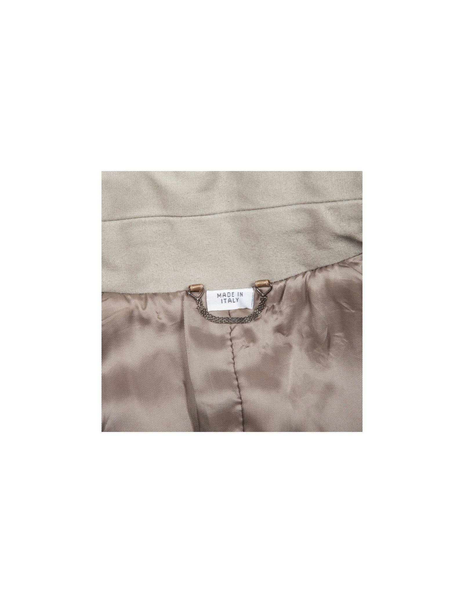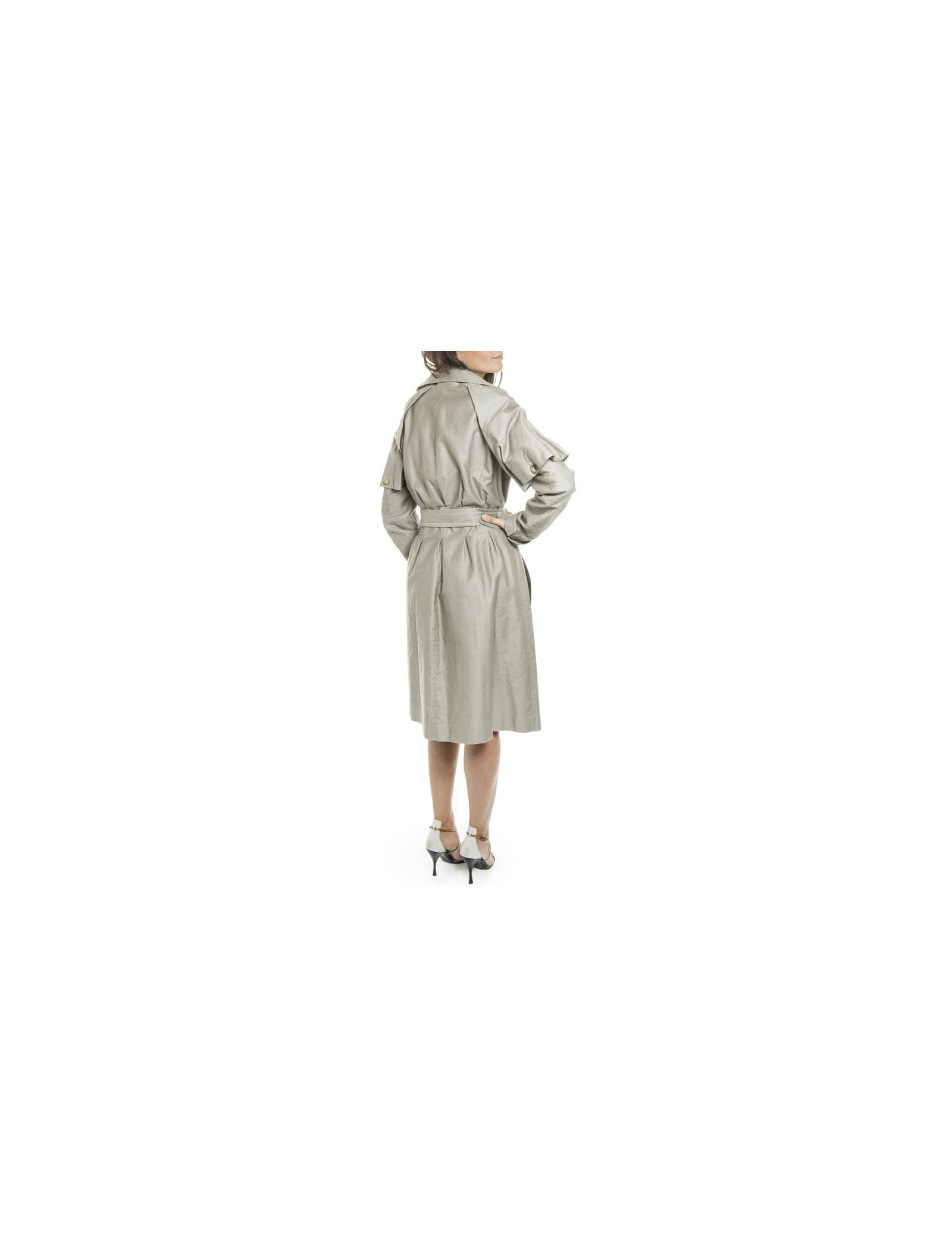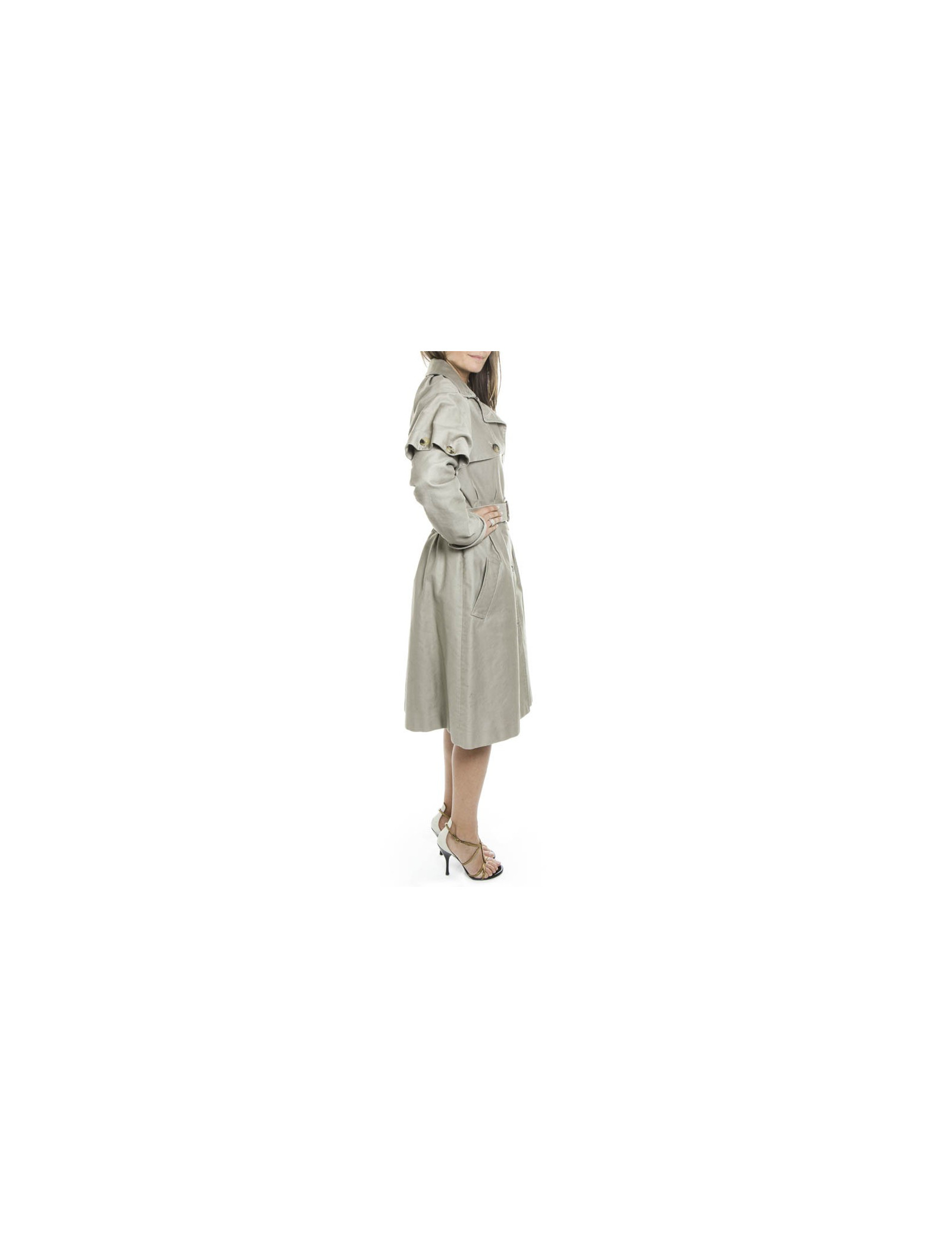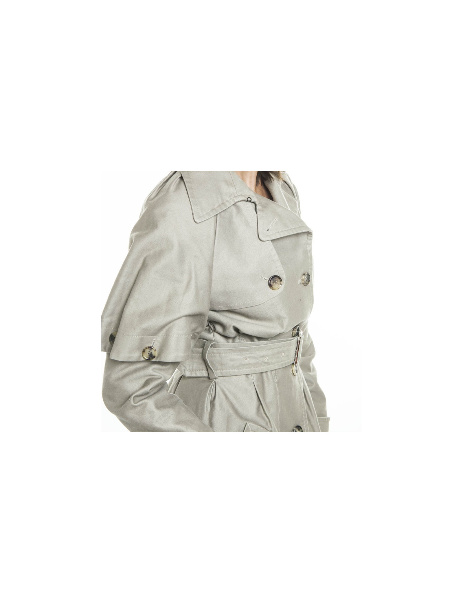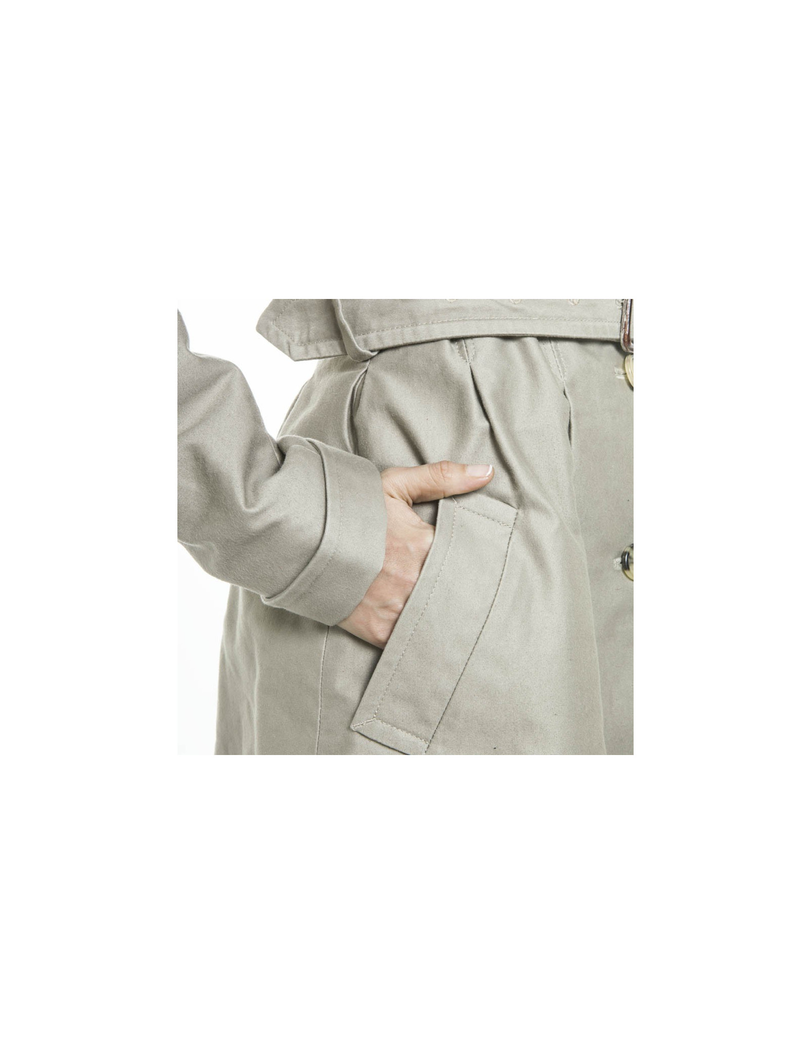 Utile en toutes circonstances, ce trench très féminin en coton est très structuré au niveau de la taille. Les poignets amovibles sont attachés par des pressions. Il est doublée en satin.