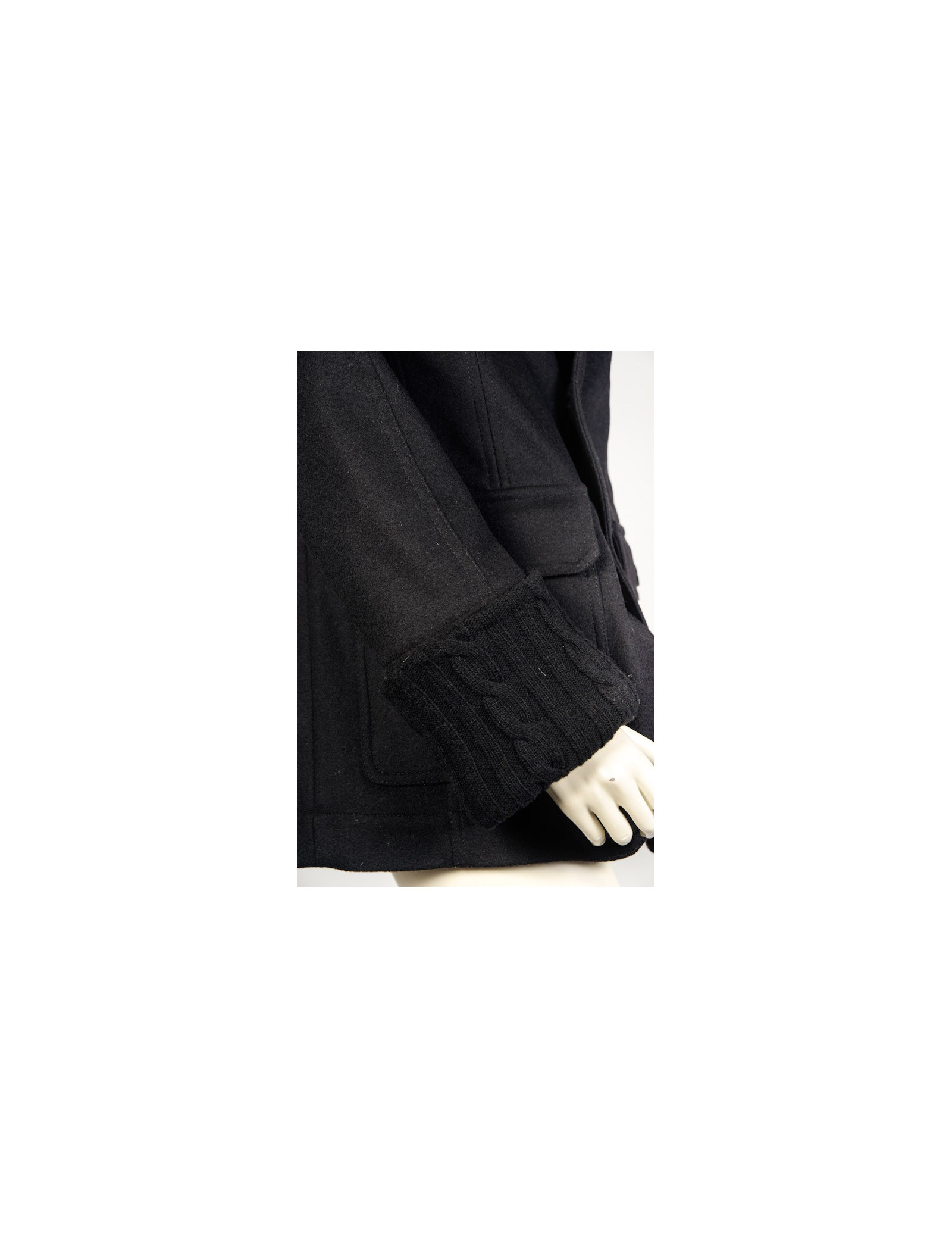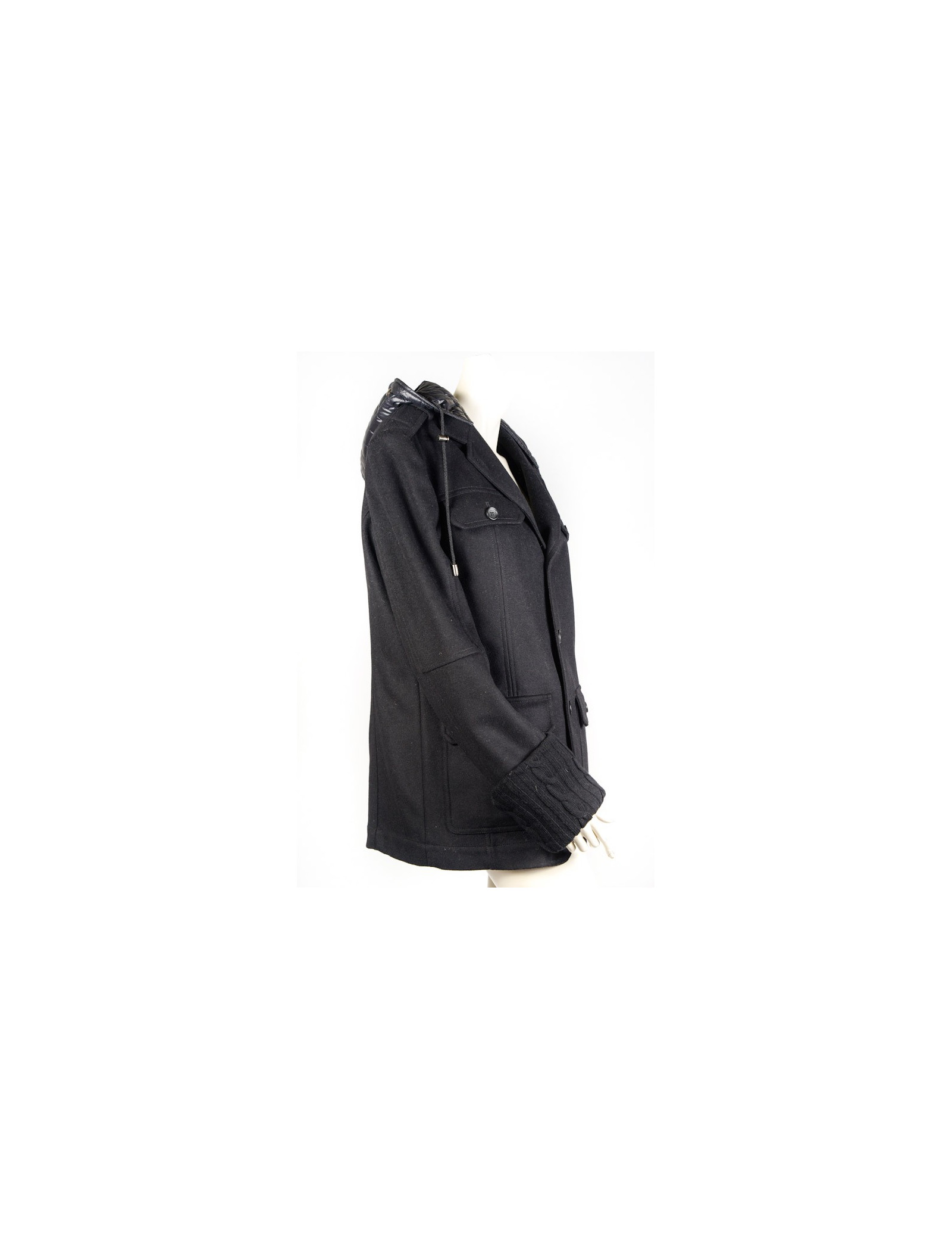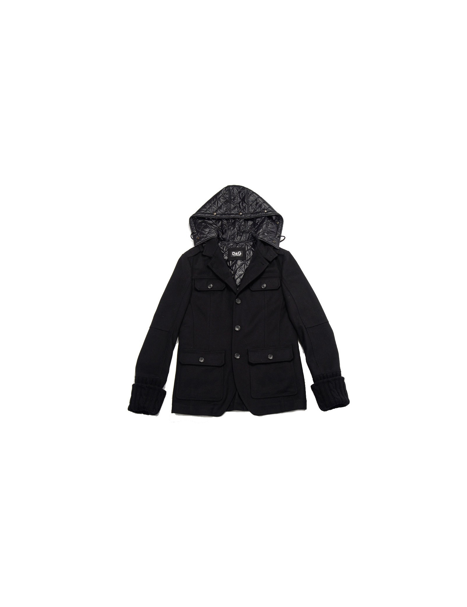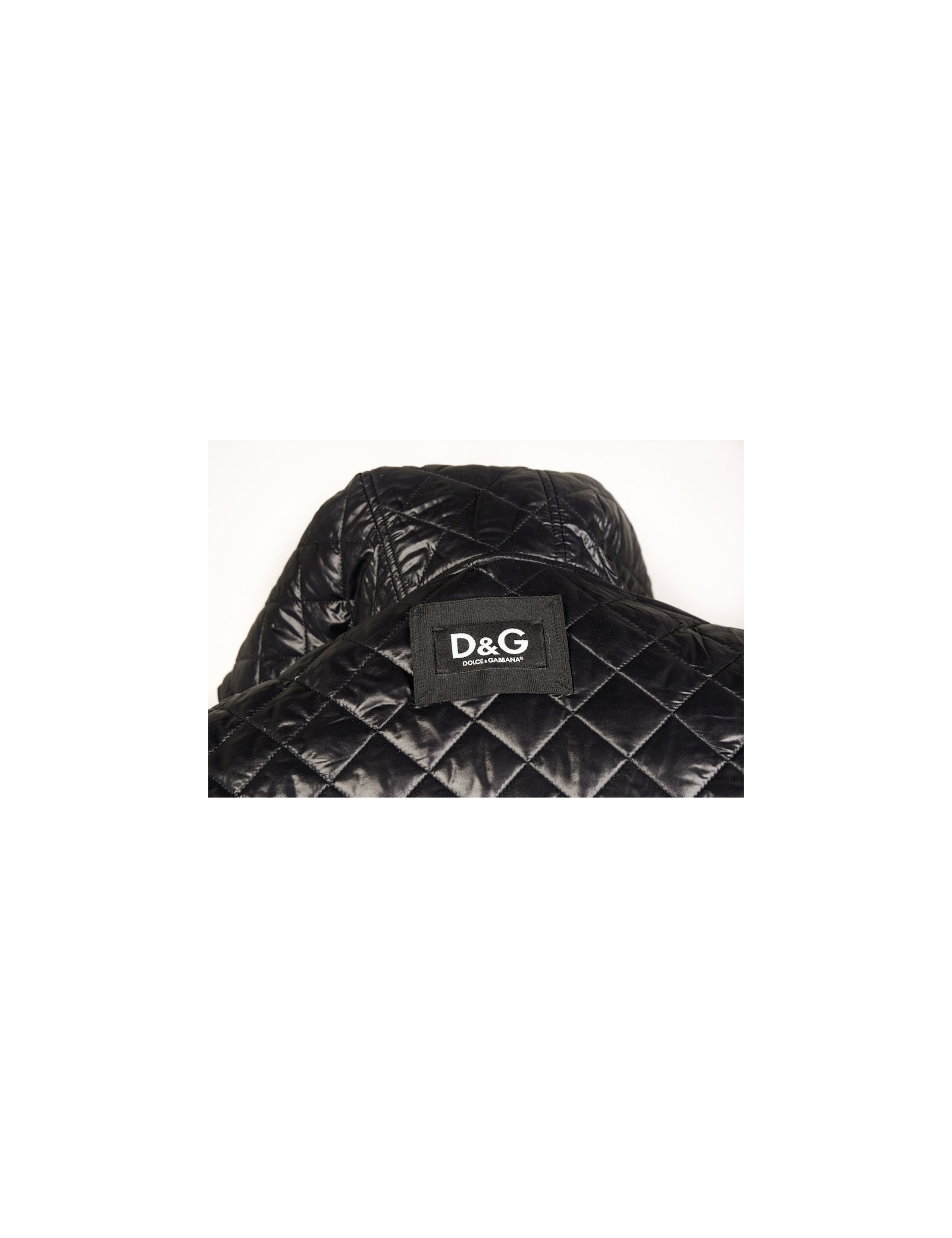 Parka Dolce&Gabbana noire composée d'une doublure avec capuche effet doudoune indépendante qui se rattache par une fermeture zippée. La parka comporte deux poches en bas et deux poches en haut, ainsi que deux poches intérieures, le bas des manches est en laine, il y a quatre boutons pour fermer la parka . C'est une taille 48 italien, équivaut à une taille 44 français. Très bon état.