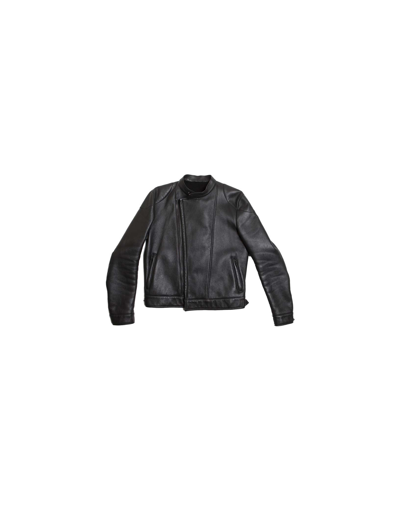 Blouson/biker Bottega Veneta en cuir d'agneau noir, peau retournée. Taille 50 it. Fermeture centrale ainsi que les 2 poches sont zippées. En très bon état, très peu porté.