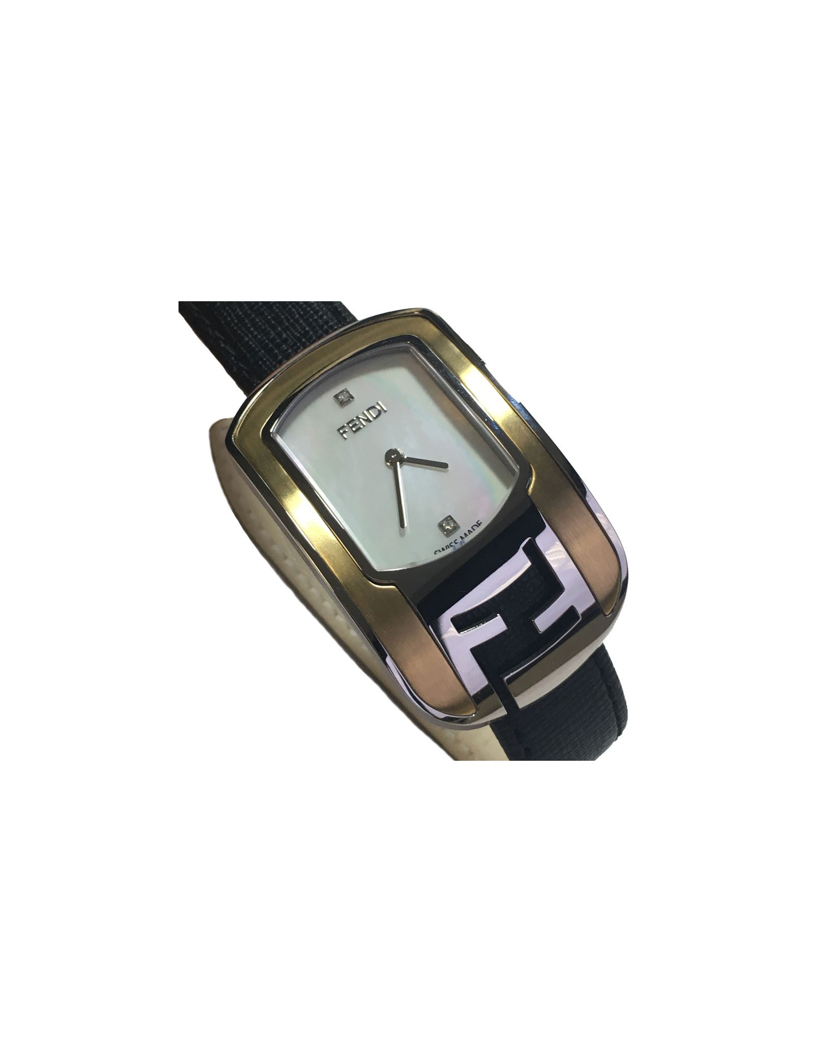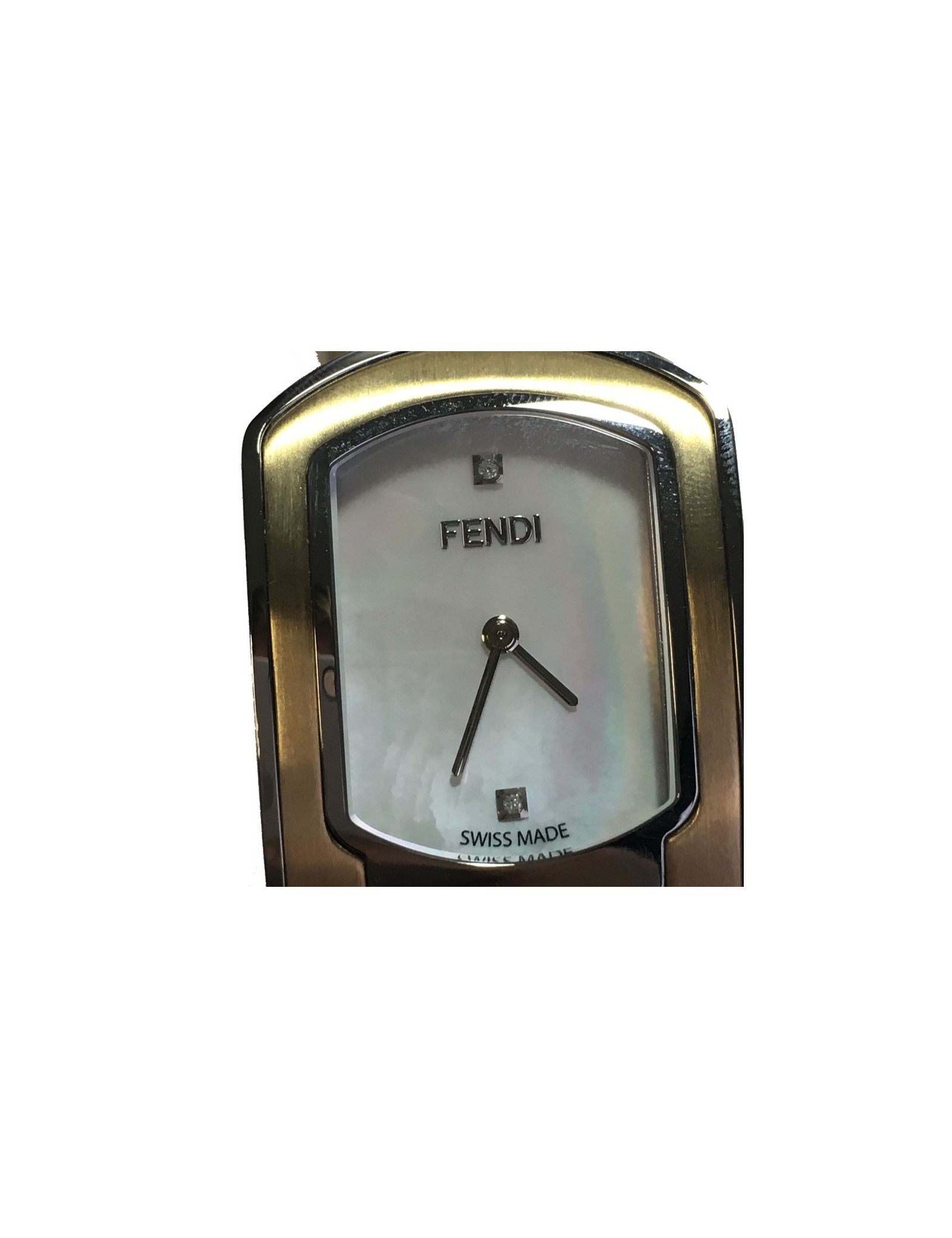 Montre FENDI, collection caméléon. Boîtier en acier couleur or jaune, empiècement en acier argenté.