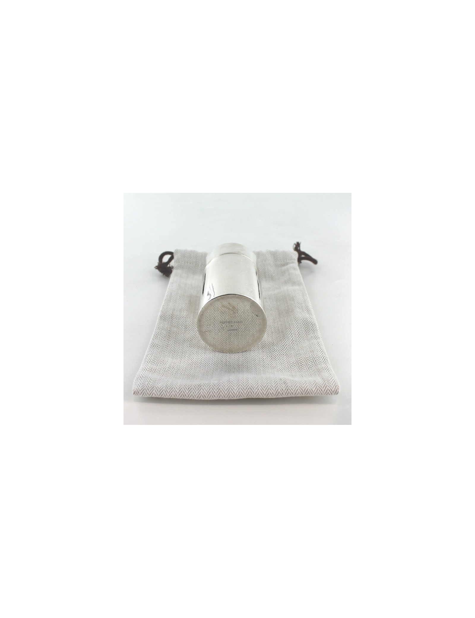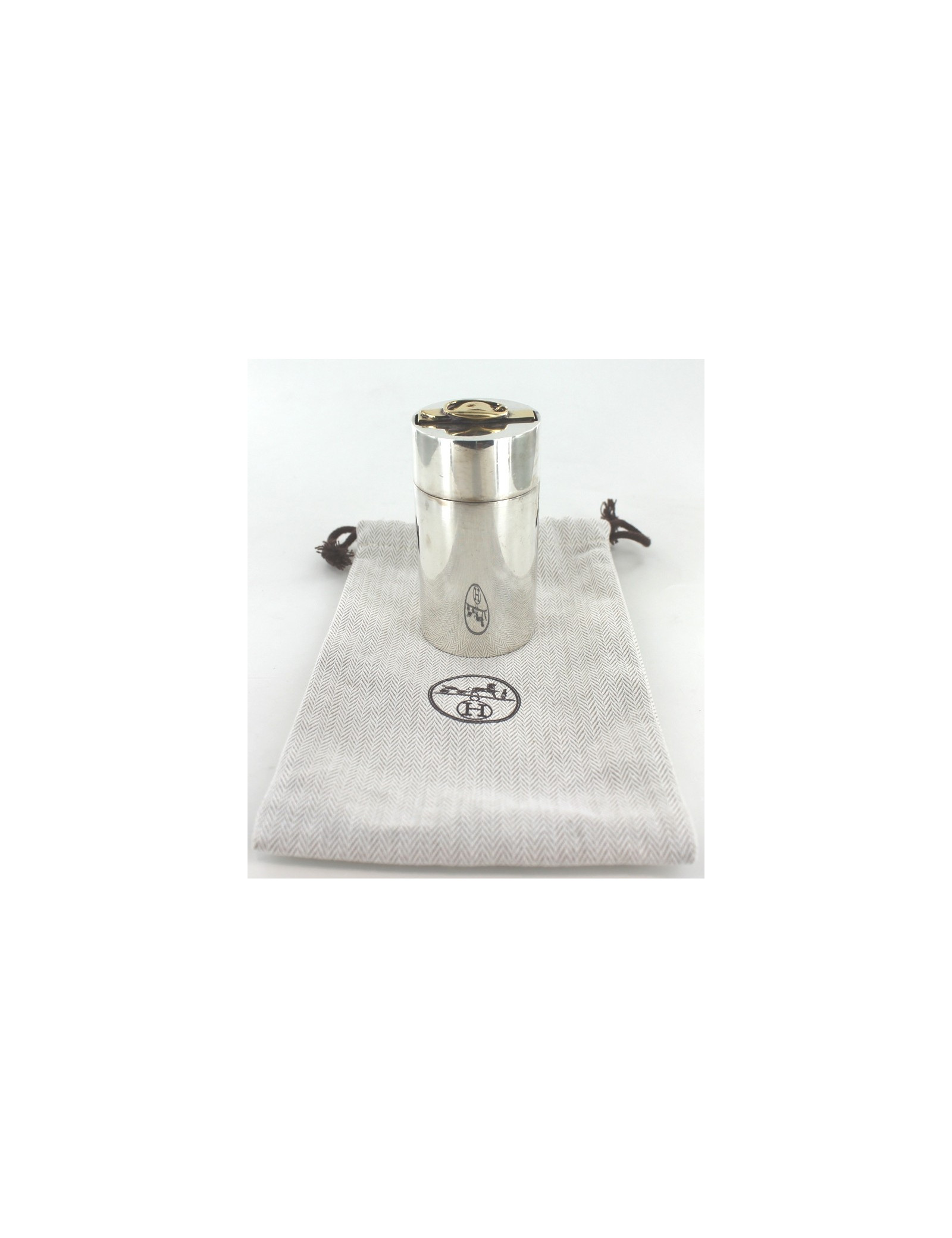 Briquet HERMES en argent massif, vintage. Pièce poinçonnée. Sur le chapeau, une boucle en métal doré, symbole de la maison. Pièce de collection. Rayures et usures. Made in France. Vendu avec son dustbag.