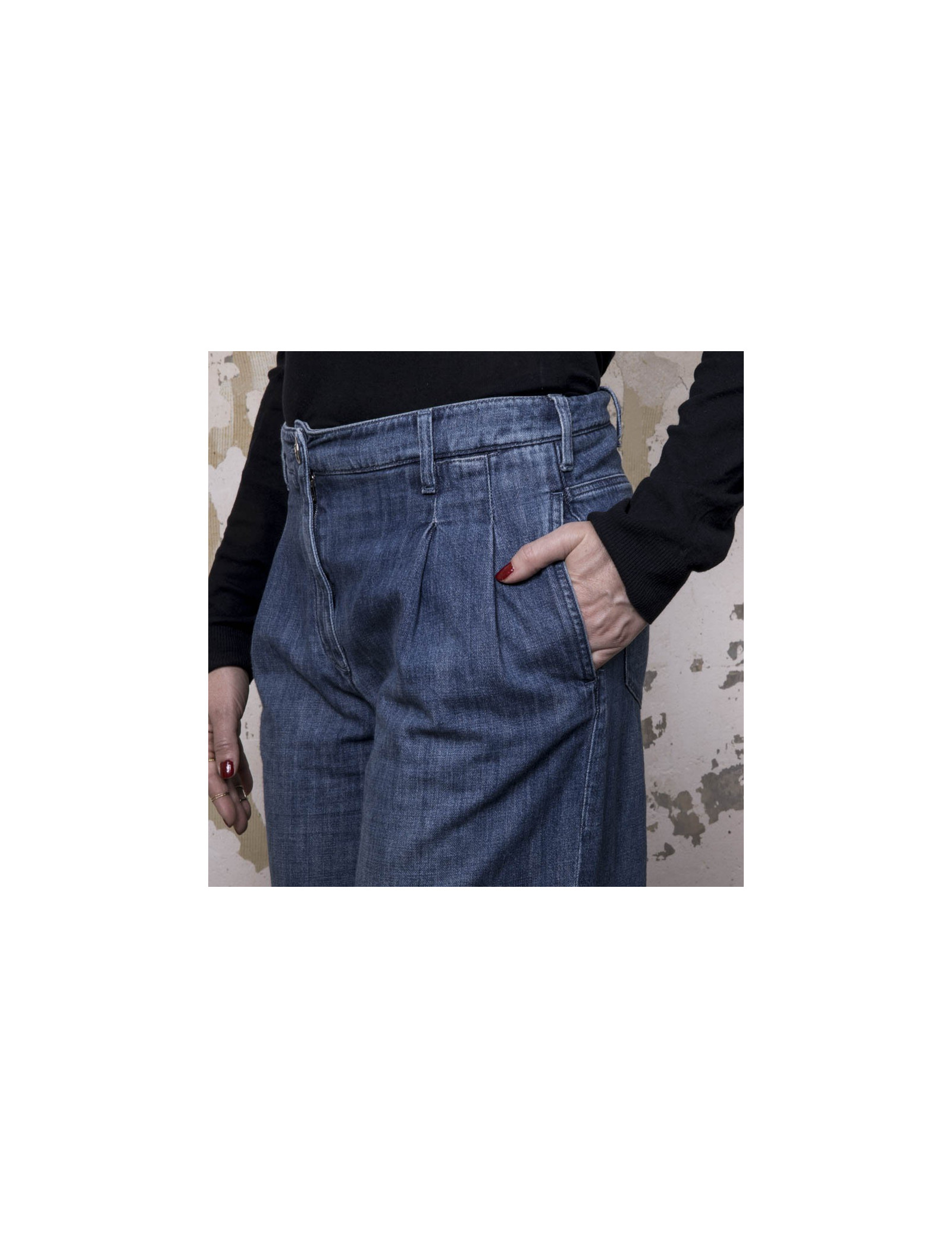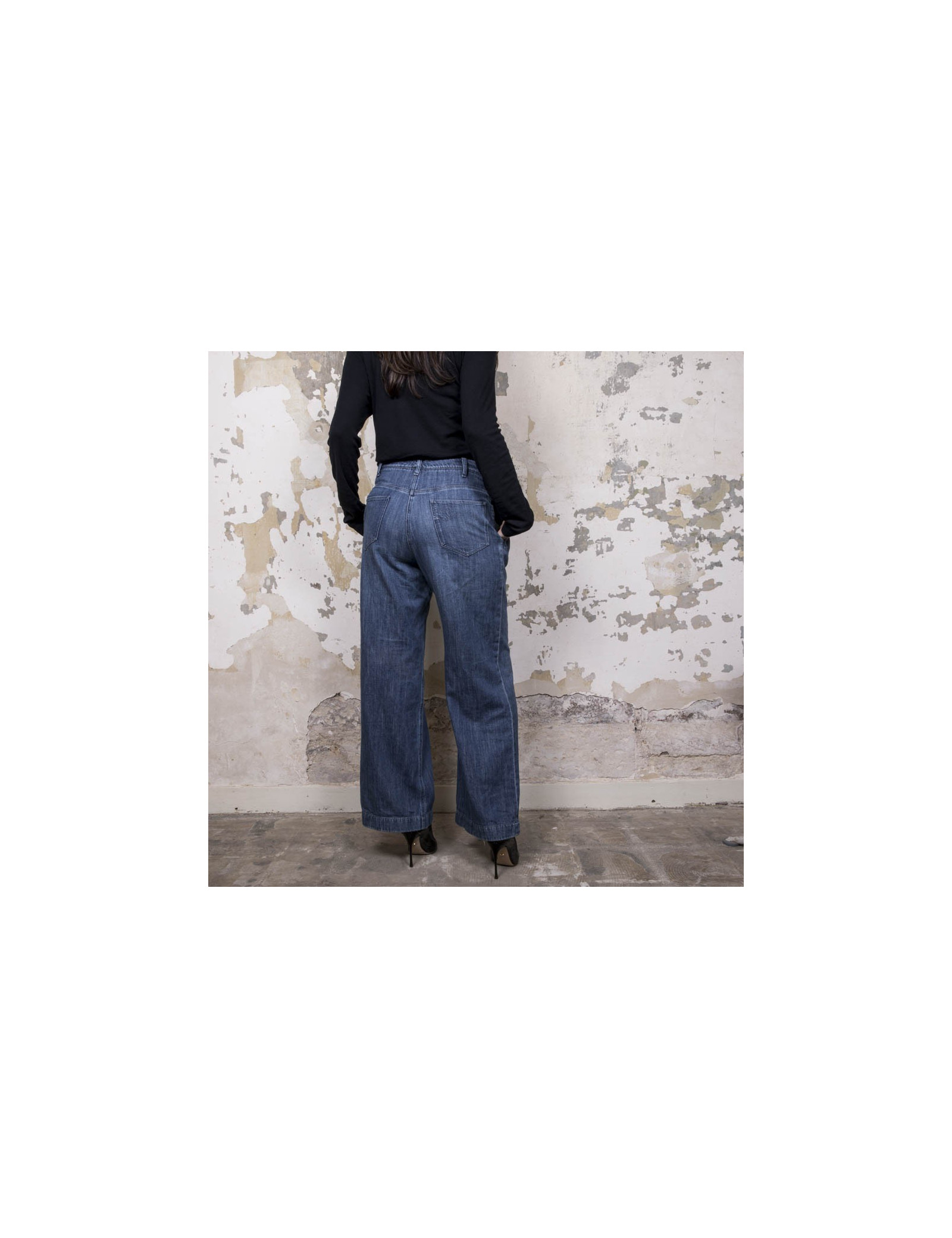 Dimensions à plat : largeur de la taille 41,5 cm, largeur des hanches 53 cm, hauteur à partir de la taille 102 cm, hauteur à partir de l'entre-jambes 75,5 cm, ampleur du bas 57,5 cm.
