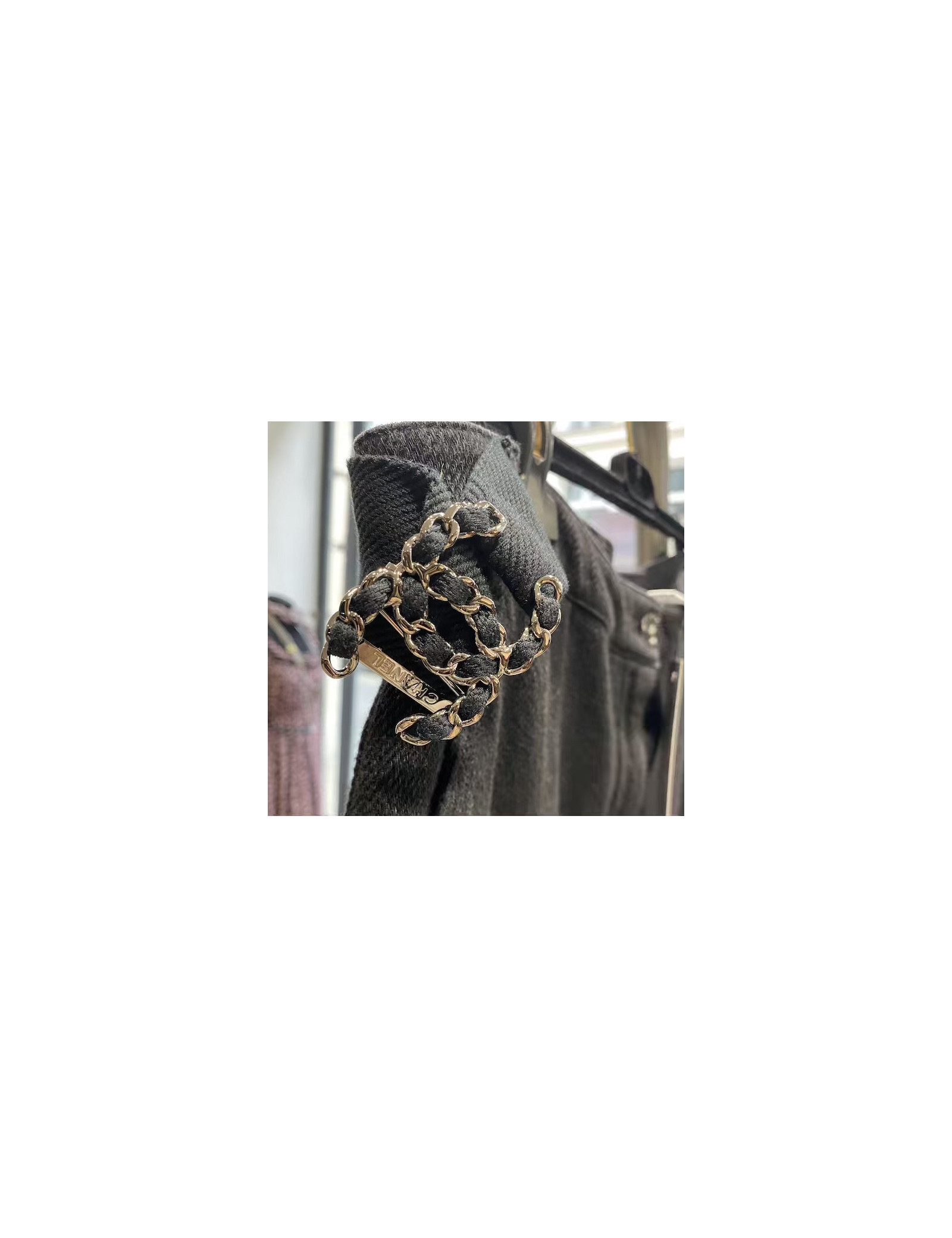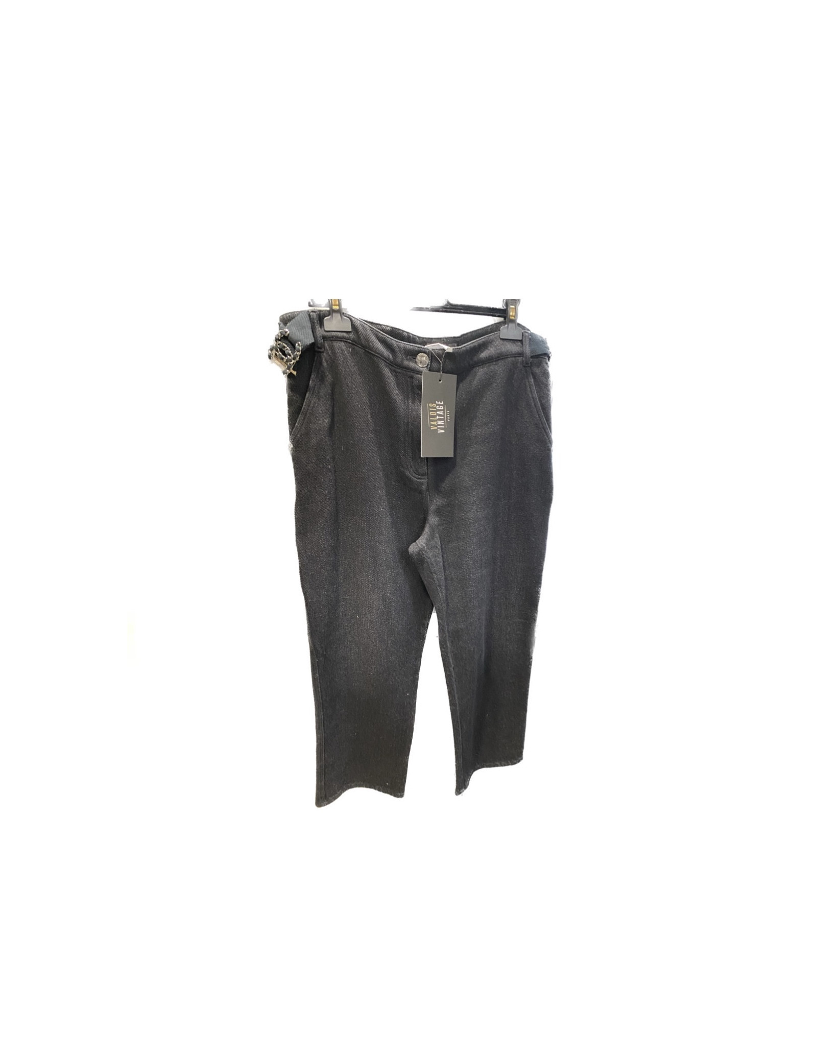 Nouveau Derniers articles en stock PANTALONS-SHORTS jean CHANEL denim CC CHANEL 39773 1 400,00 € Jean CHANEL denim CC bleu Condition : très bon étatPays de fabrication : ItalieTaille : 38 frMatière : denimCouleur : bleuDimensions à plat : taille : 38 cm, longueur totale jambe 98 cm, longueur entre-jambe jusqu'en bas 73 cmBijouterie : métal argentDétails : jean fermé par un bouton rond siglé CC complété d'une braguette zippée. Il a deux poches à... Ajouter au panier