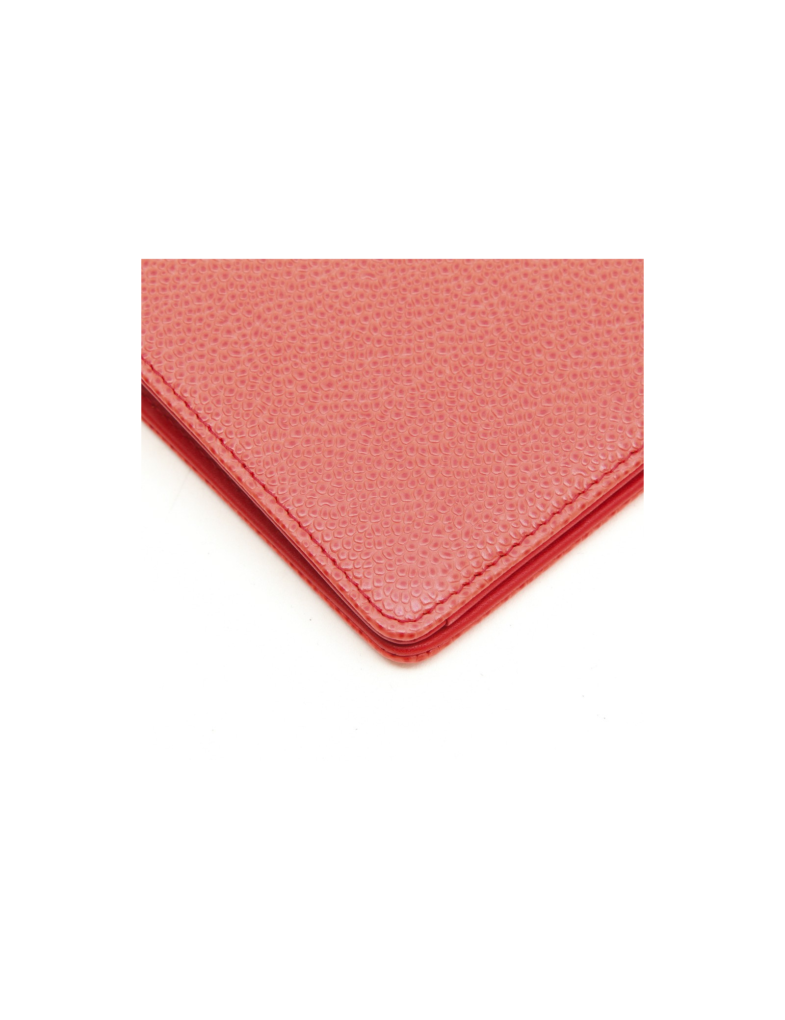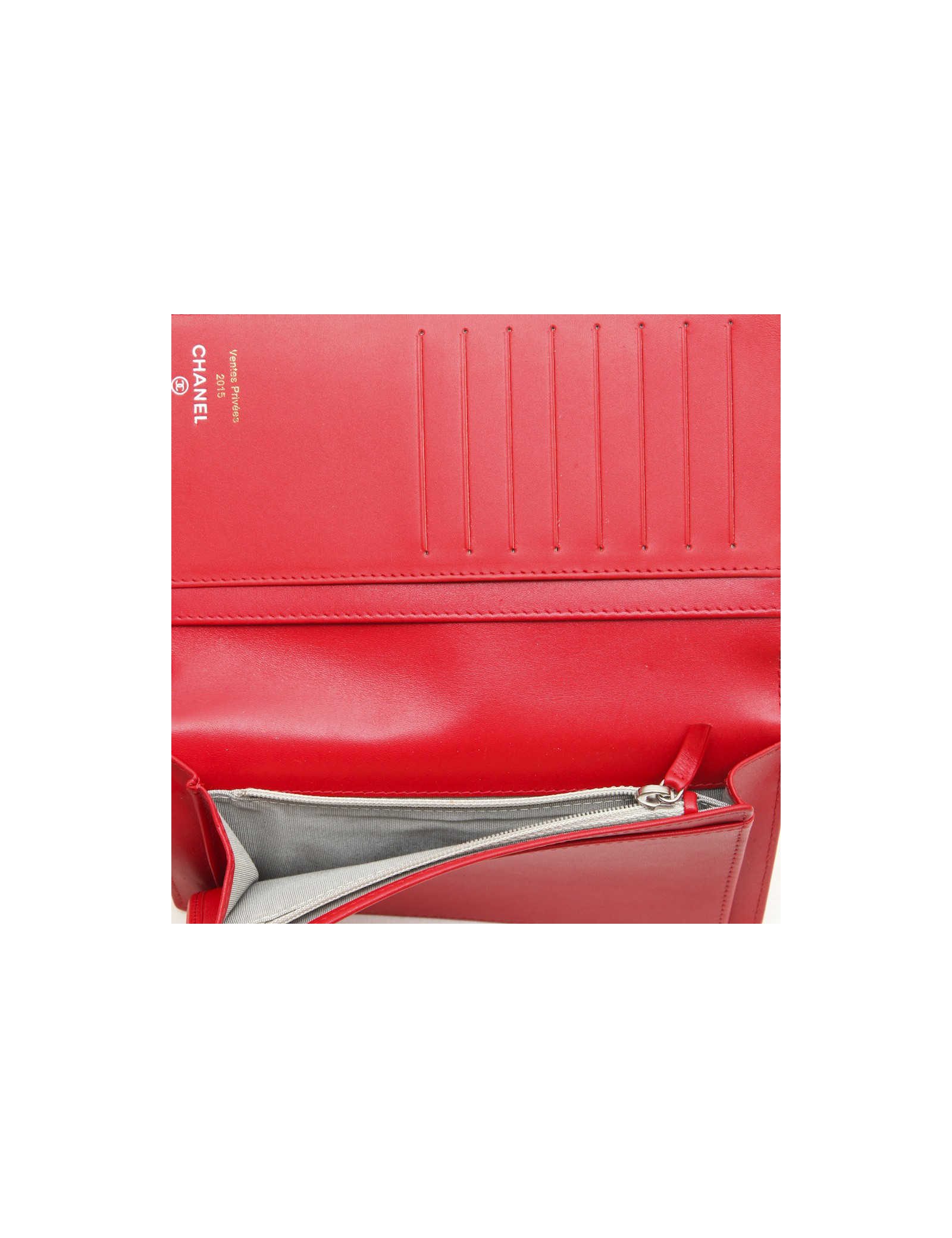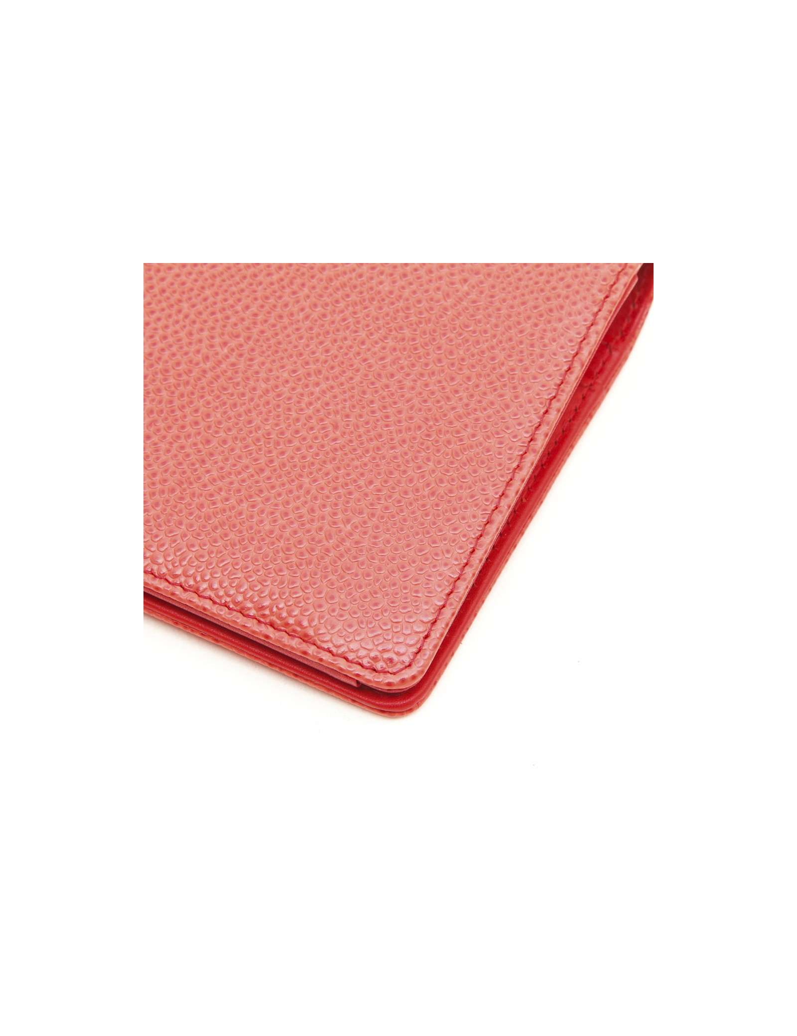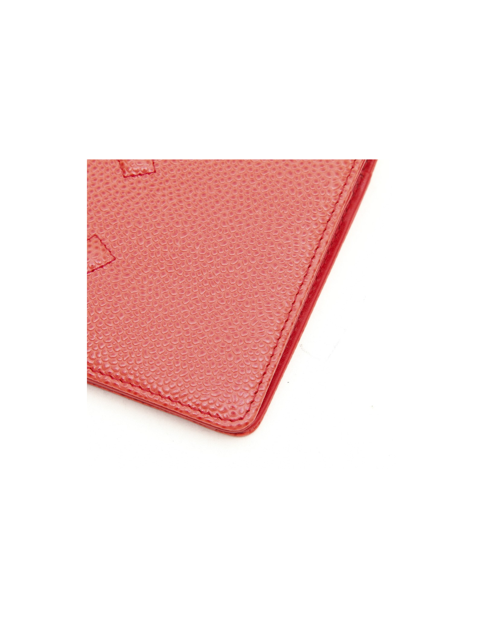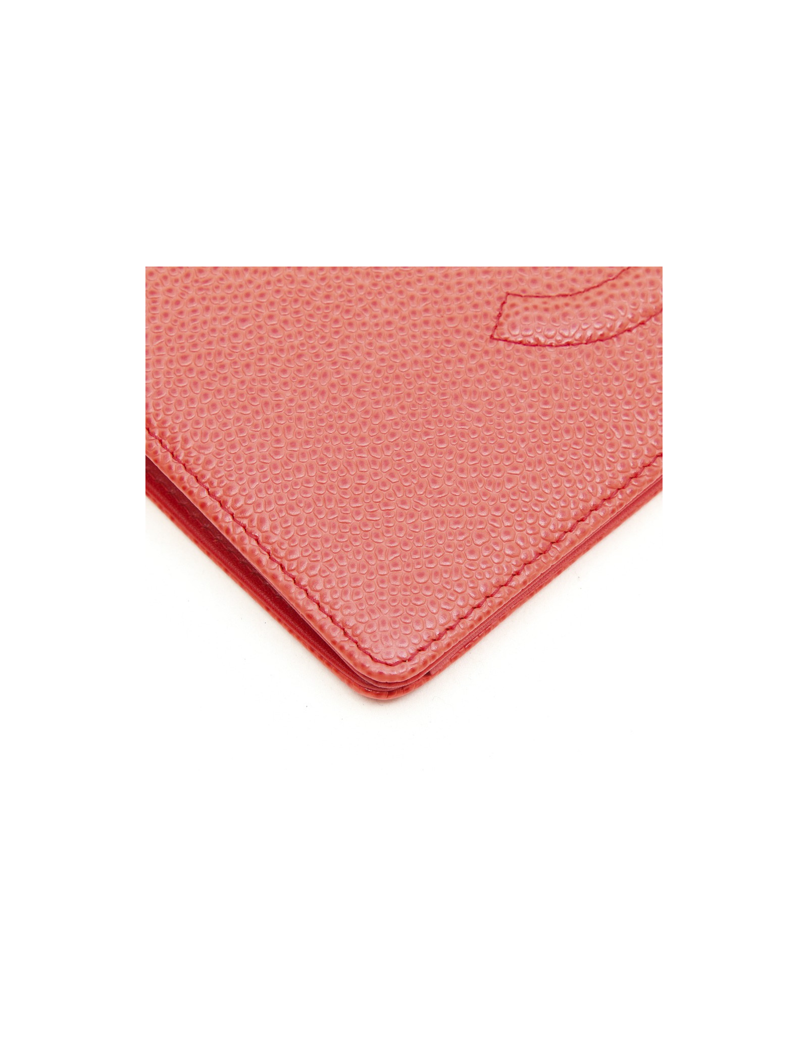 Portefeuille Chanel en cuir grainé de couleur corail. Ventes privées 2015. A l'intérieur, 8 fentes à cartes, une poche zippée, 4 soufflets à billet ou autres documents. Hologramme : 1874... pas de carte d'authenticité. Made in Spain.