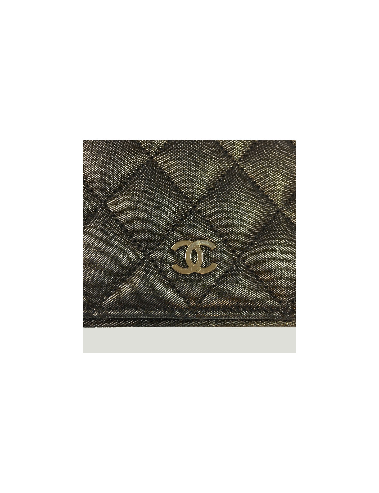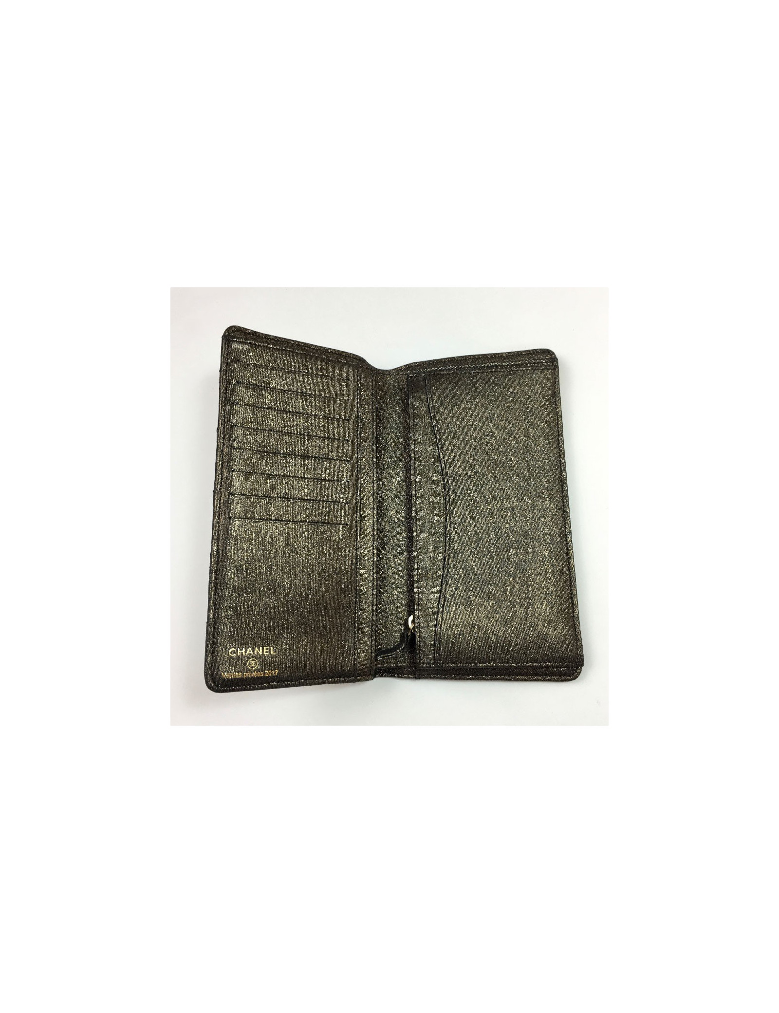Une jolie idée de cadeau. Portefeuille Chanel en toile mordoré, CC en métal doré. Portefeuille issu des ventes privées de 2017. Il a 8 fentes cartes bancaires, un espace porte-monnaie, un espace pour billets et plusieurs autres fentes.