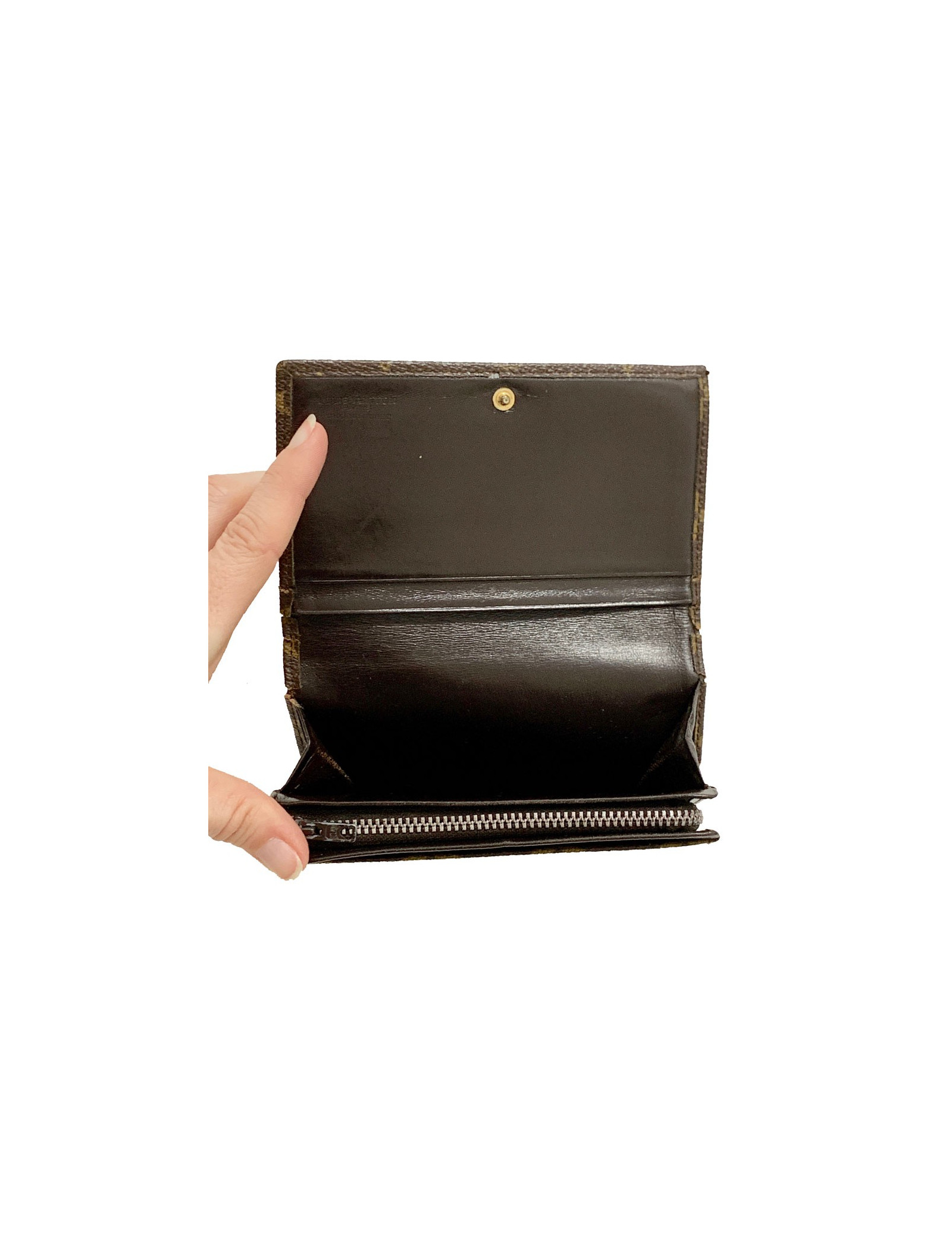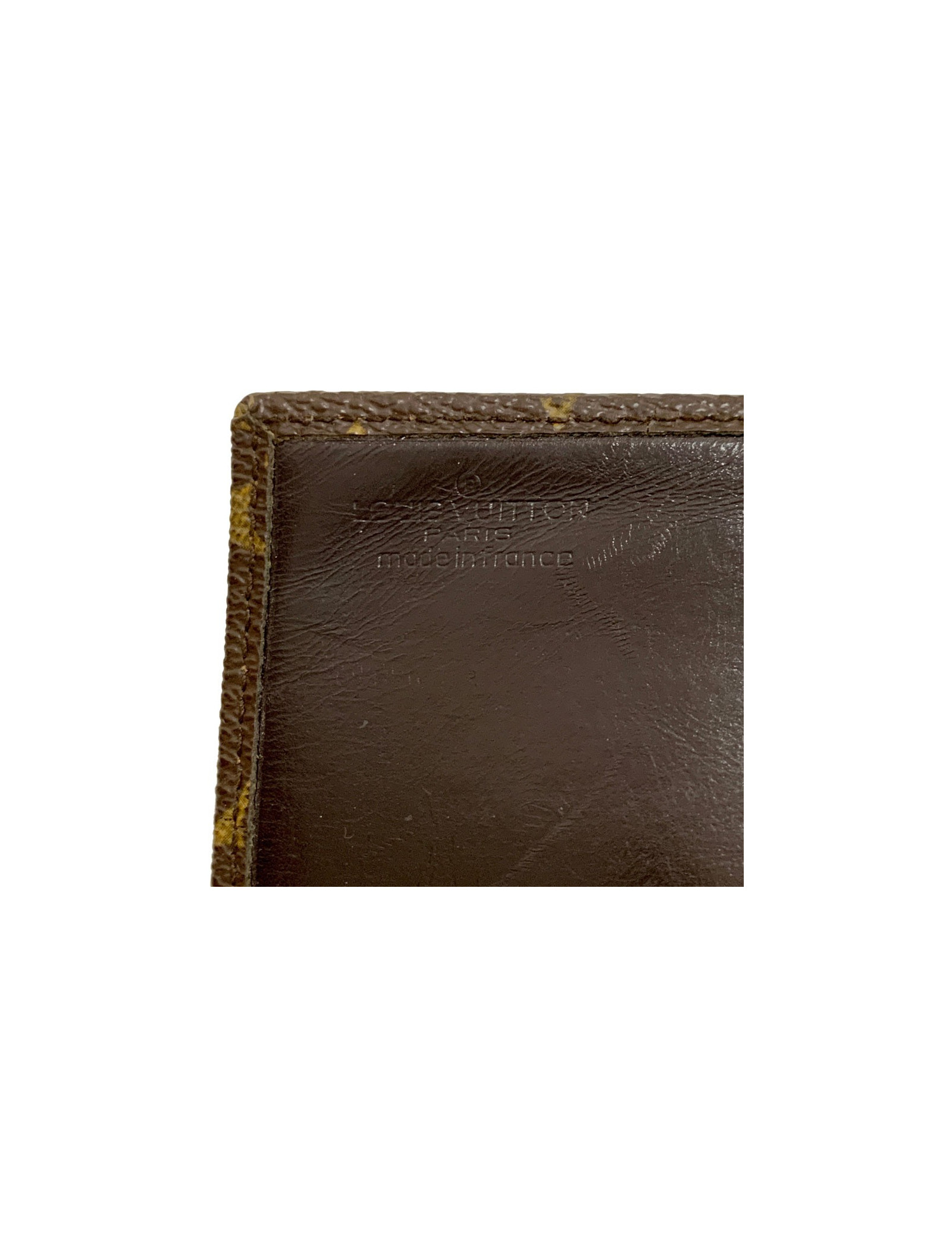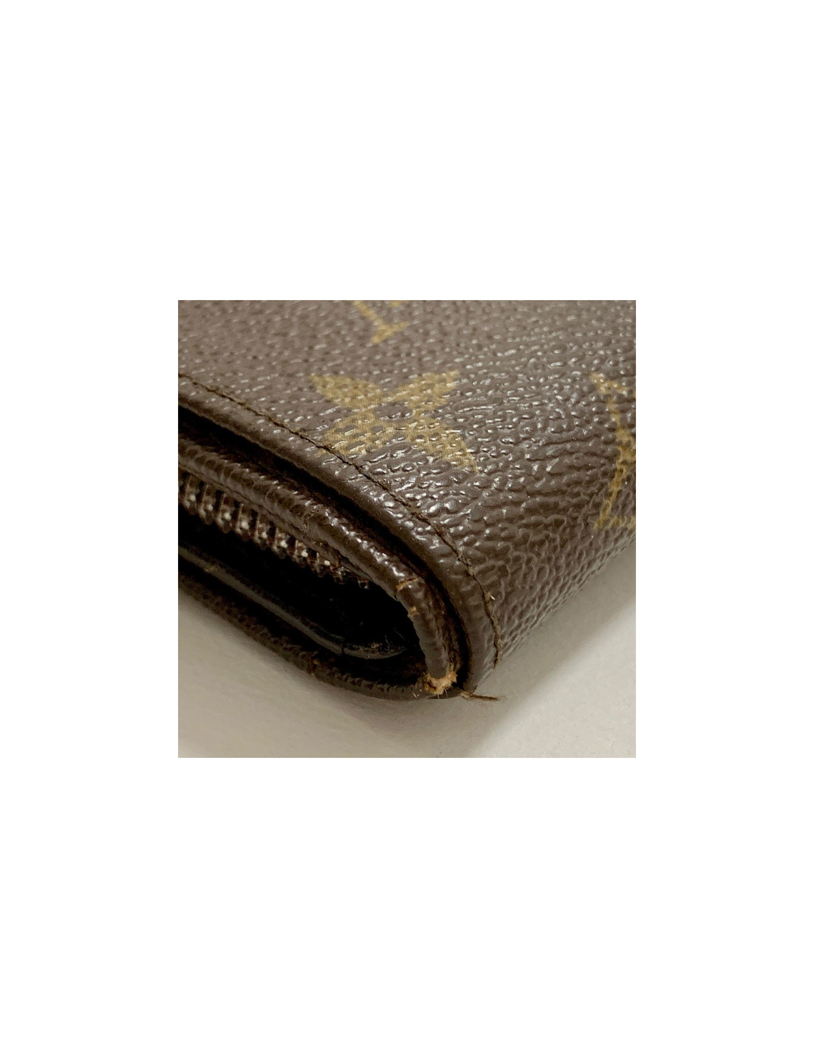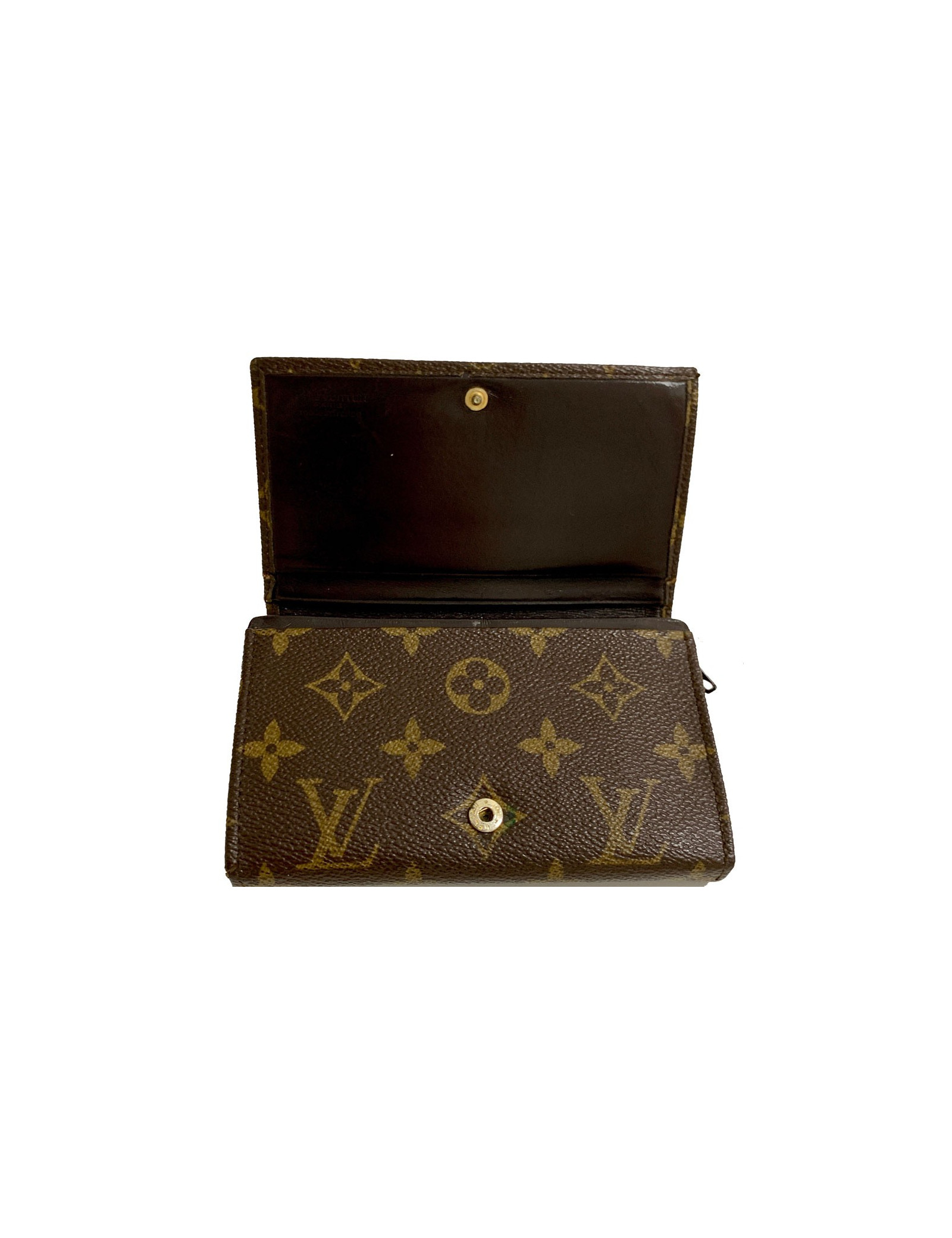 Portefeuille en toile monogram marron de la Maison LOUIS VUITTON. C'est un accessoire vintage. L'intérieur se compose d'un porte-monnaie zippé, 1 soufflet à billet, 1 soufflet à papiers, 2 fentes à cartes et autres.