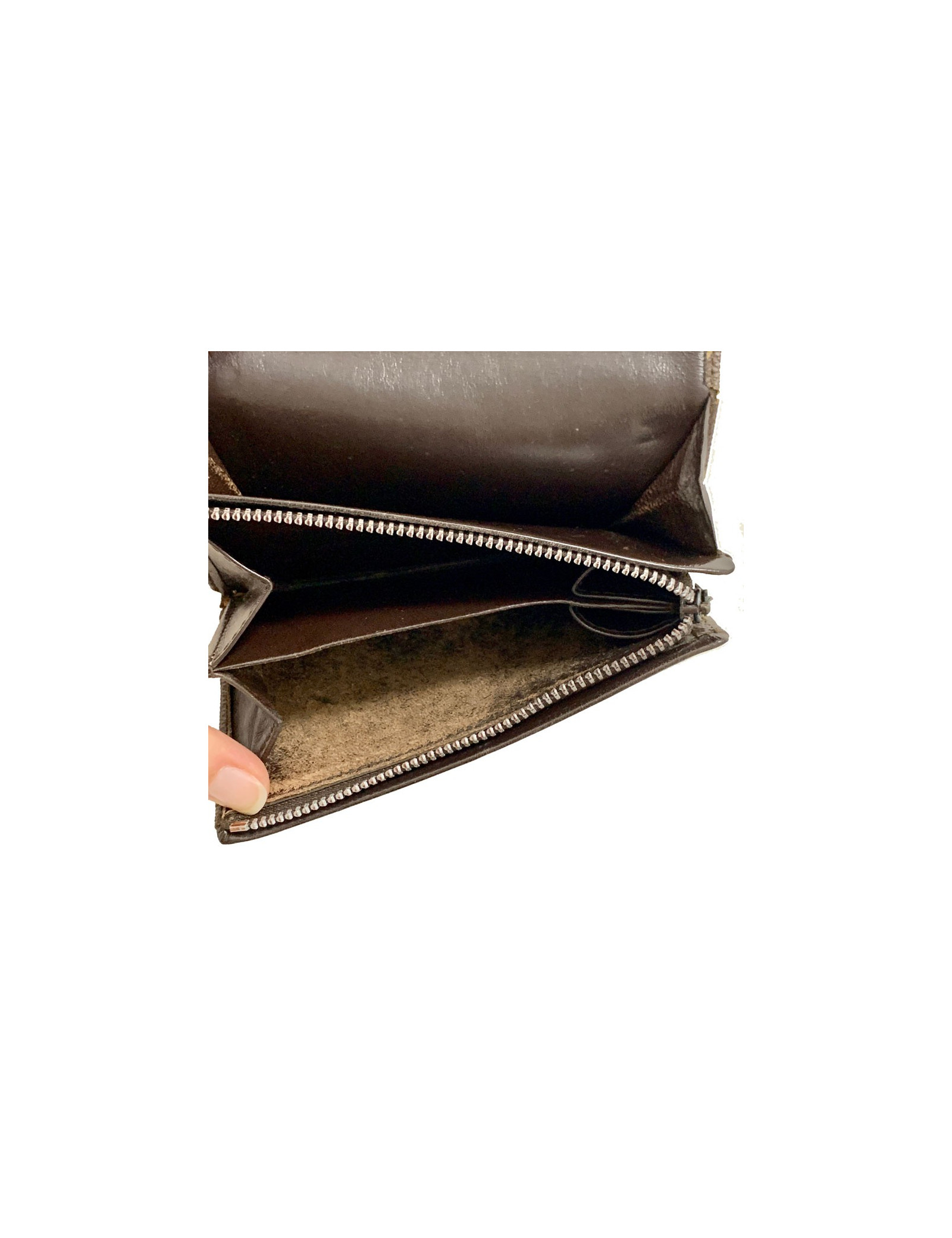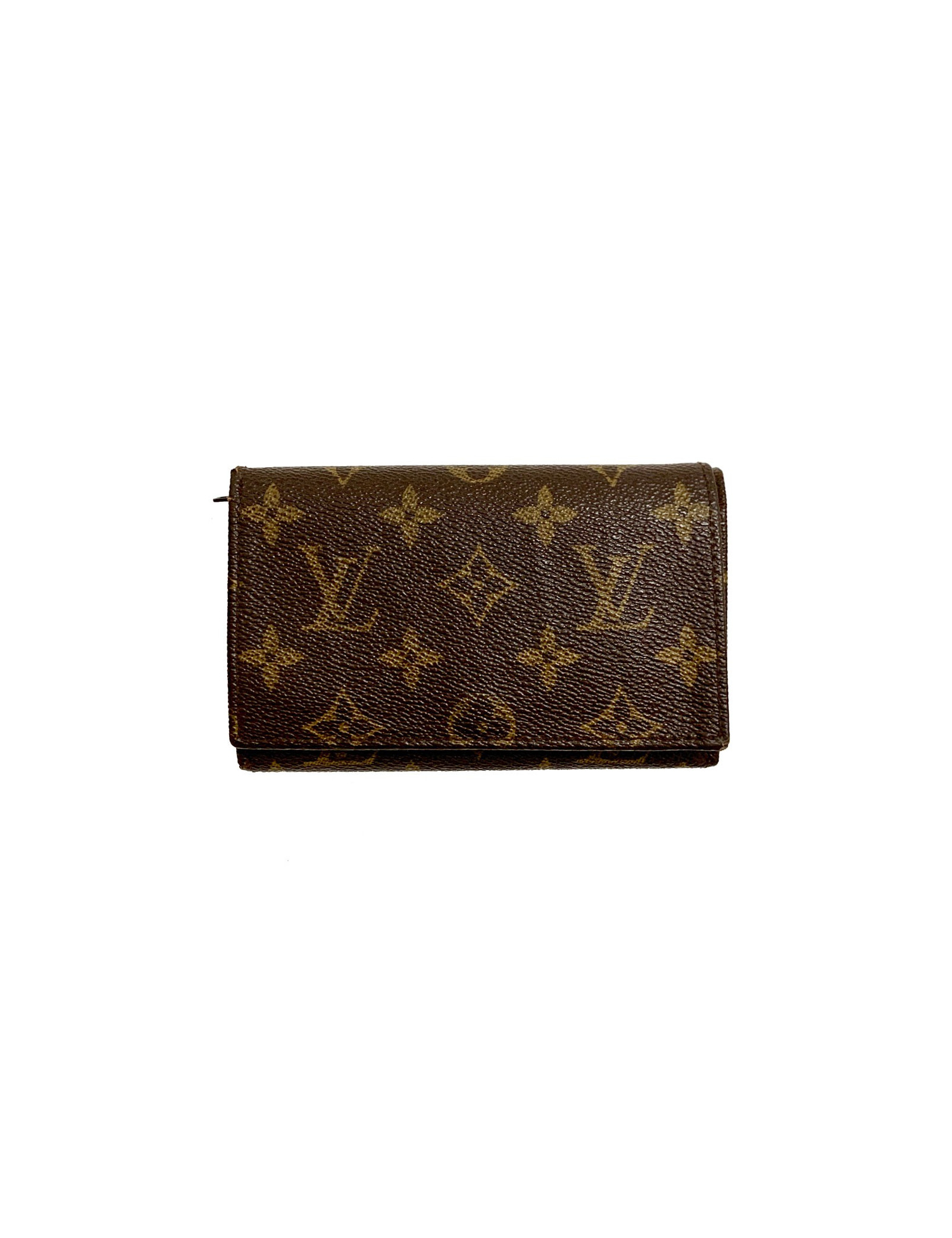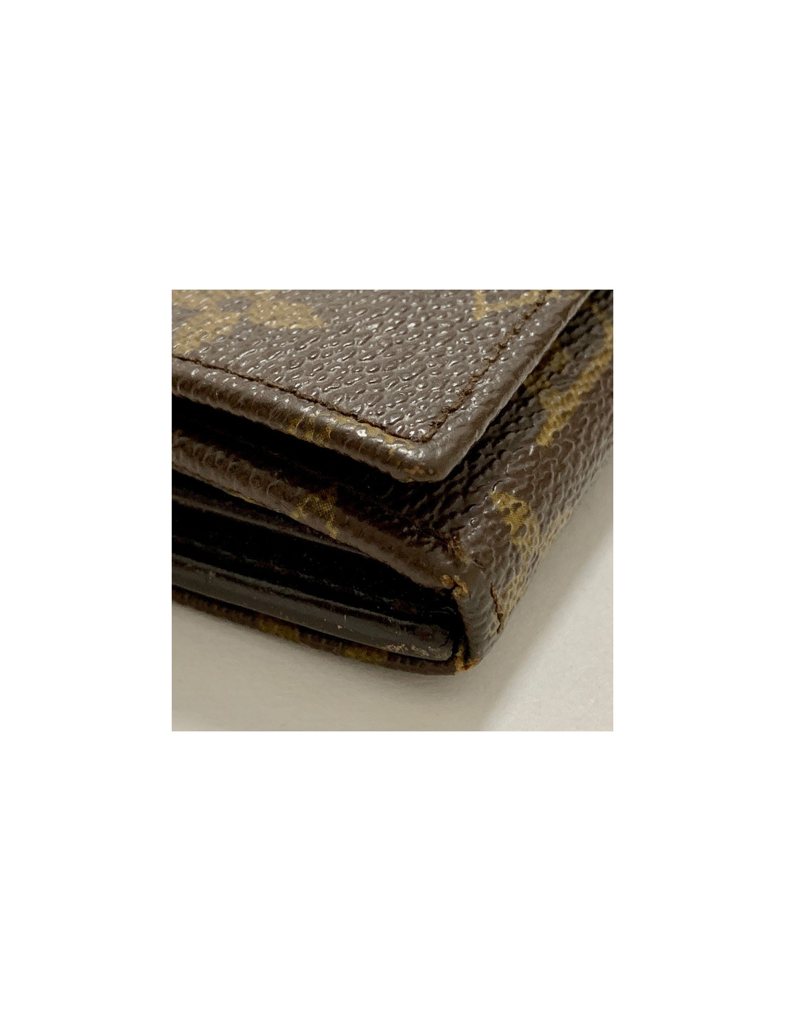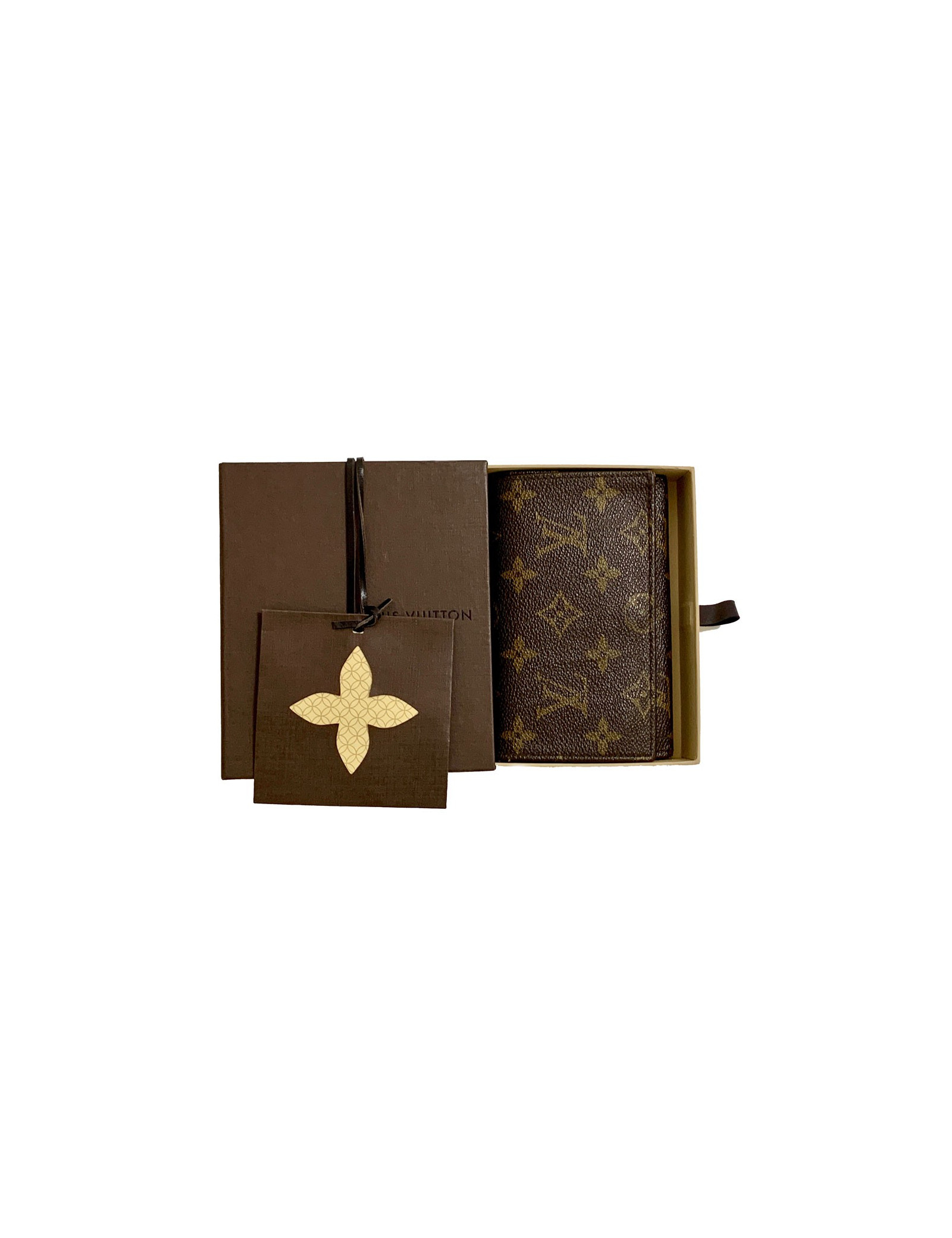 Portefeuille en toile monogram marron de la Maison LOUIS VUITTON. C'est un accessoire vintage. L'intérieur se compose d'un porte-monnaie zippé, 1 soufflet à billet, 1 soufflet à papiers, 2 fentes à cartes et autres.