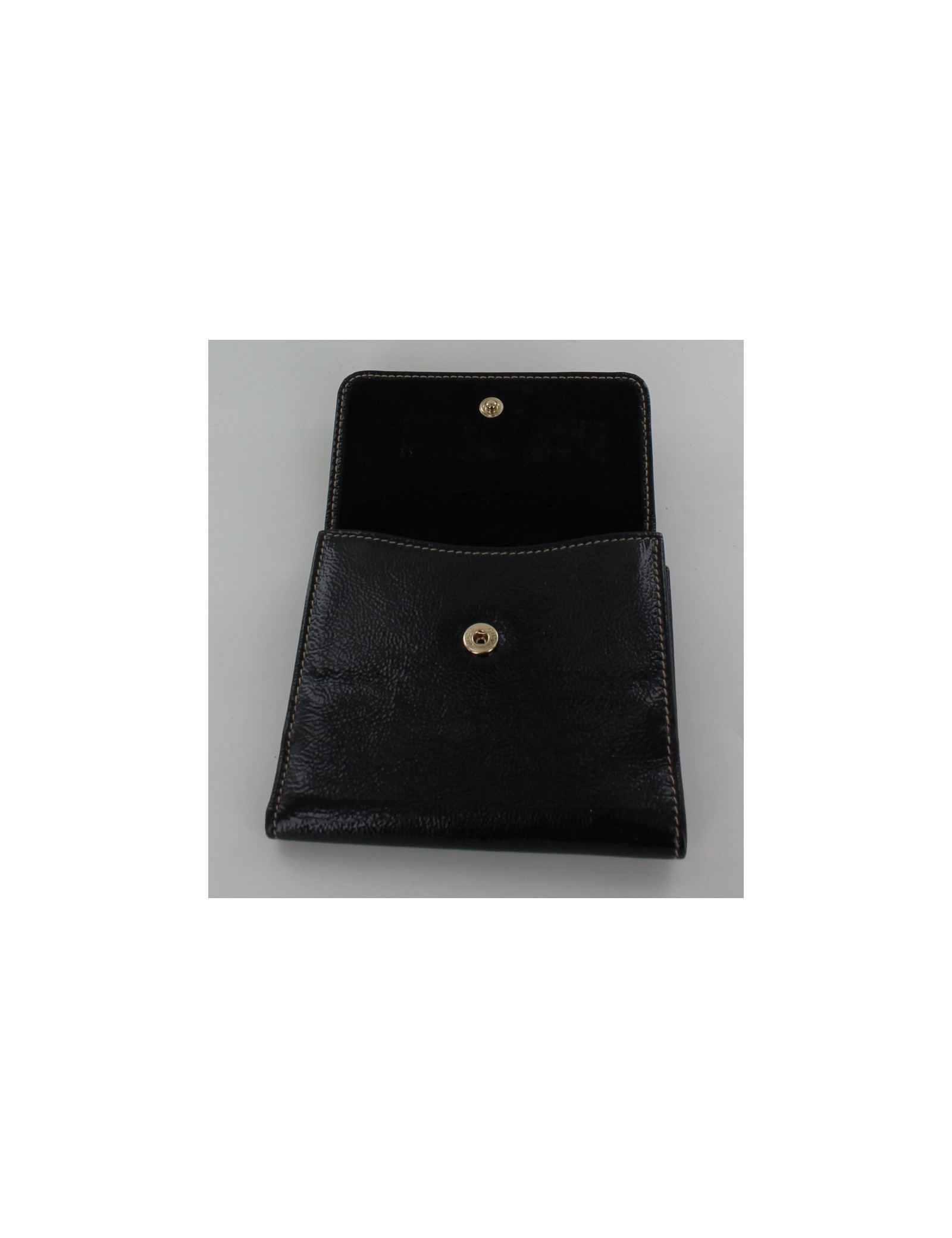 Porte monnaie Gucci, assorti au sac vendu sur notre site. il est en toile vernie noire et en très bon état.