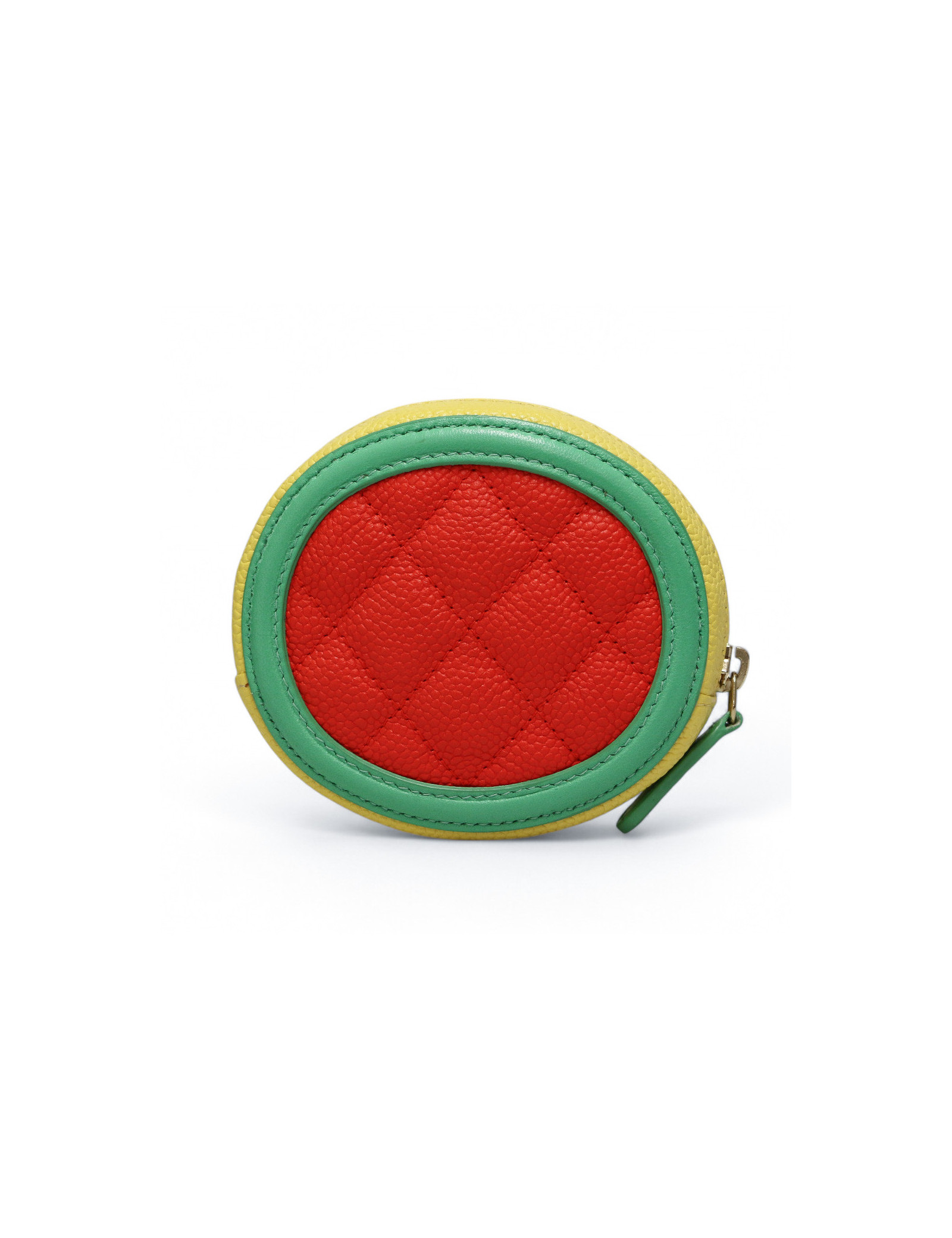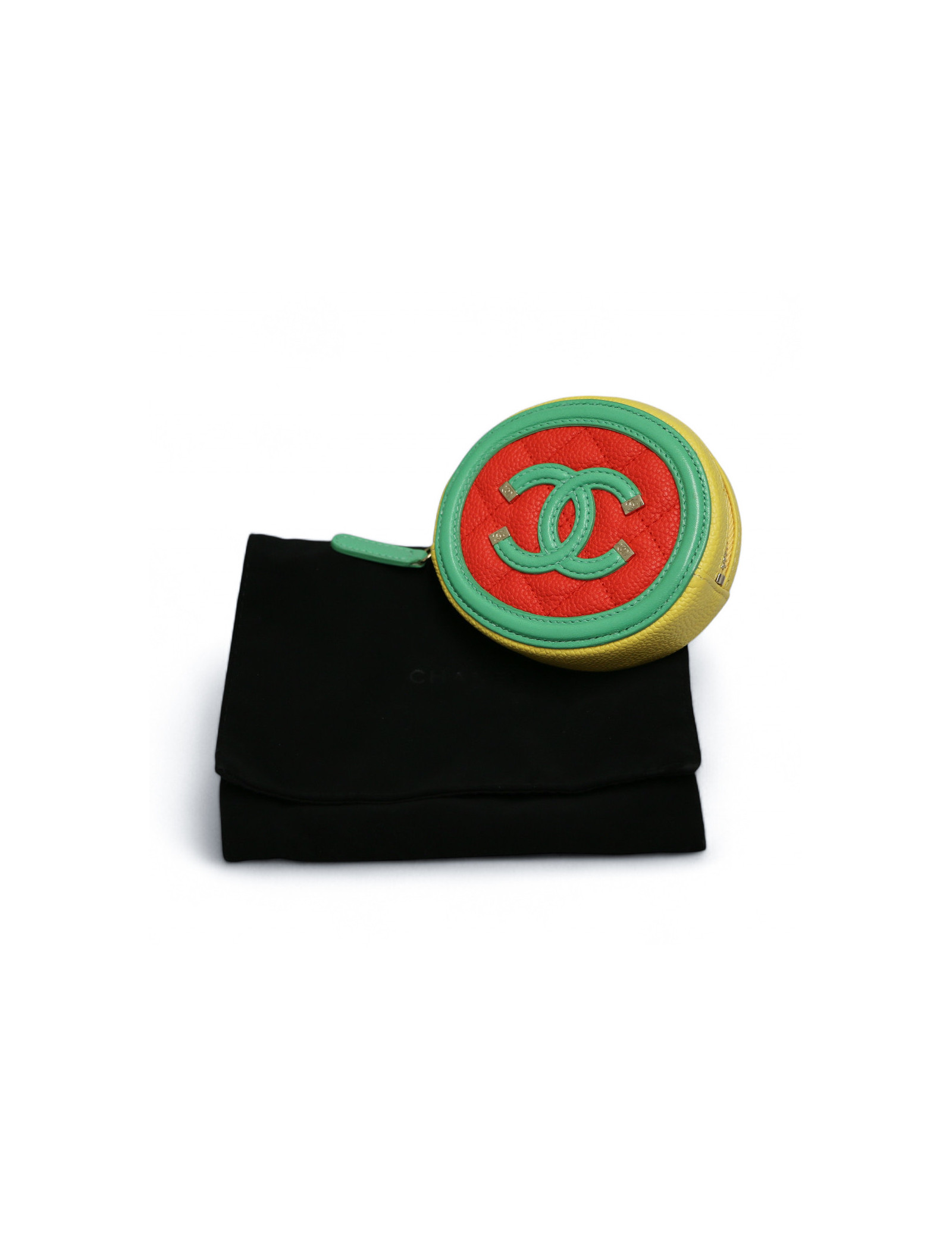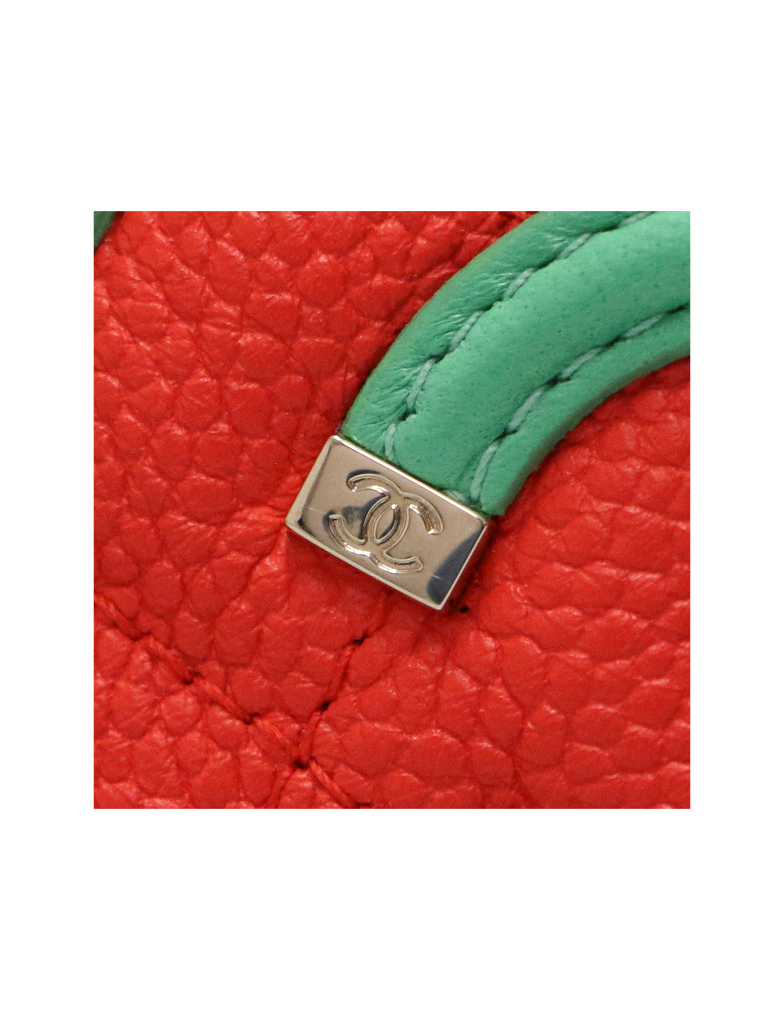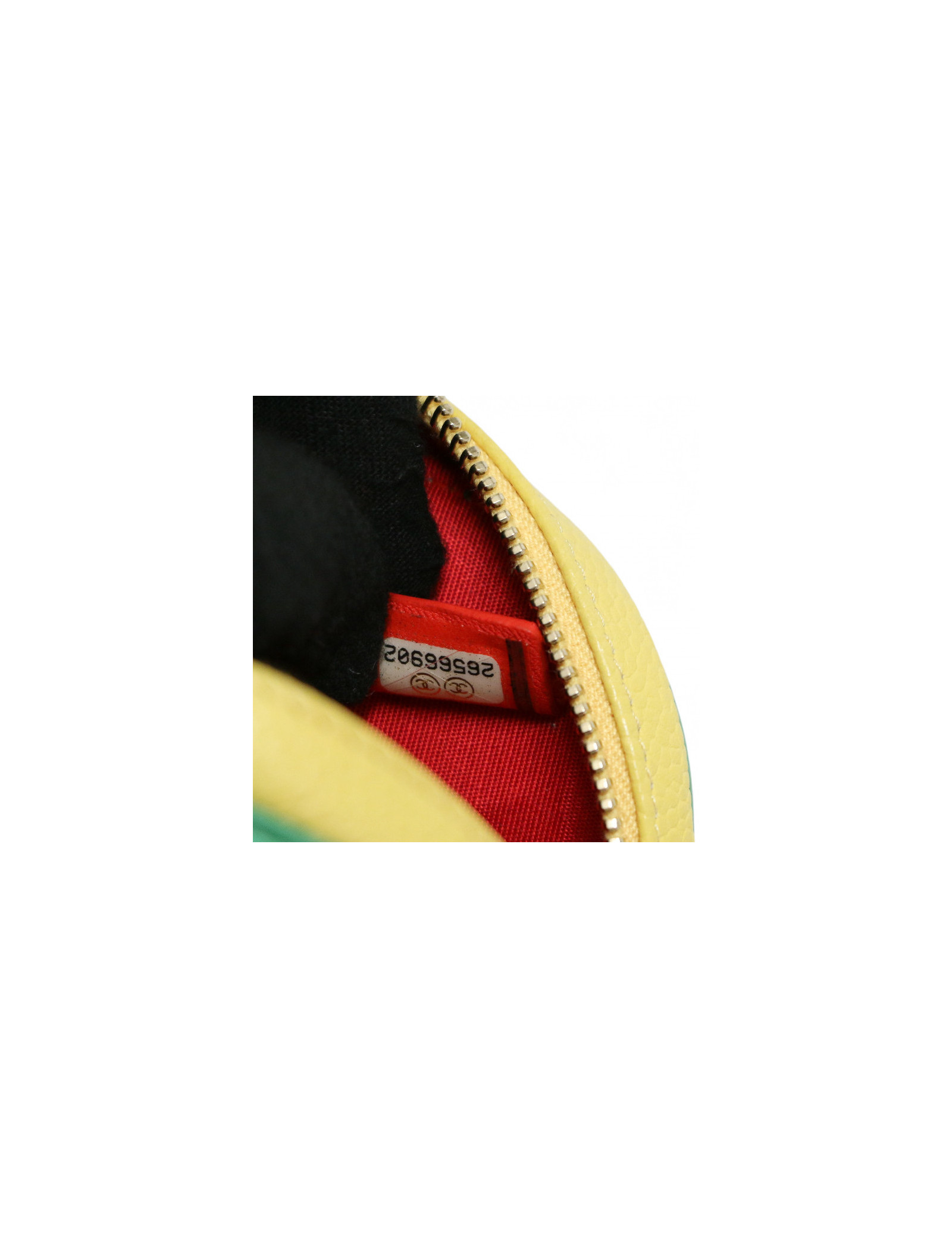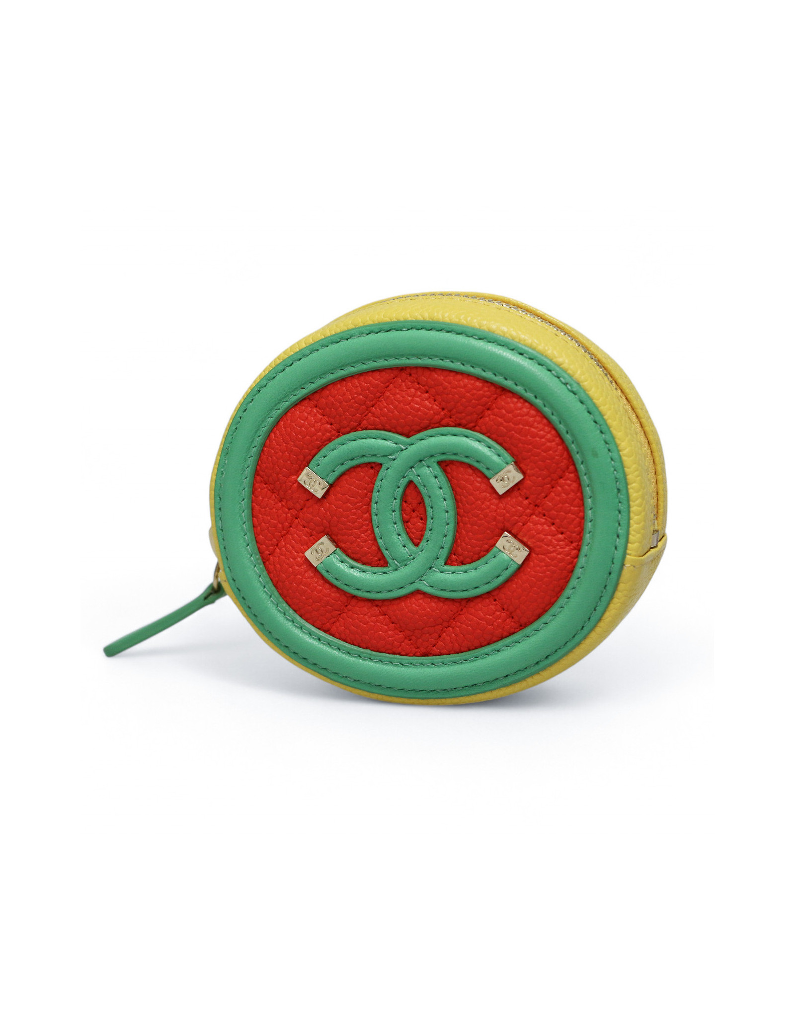 Détails : porte monnaie Chanel tricolore, logo CC vert en cuir lisse. Fermeture zippée