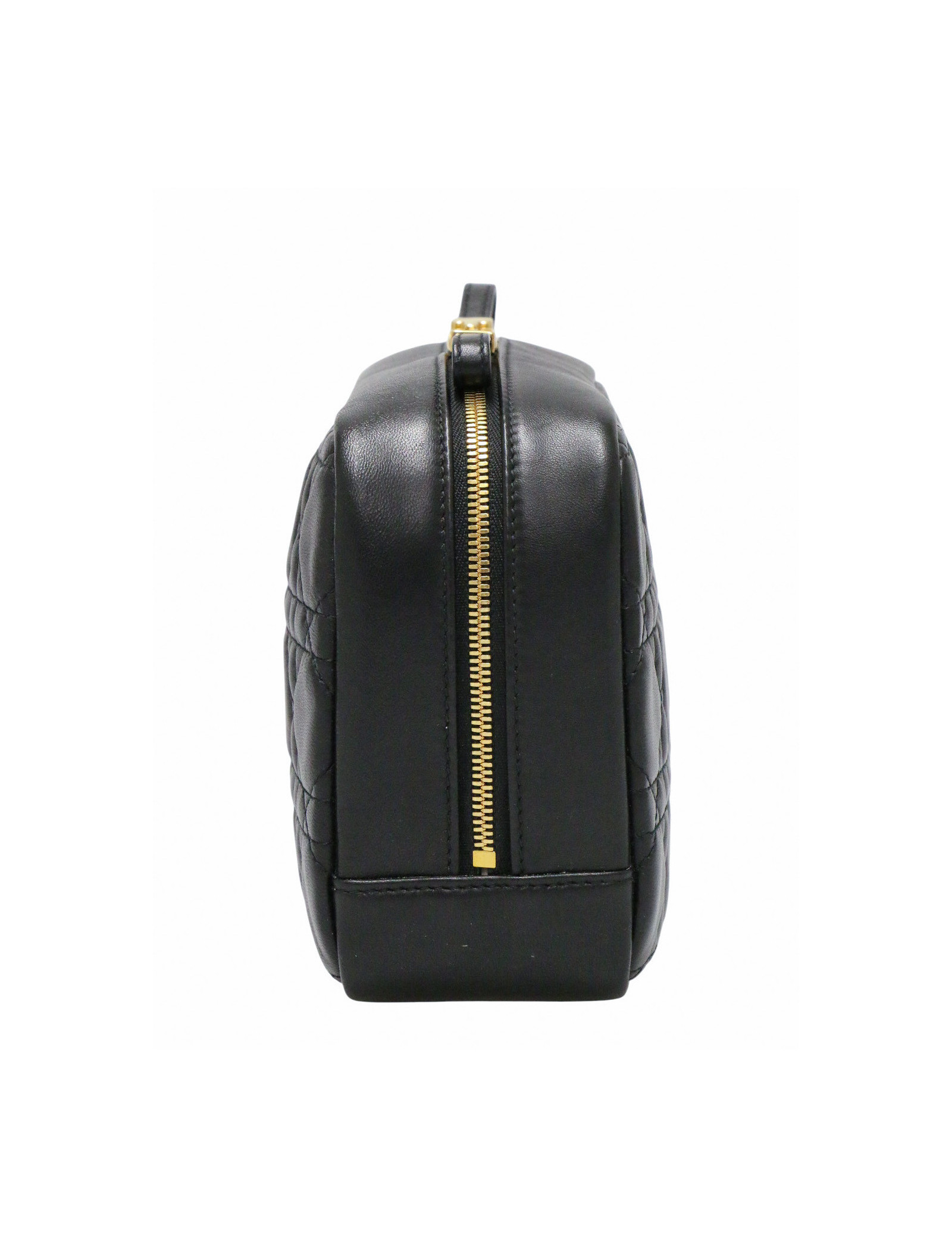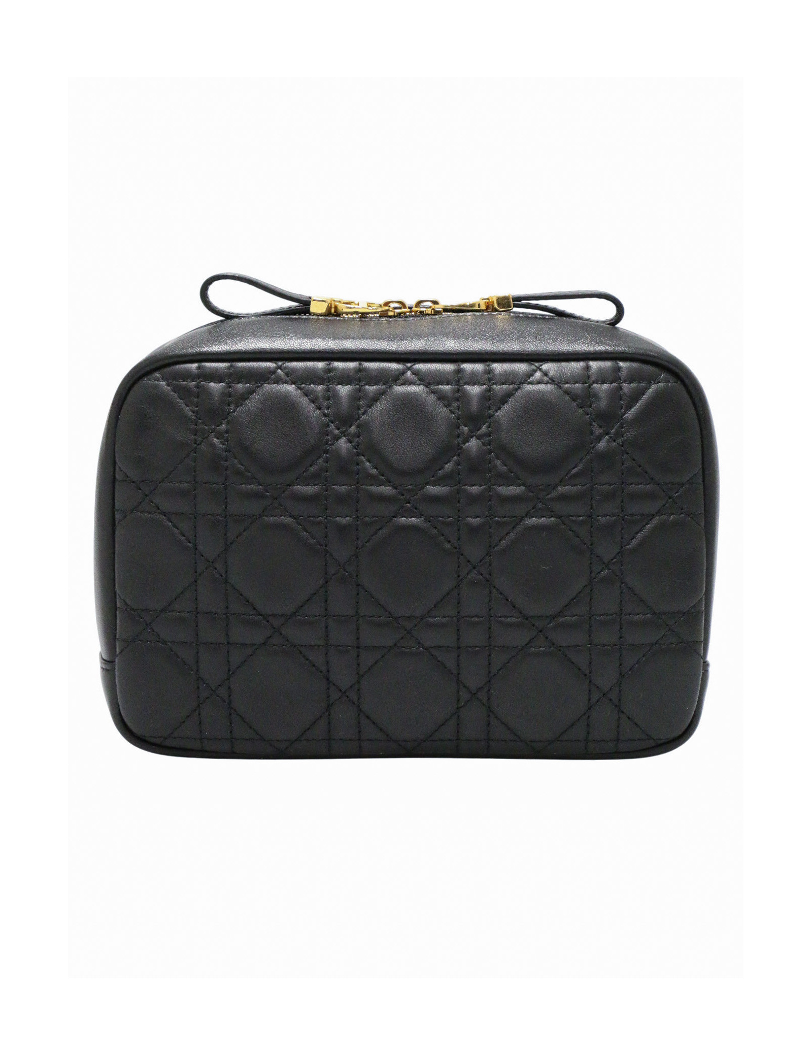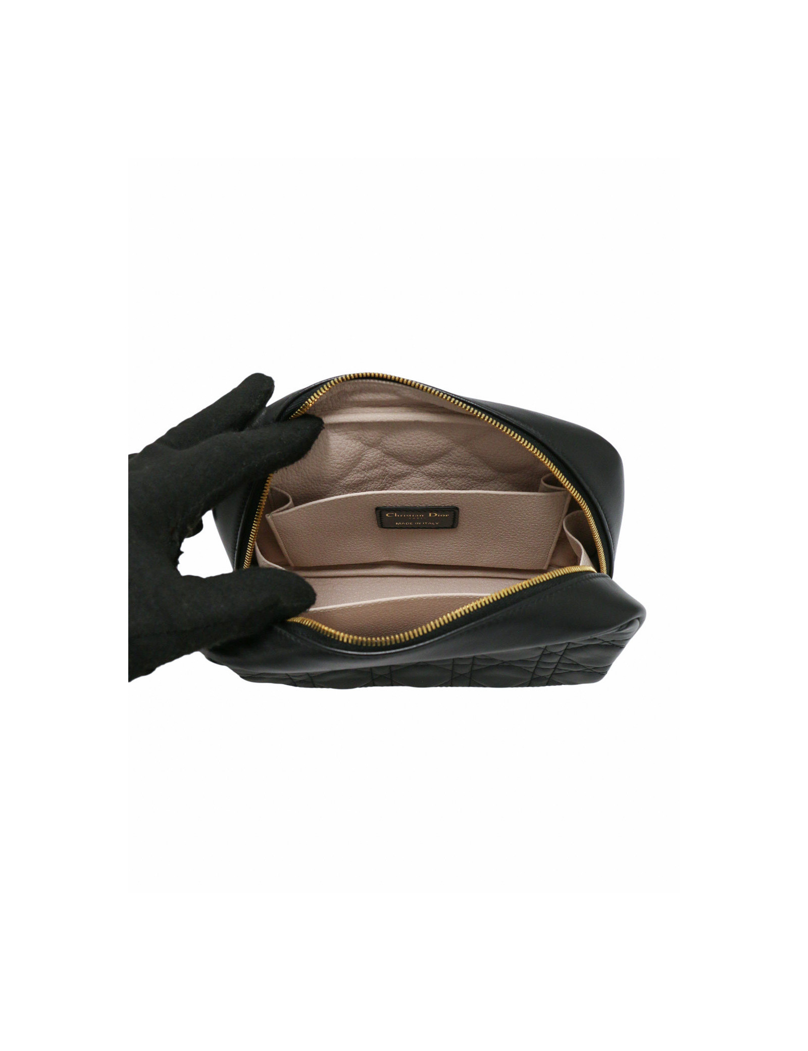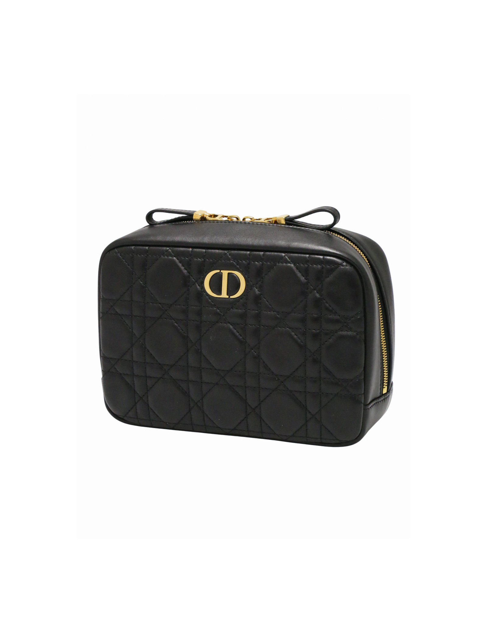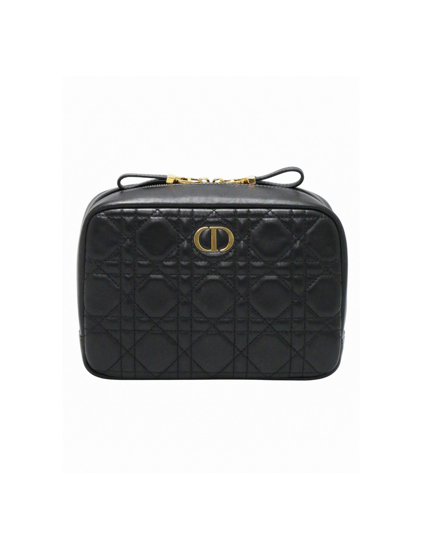 Détails : petite trousse de toilette en cuir matelassé orné du logo CD sur l'avant. Elle se ferme par un double zip, trois compartiments de rangement intérieurs.