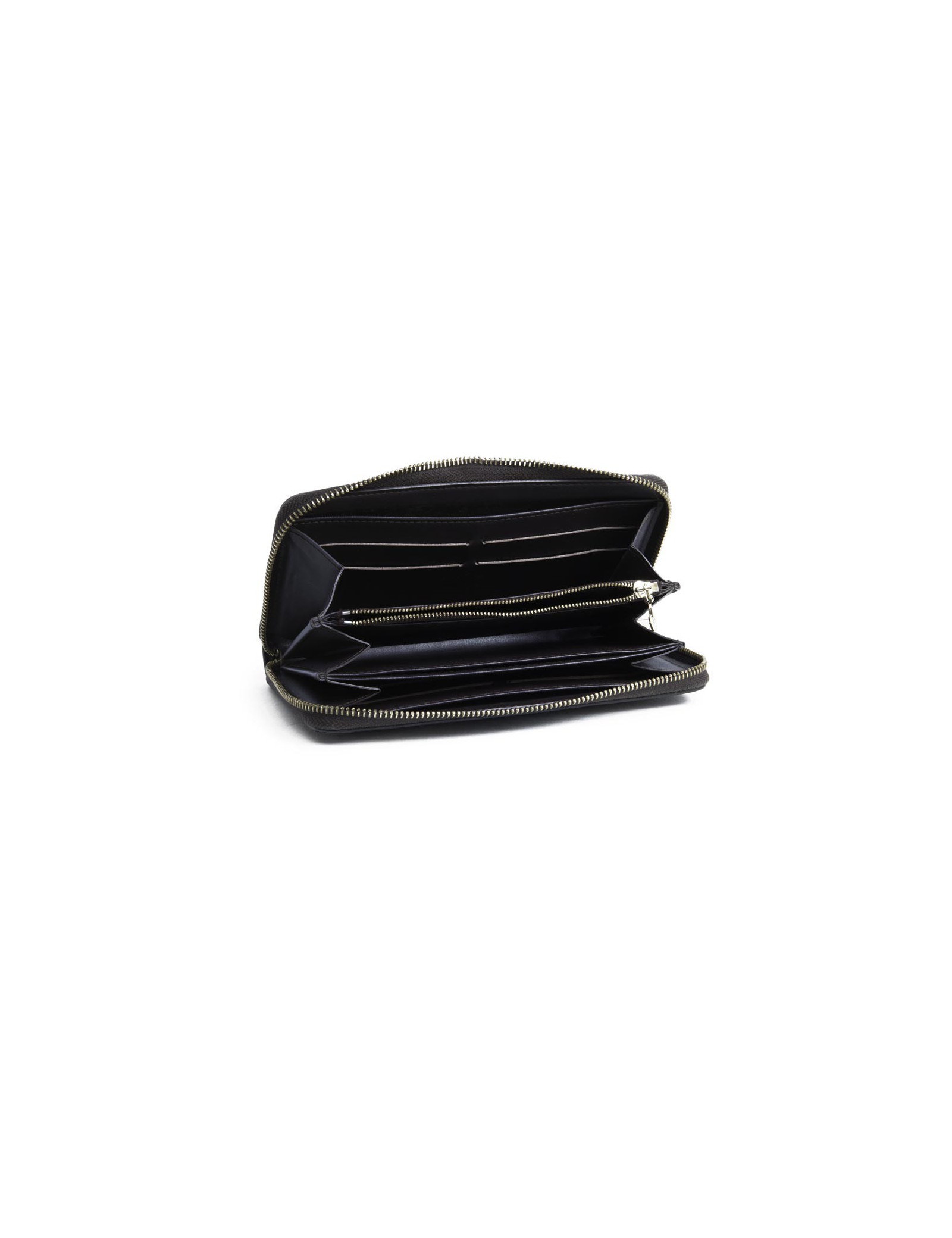 La fermeture est zippée sécurisée avec huit fentes pour cartes de crédit et une poche ouverte pour les billets.