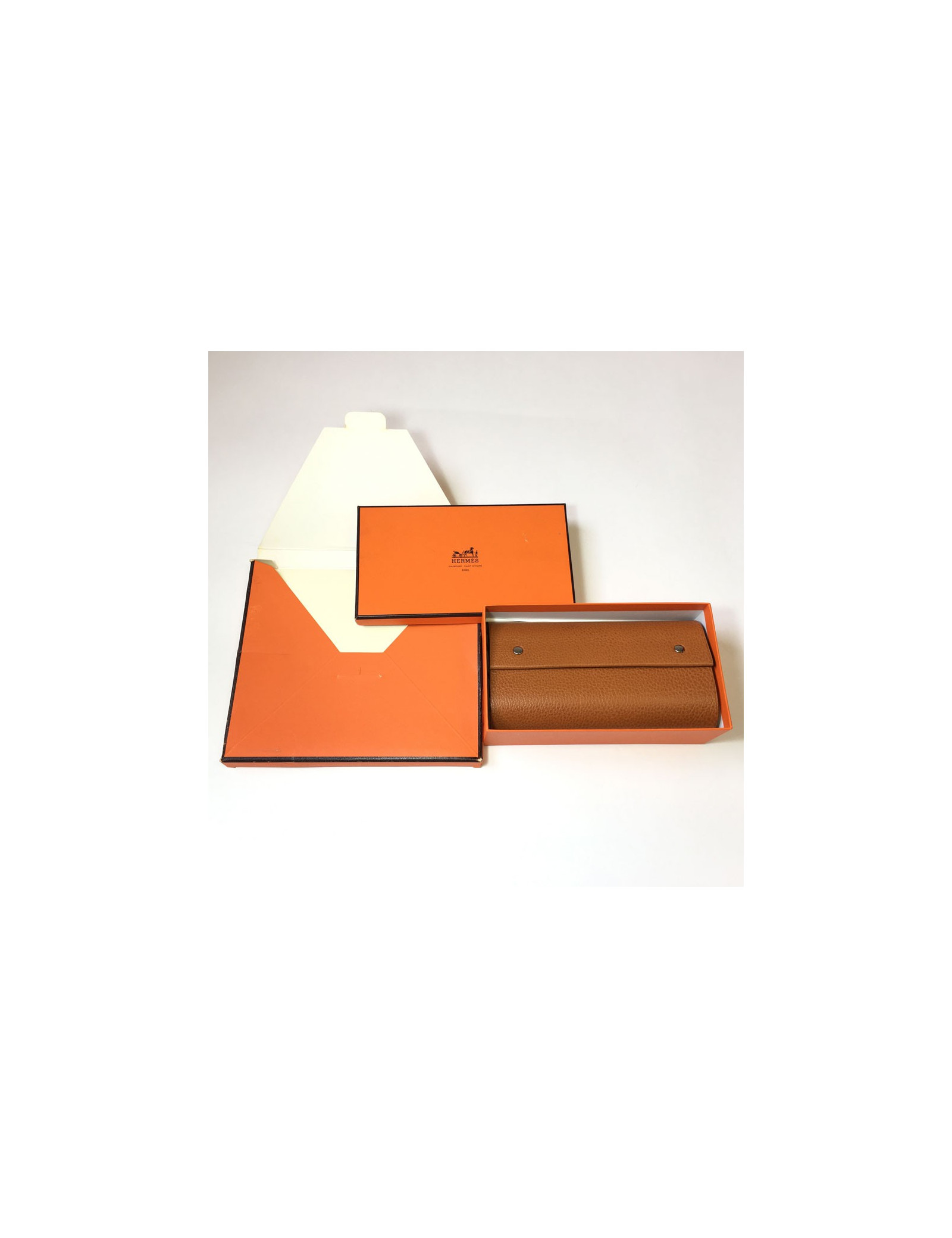 Très beau Cahier roulé HERMES avec couverture en cuir buffle gold. Papier bible neuf à l'intérieur + une recharge dans son étui HERMES.
