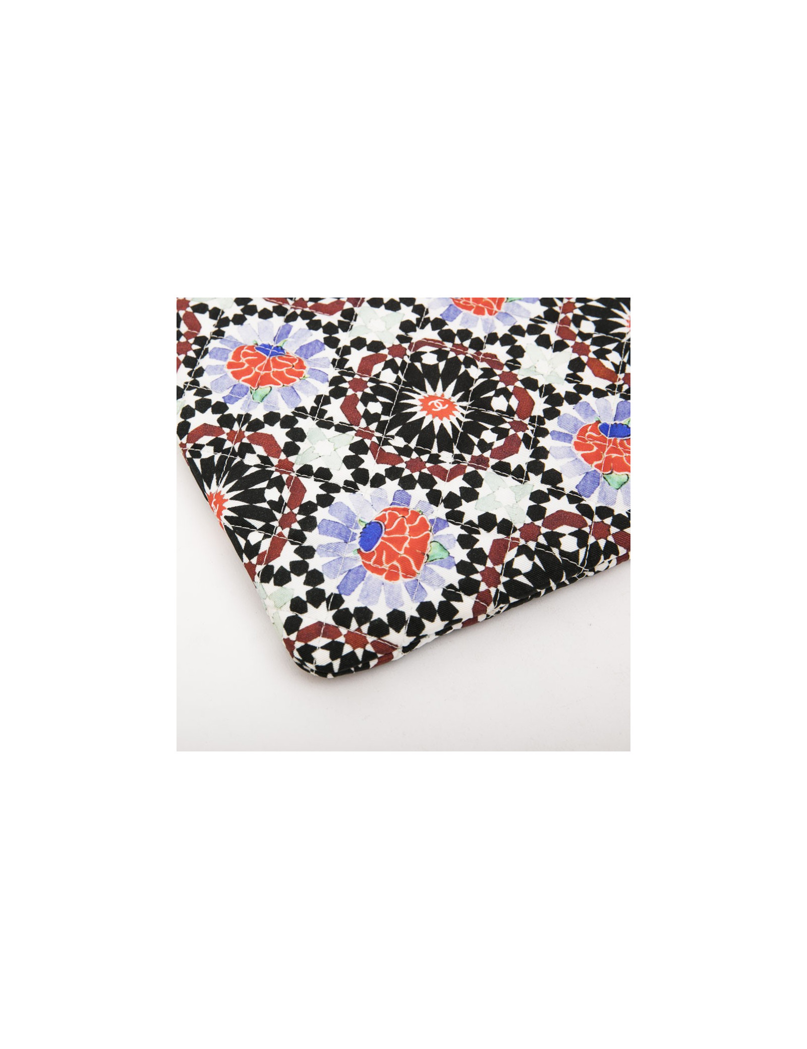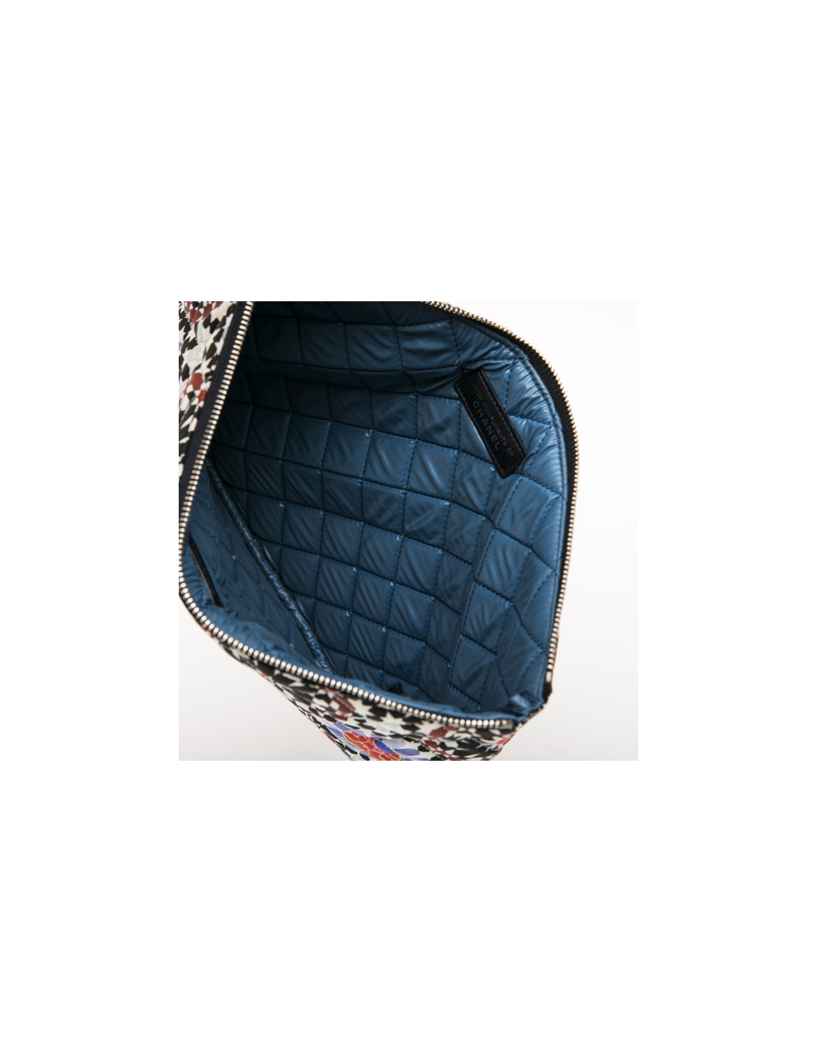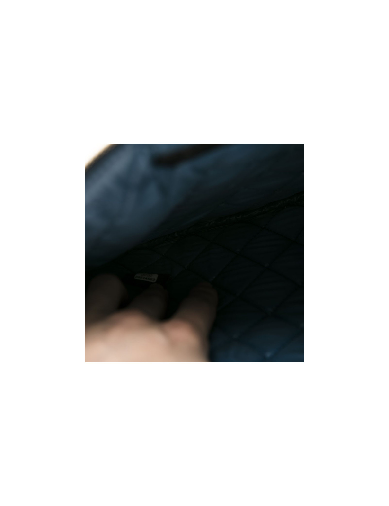Pochette Chanel Paris-Dubai", en tissu matelassé. Fermeture zippée. Bijouterie argentée. L'intérieur est en matière imperméable bleu.