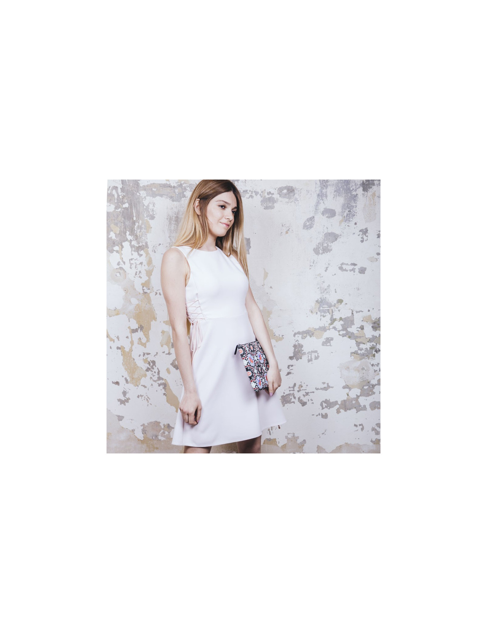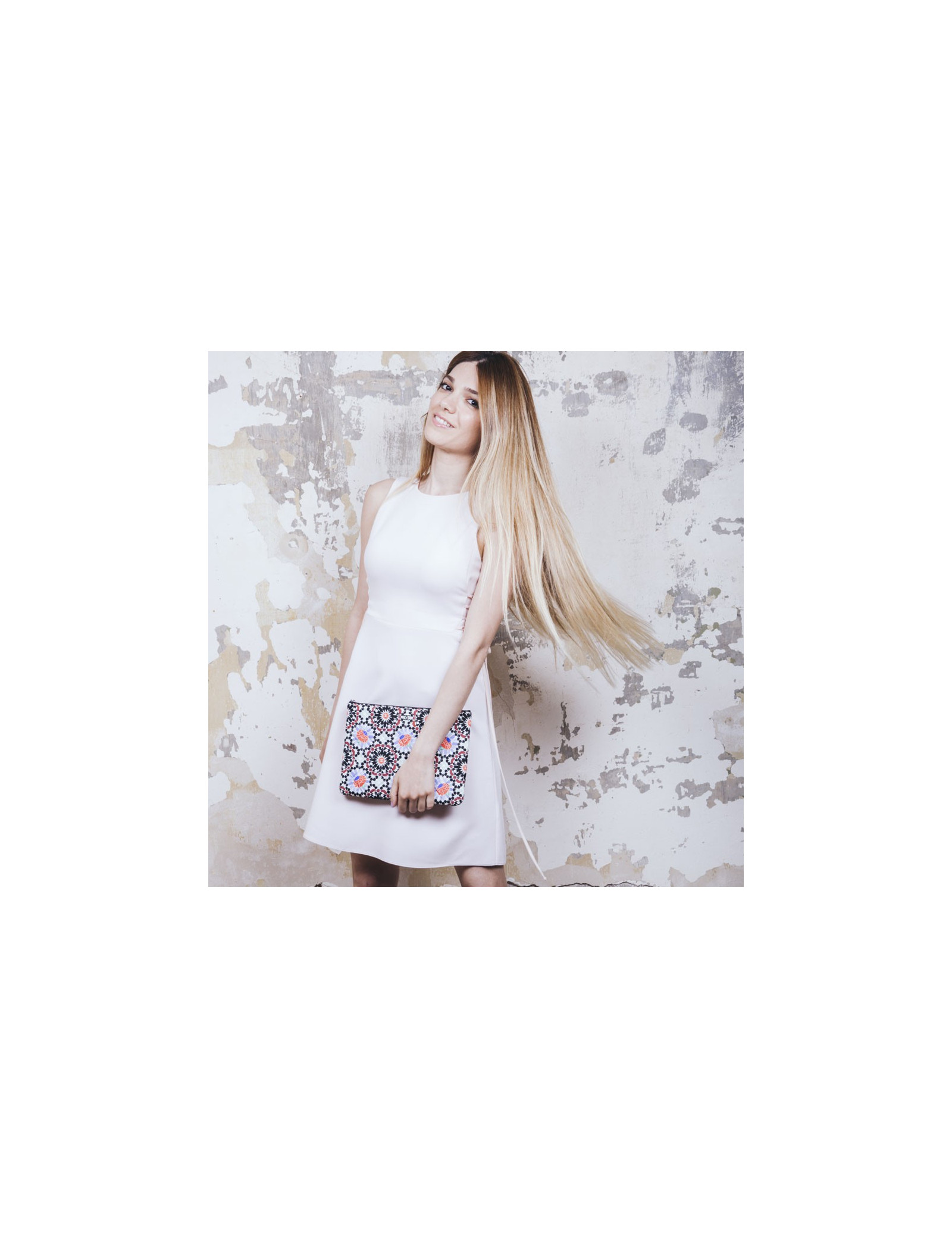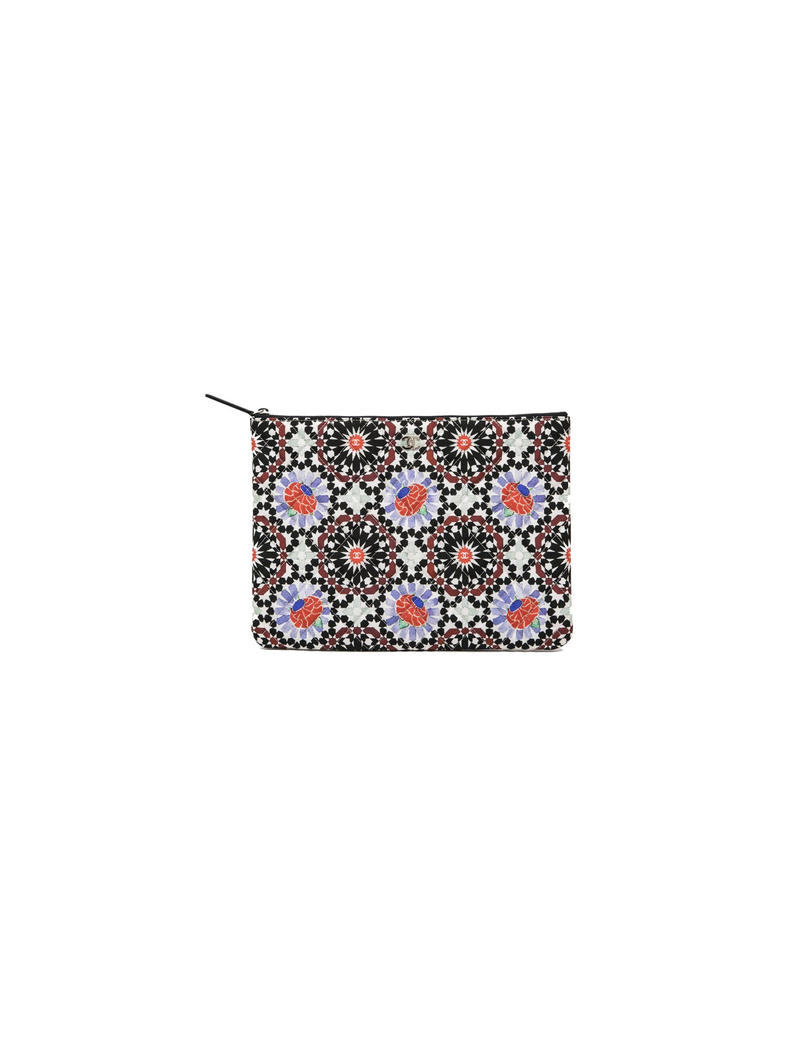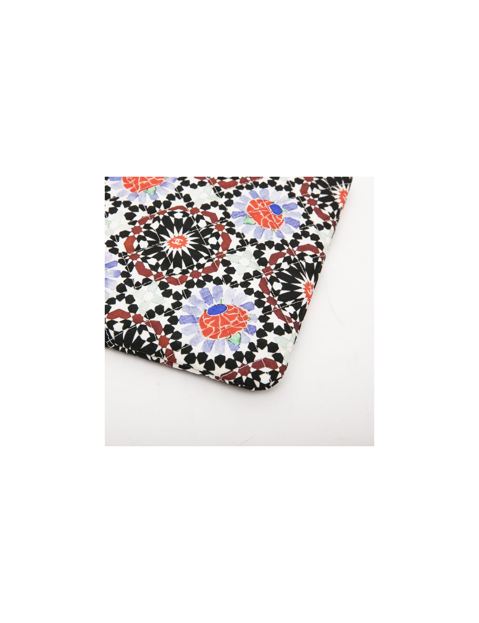 Pochette Chanel Paris-Dubai", en tissu matelassé. Fermeture zippée. Bijouterie argentée. L'intérieur est en matière imperméable bleu.