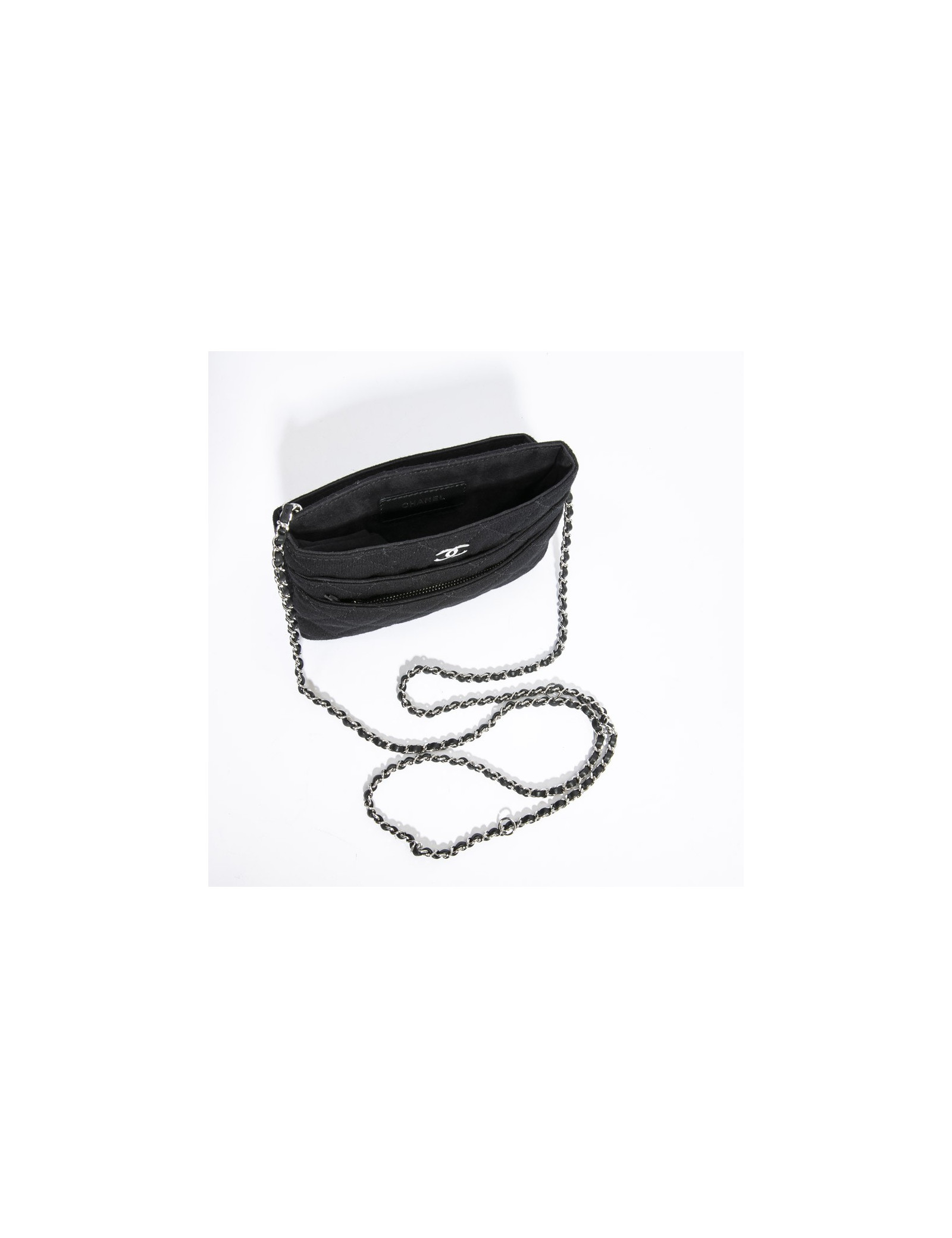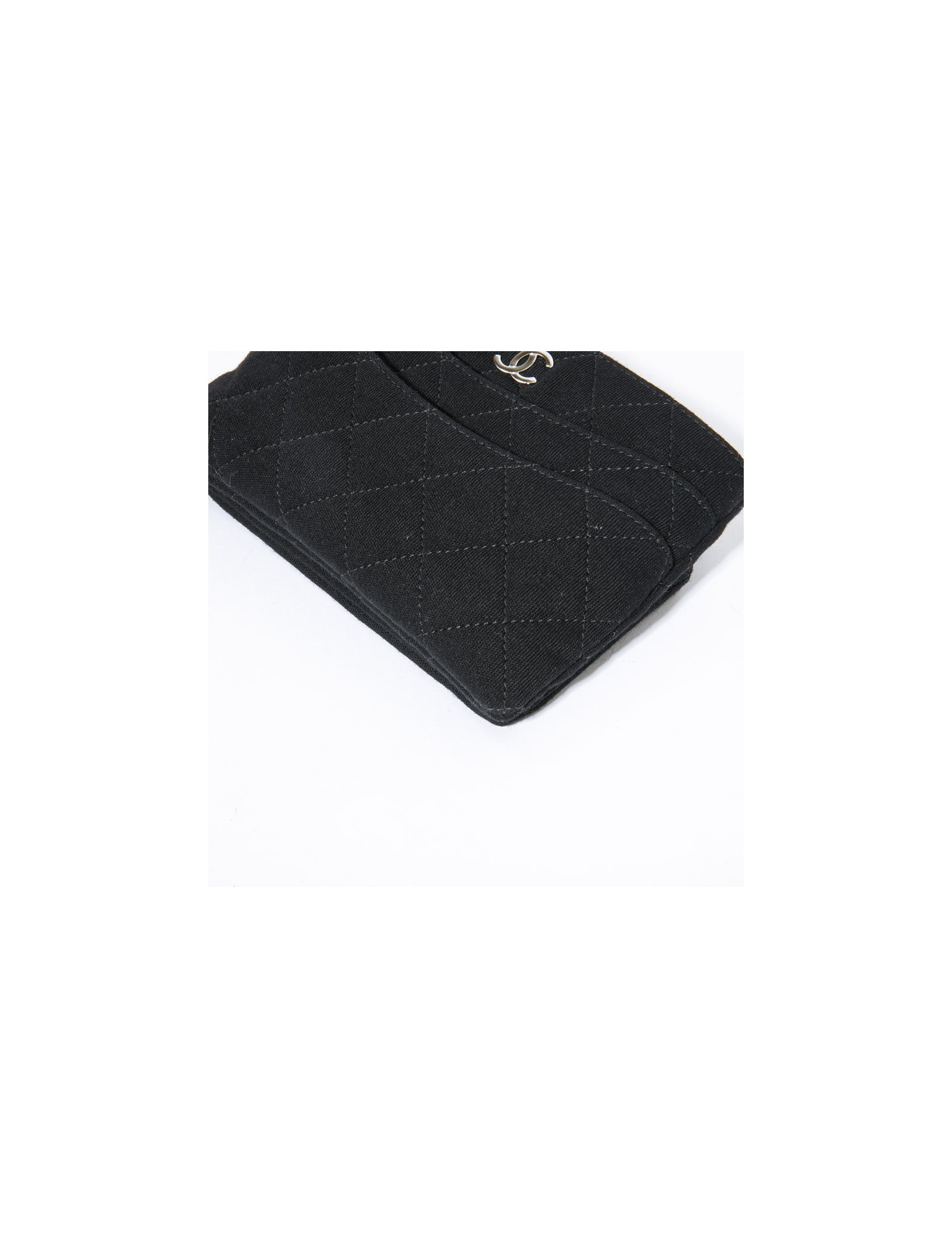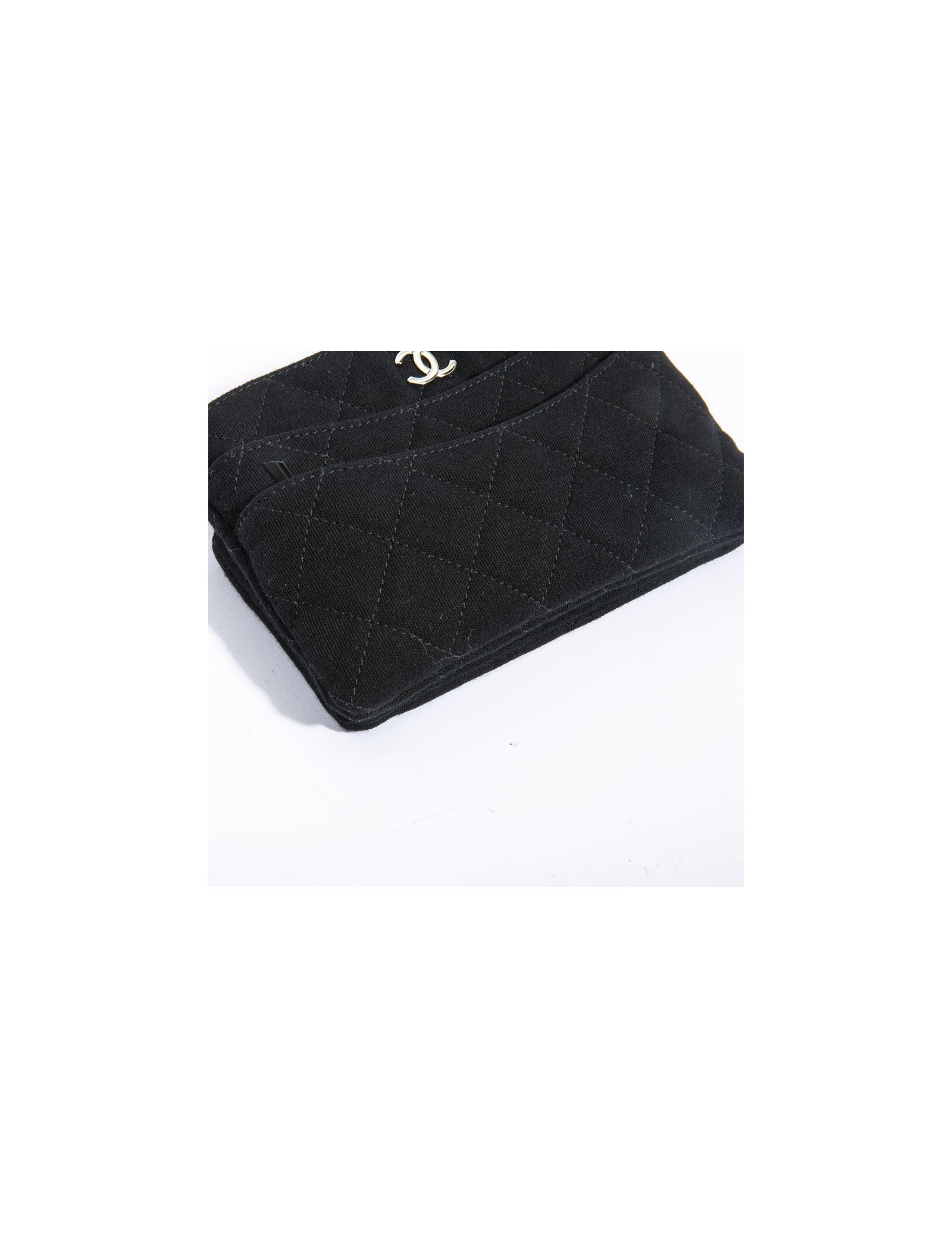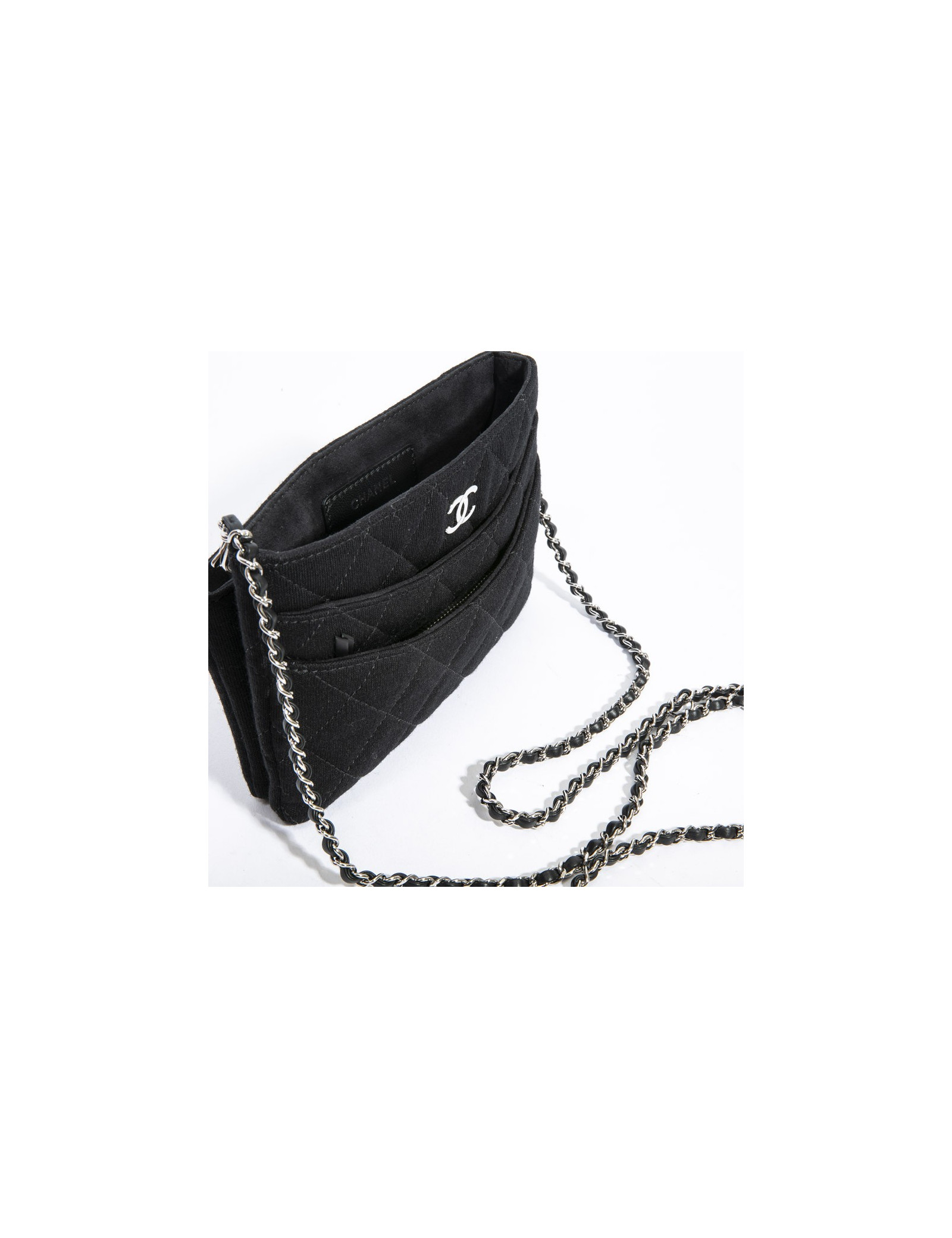 Pochette Chanel en jersey noir, avec plusieurs compartiments dont un zippé.