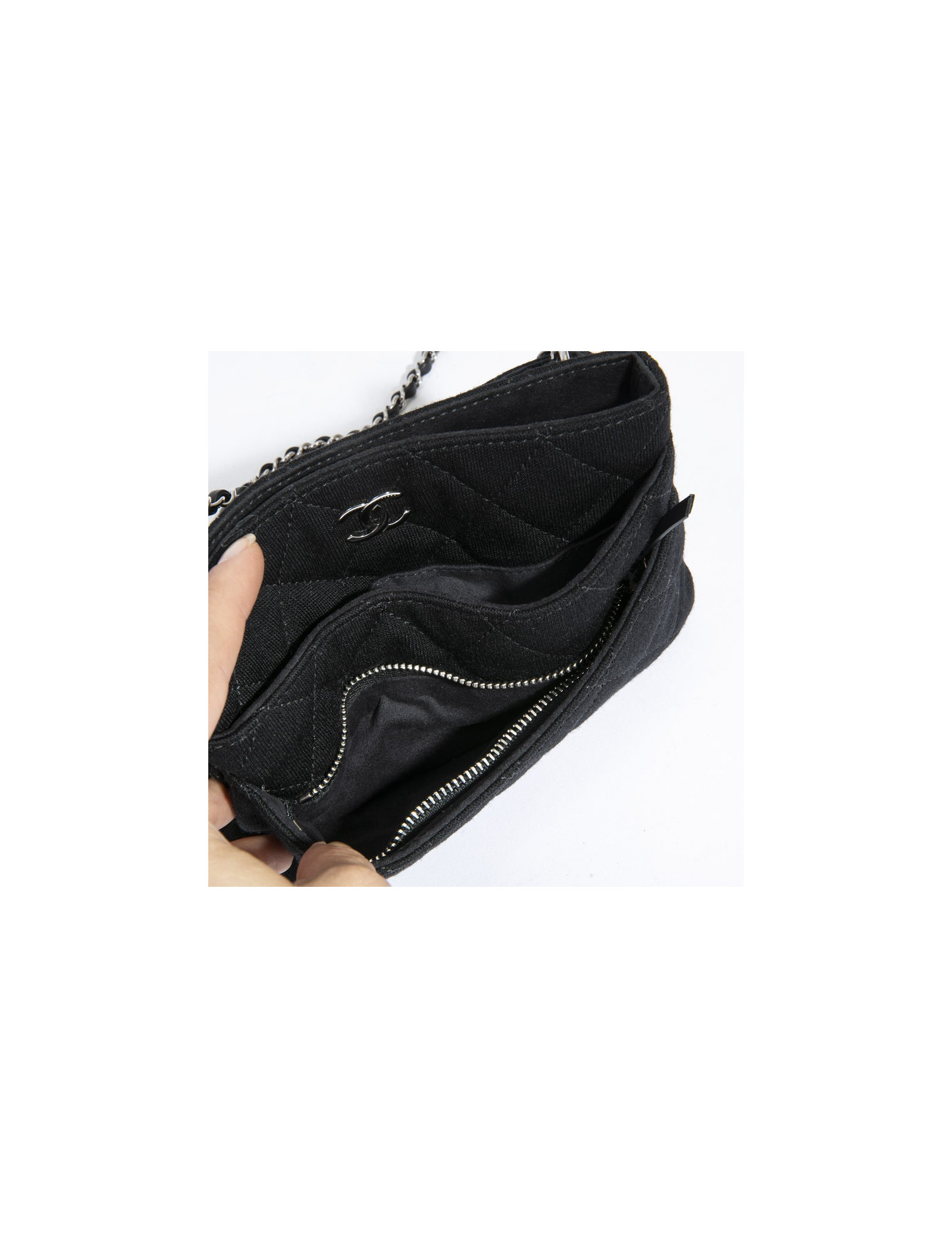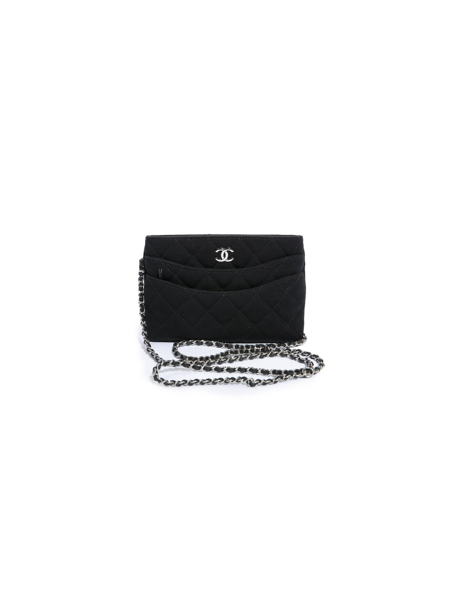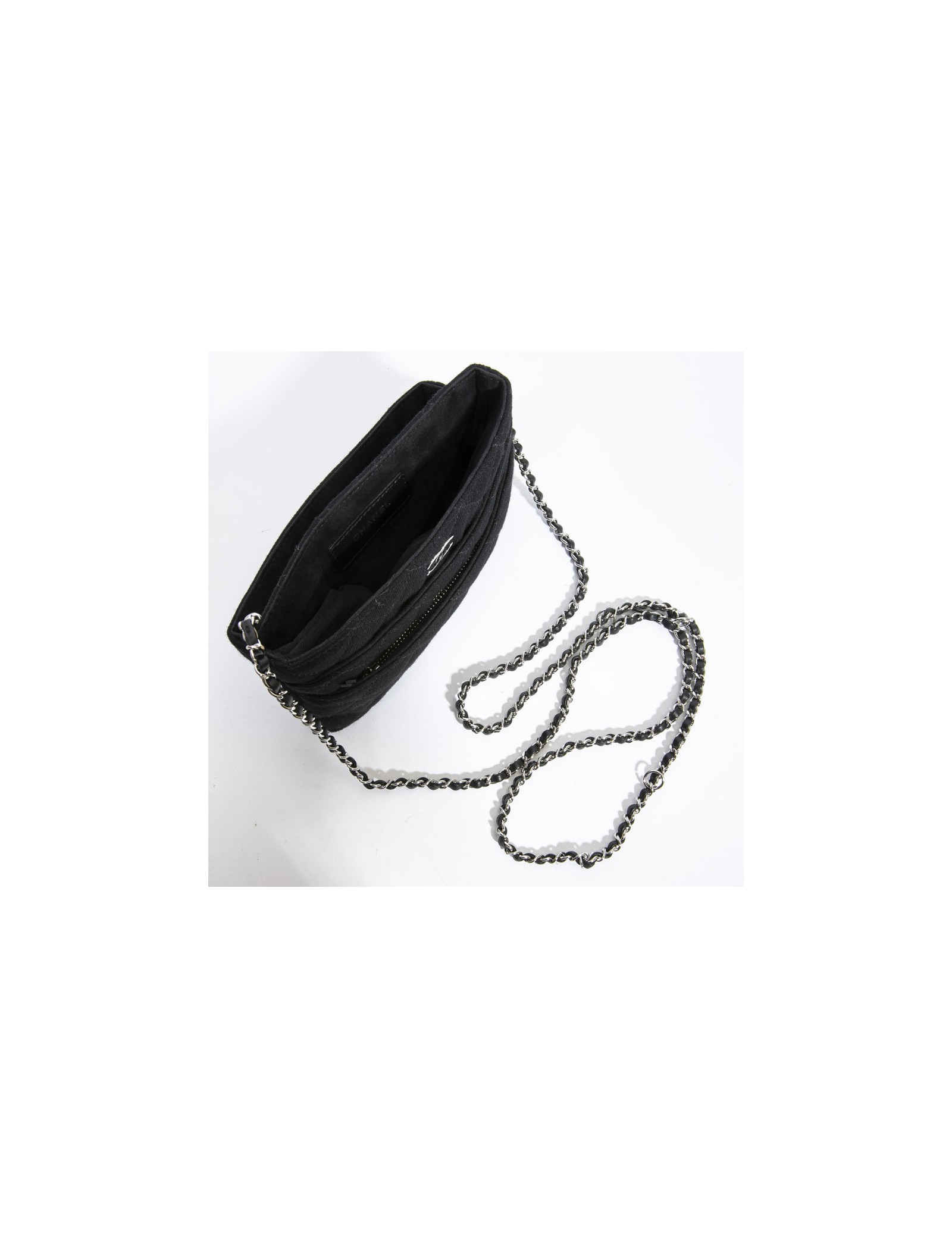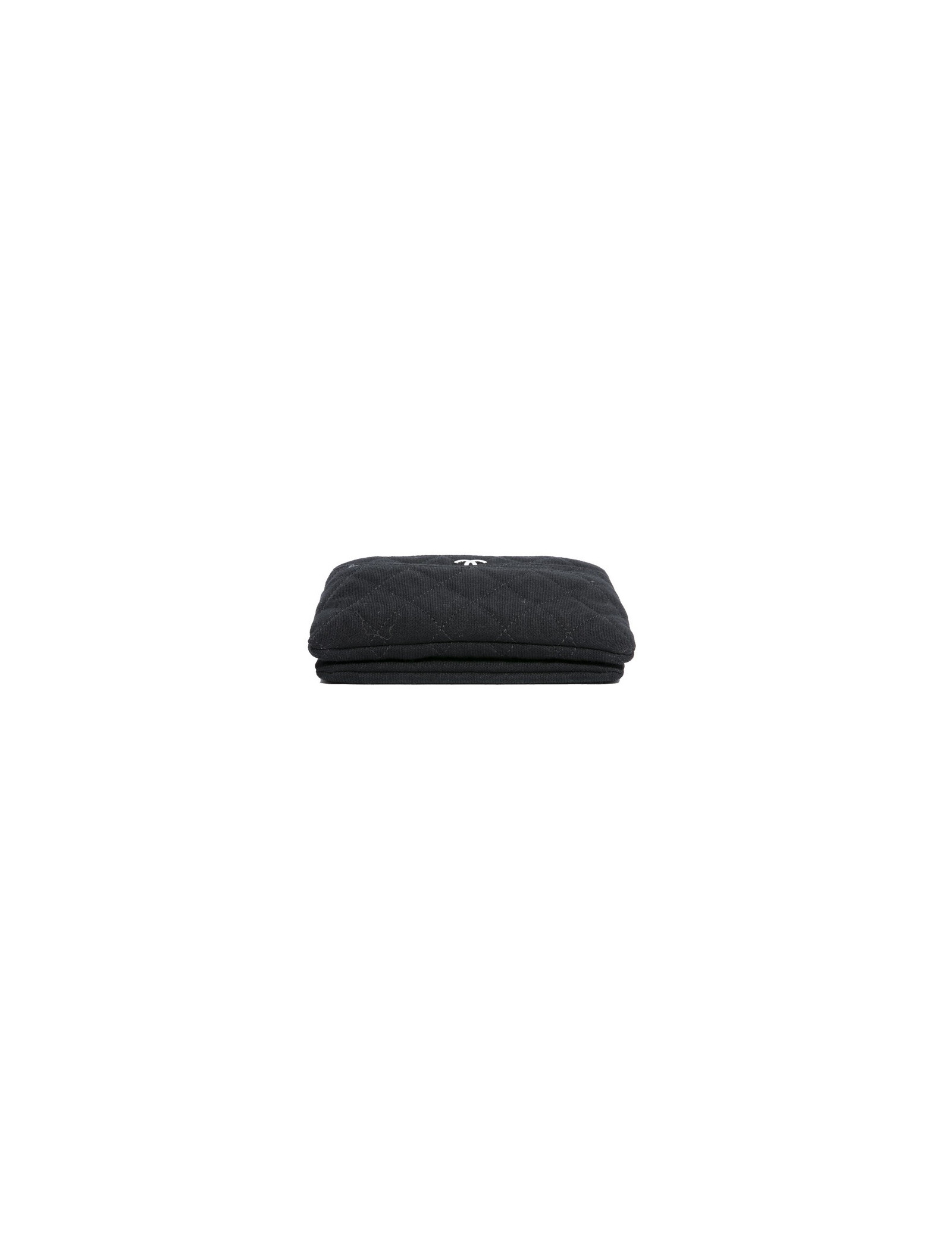 Pochette Chanel en jersey noir, avec plusieurs compartiments dont un zippé.