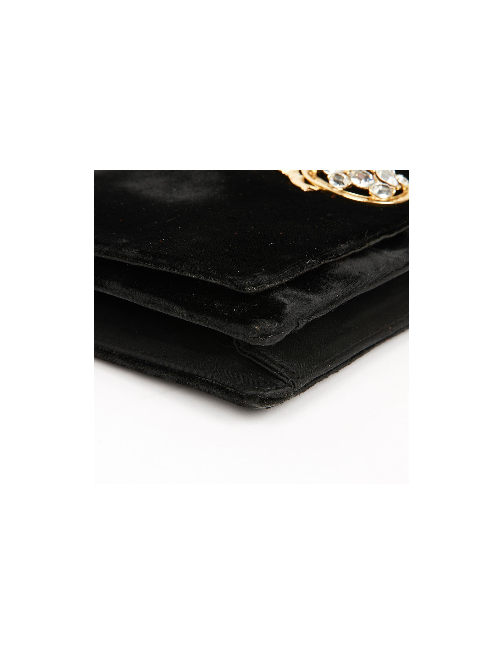 Ravissant sac du soir Christian Dior vintage. Ce sac est en panne de velours noir, agrémenté d'un fermoir bijou en strass et métal doré, représentant l'un des emblème de cette grande maison qu'est Dior, le fermoir est un bouton pression.