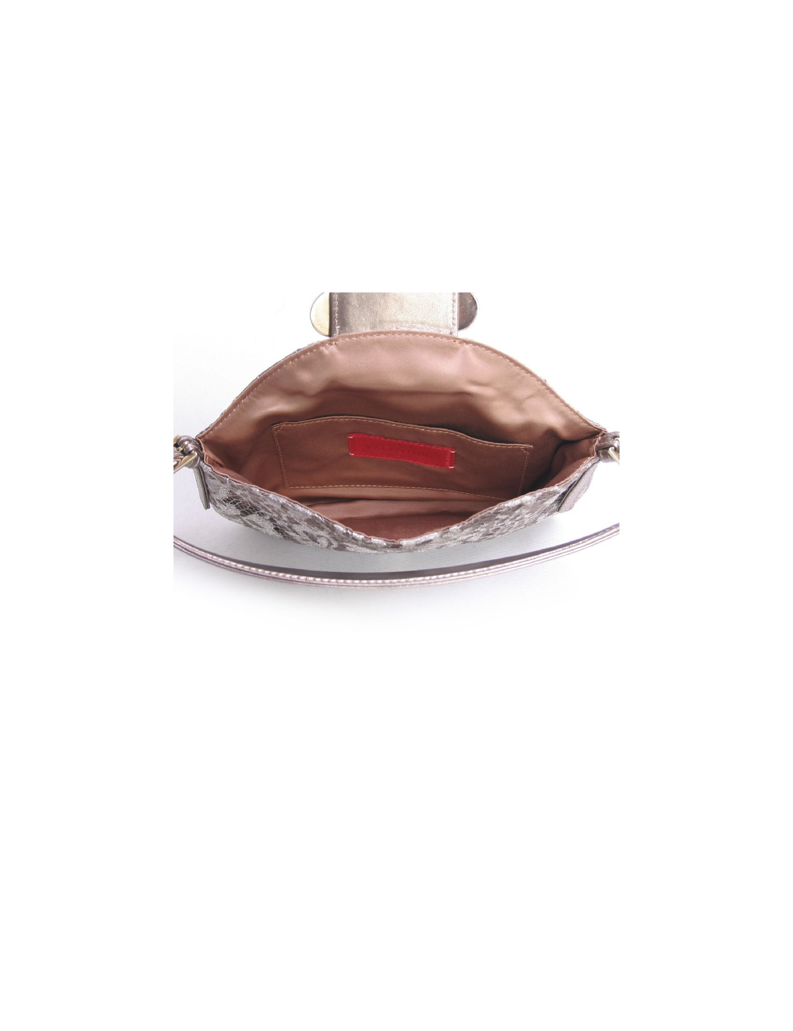 L'intérieur est en satin de couleur bronze avec une petite poche plaquée.